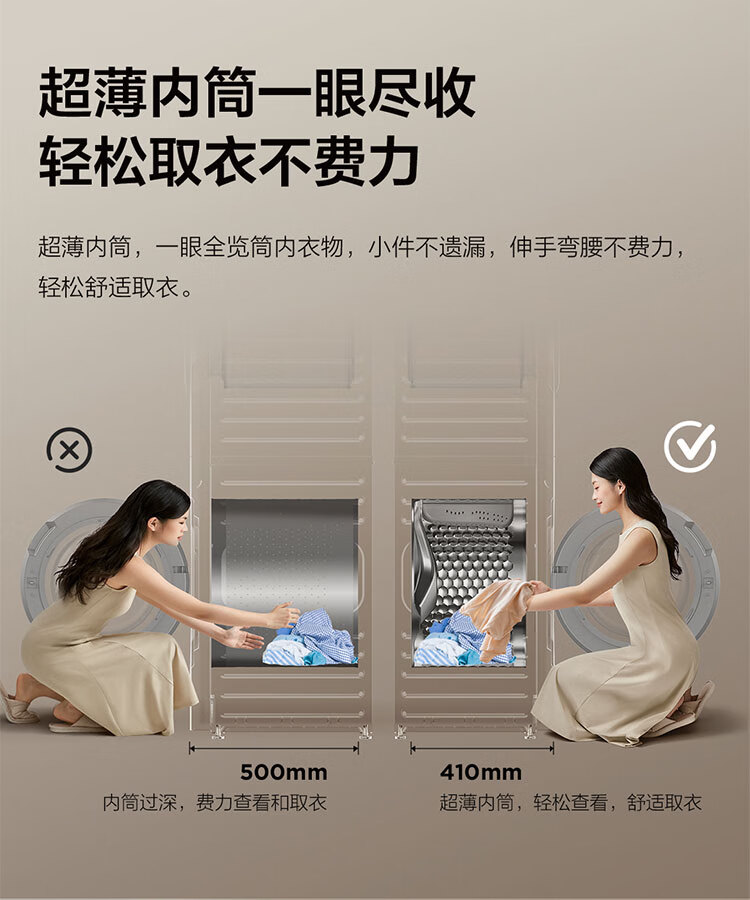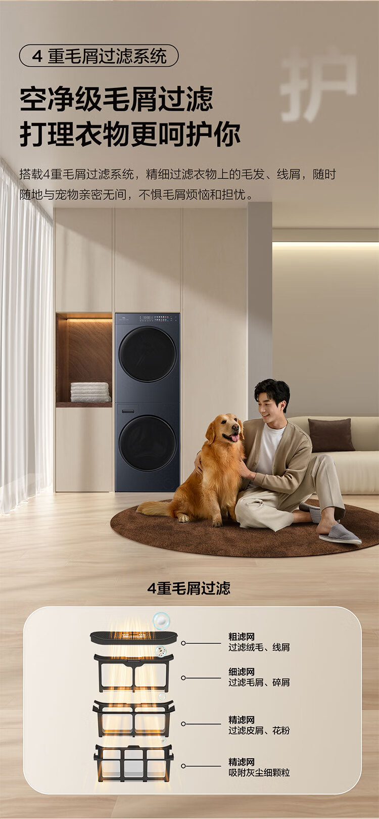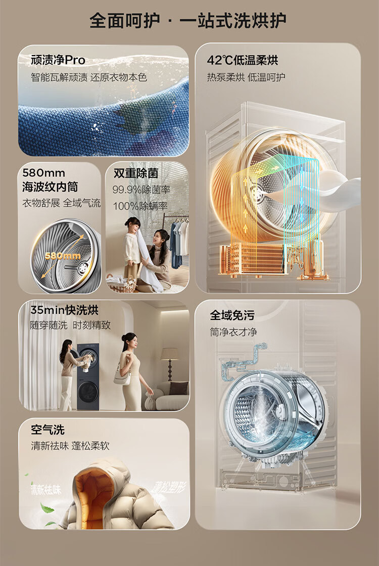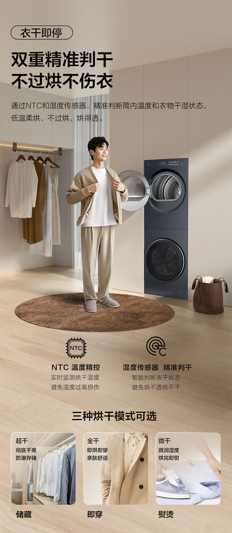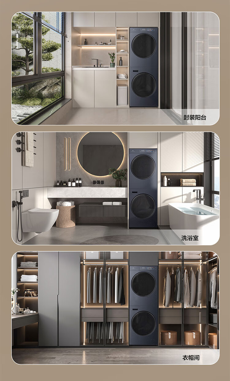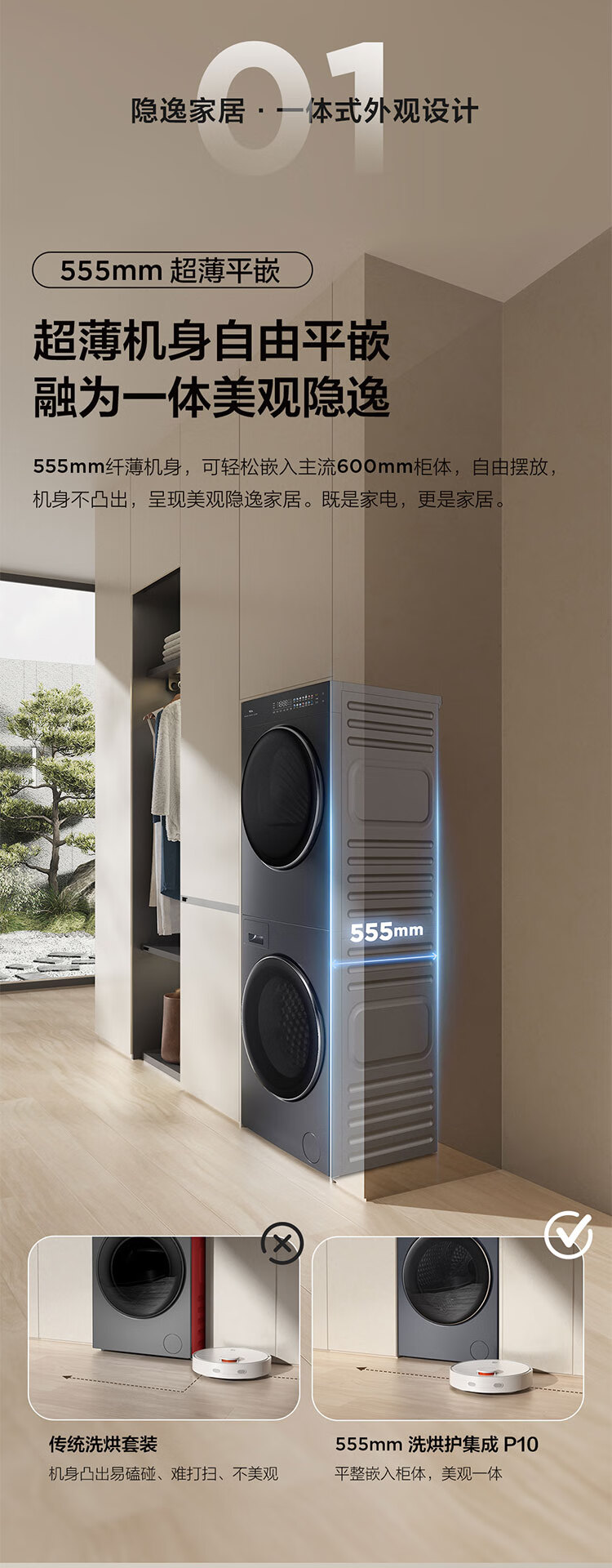 TCL双子舱10KG滚筒洗烘护集成机 一屏双控 超薄平嵌一体机身 热泵烘干 GH200P10(线下同款)
