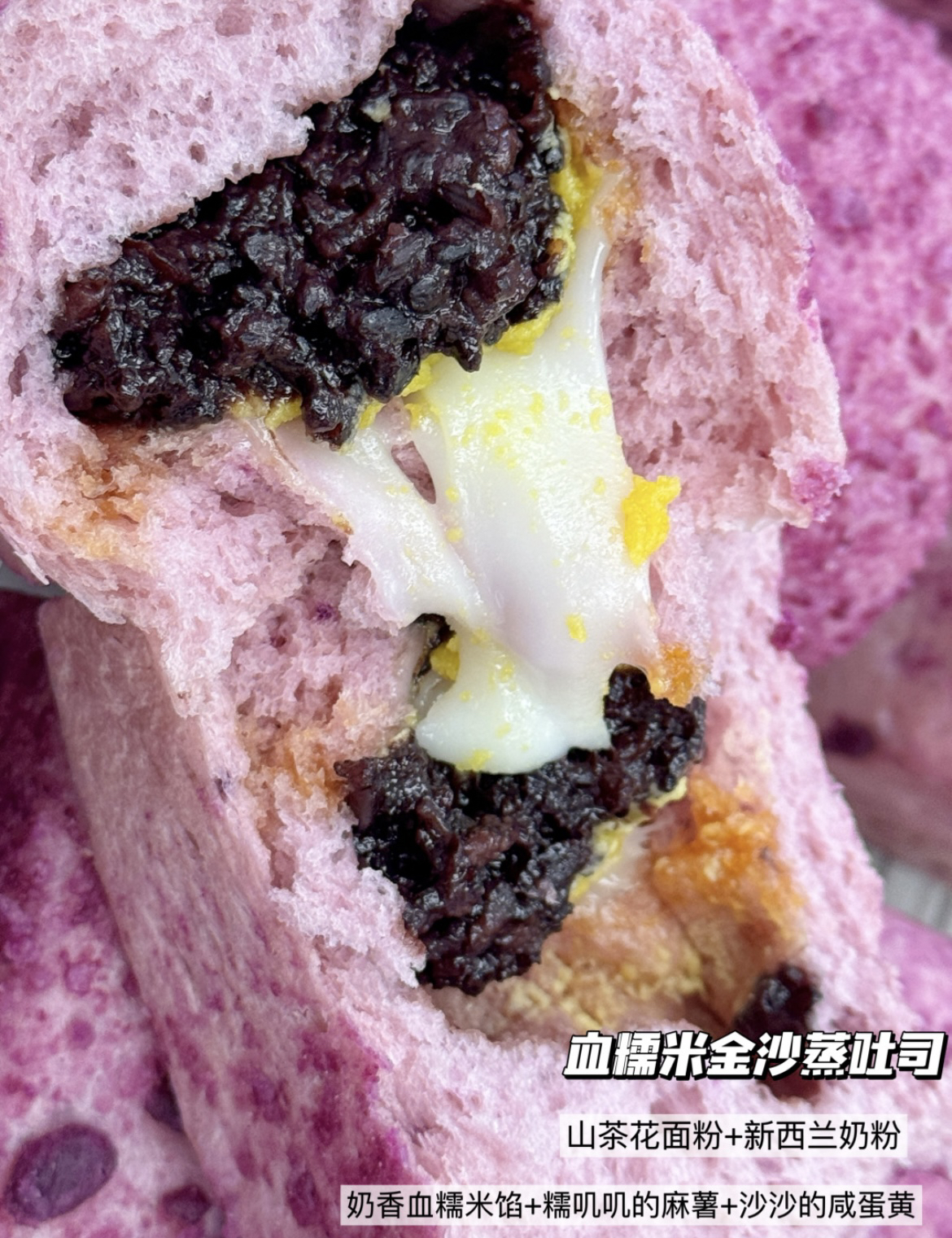 [配料]:山茶花面粉、咸蛋黄、紫米、黄油