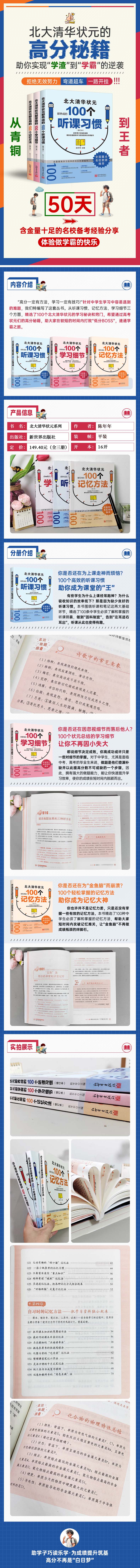 北大清华状元都在用的100个听课习惯、100个学习细节、100个记忆方法全3册 学习方法指导逻辑 初高中生课外阅读书籍