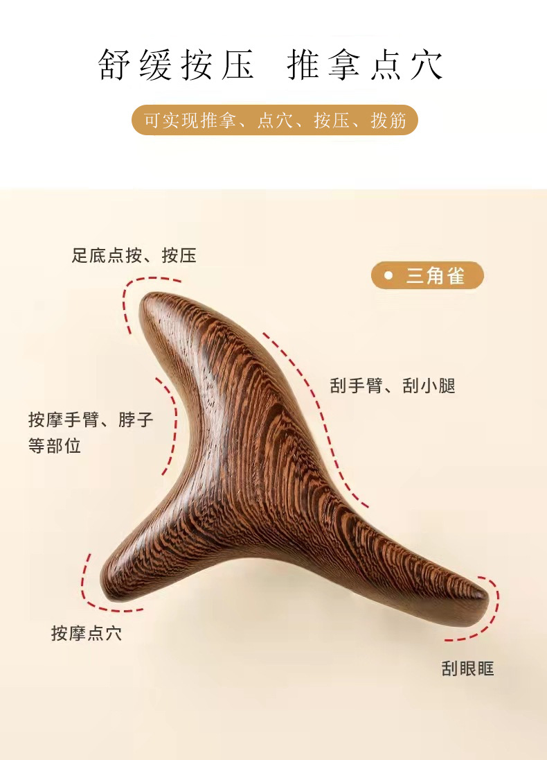 三角雀锥木质脚底腿部穴位按摩器蜜蜡琥珀足疗按摩椎点穴笔拨筋棒
