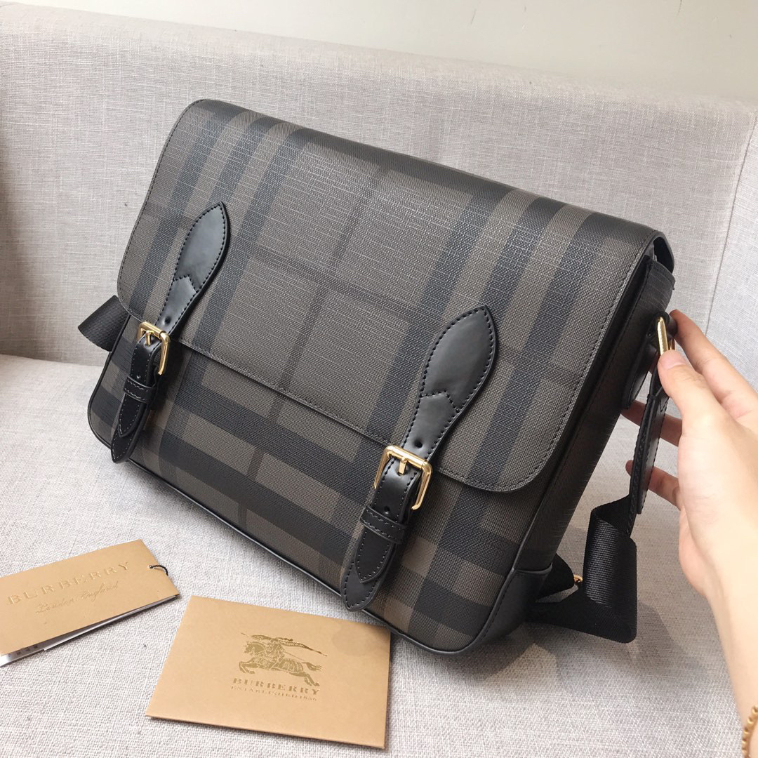 🤩🤩原单B家最新款 官网同步双扣男士邮差包5671.最经典最新款蓝格的咖啡烟熏搭配小牛皮,轻便耐用,尺寸:32.23.11,