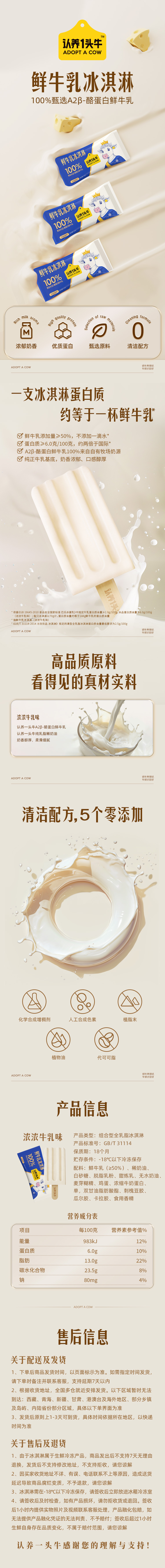 兑换专享!认养一头牛A2鲜牛乳冰淇淋棒支70克*13支