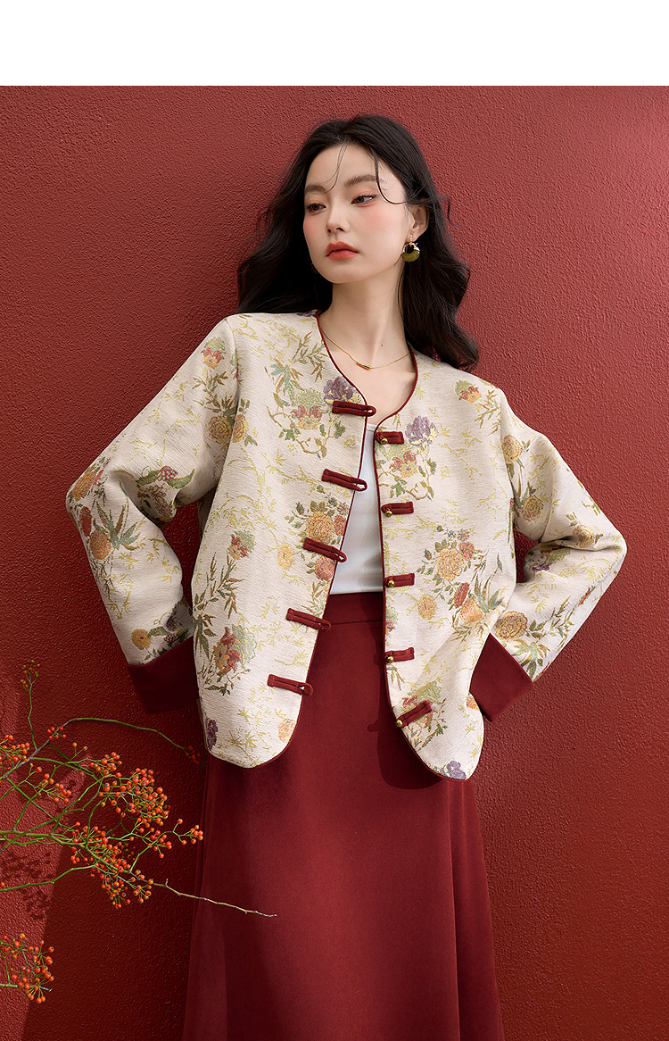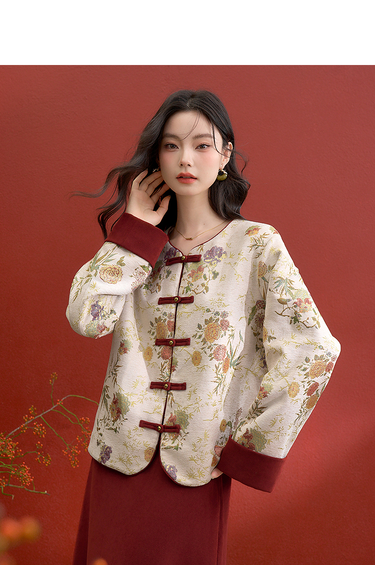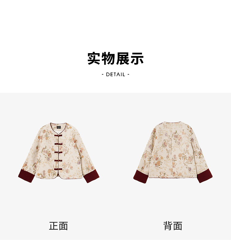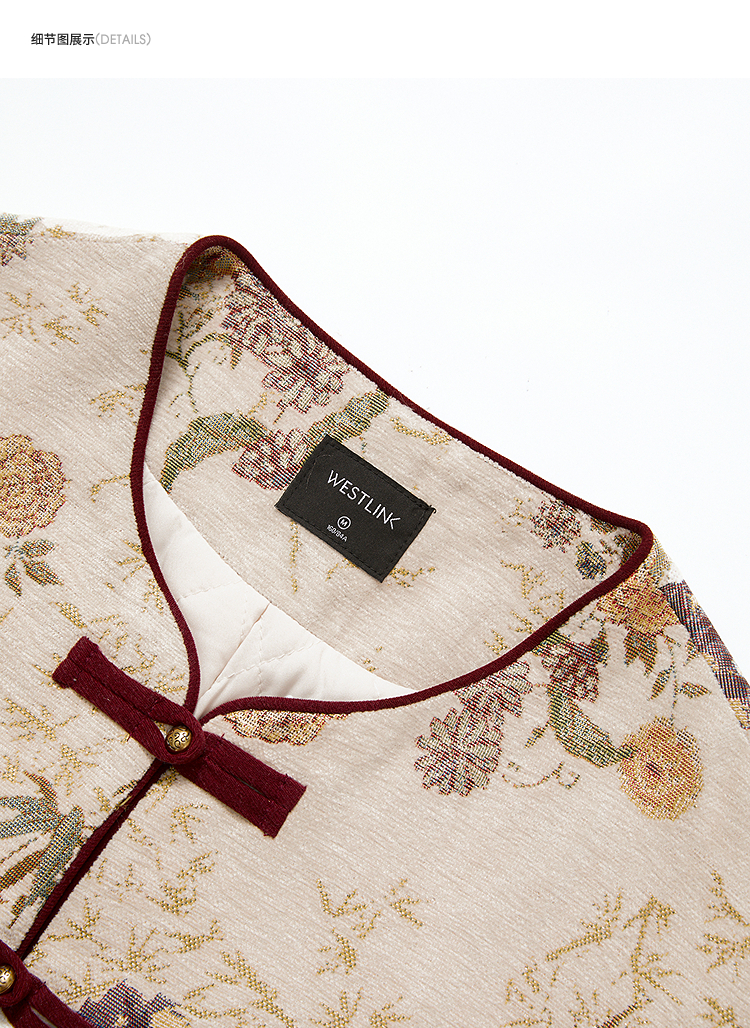 西遇新中式盘扣提花刺绣夹棉外套女冬季新款高级感国风宽松上衣V3755292