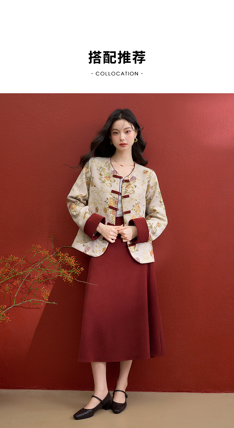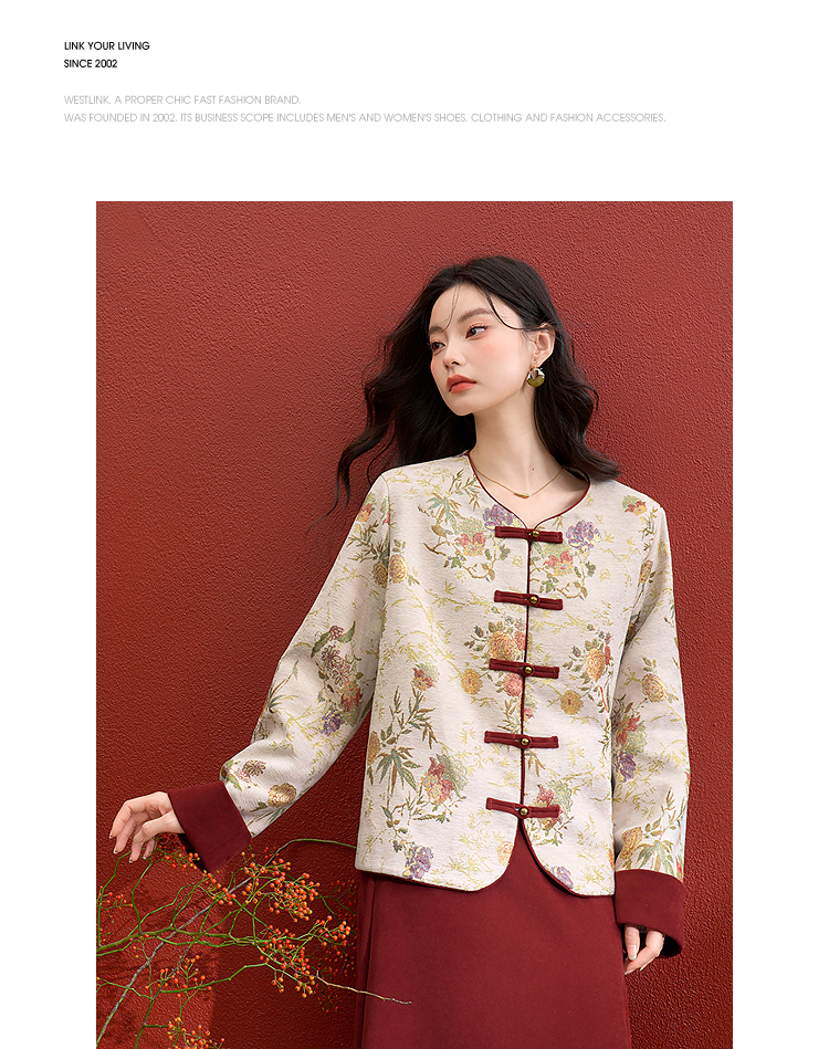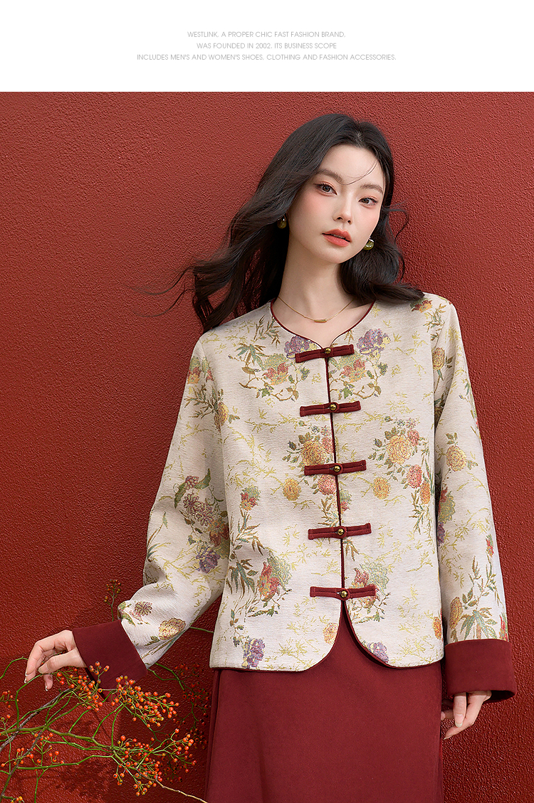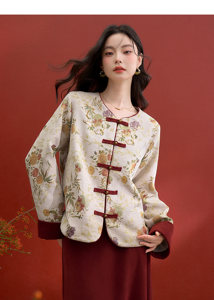 西遇新中式盘扣提花刺绣夹棉外套女冬季新款高级感国风宽松上衣V3755292