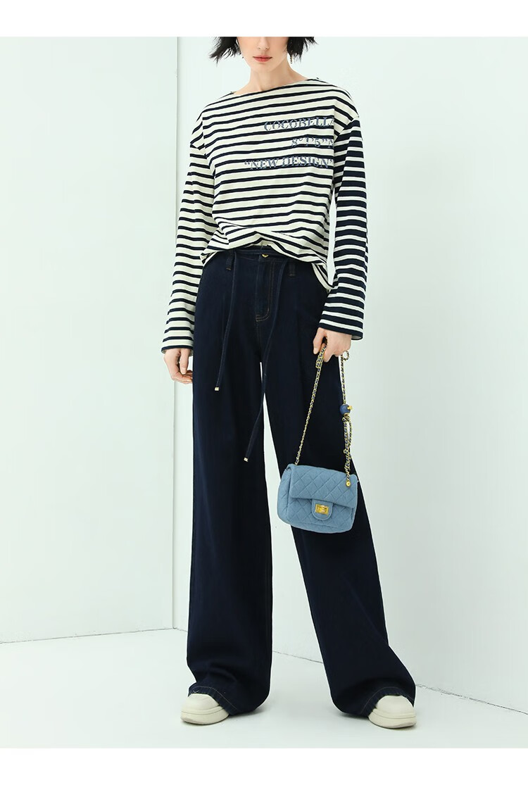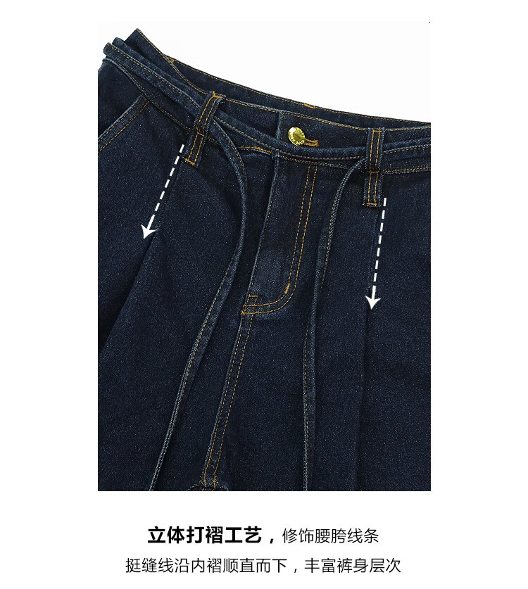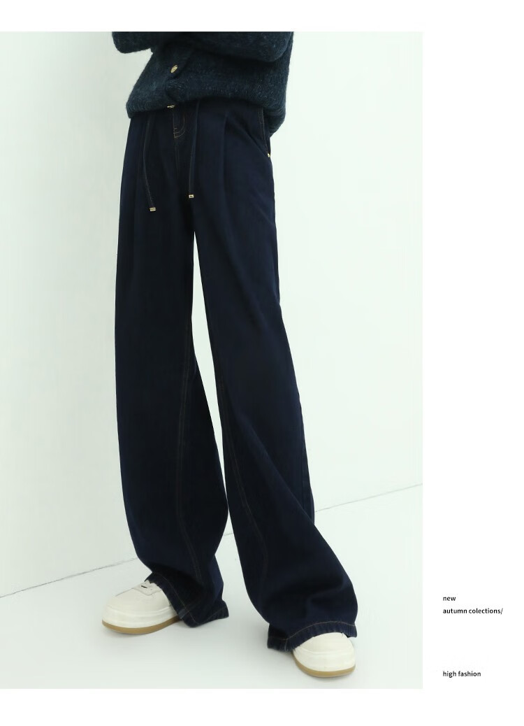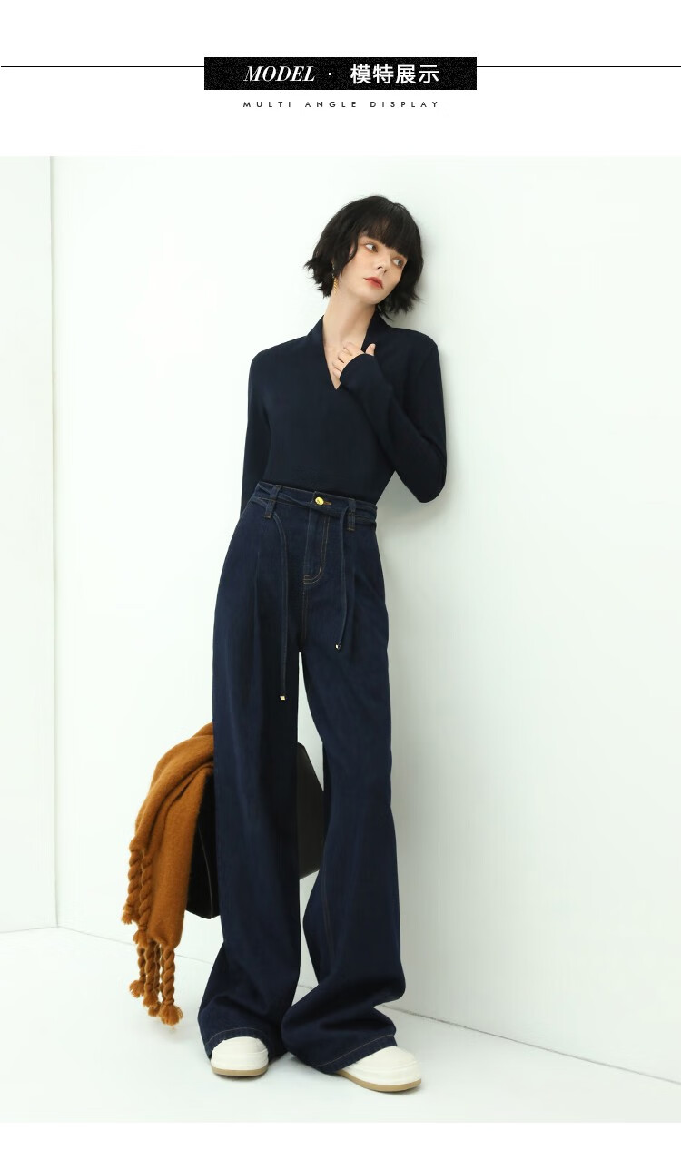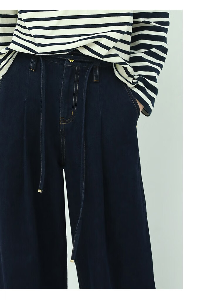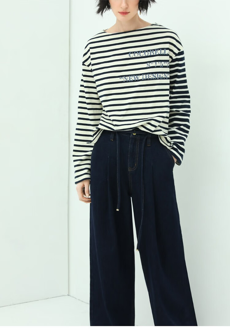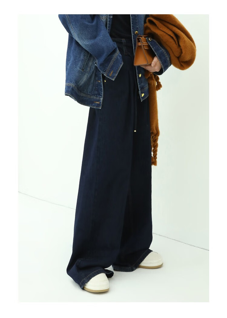 COCOBELLA设计感腰带直筒牛仔裤宽松休闲高腰打褶阔腿裤DN626