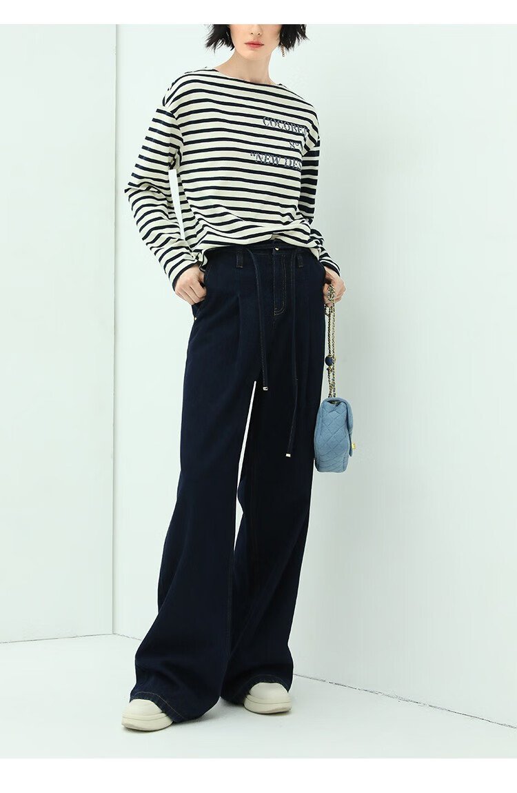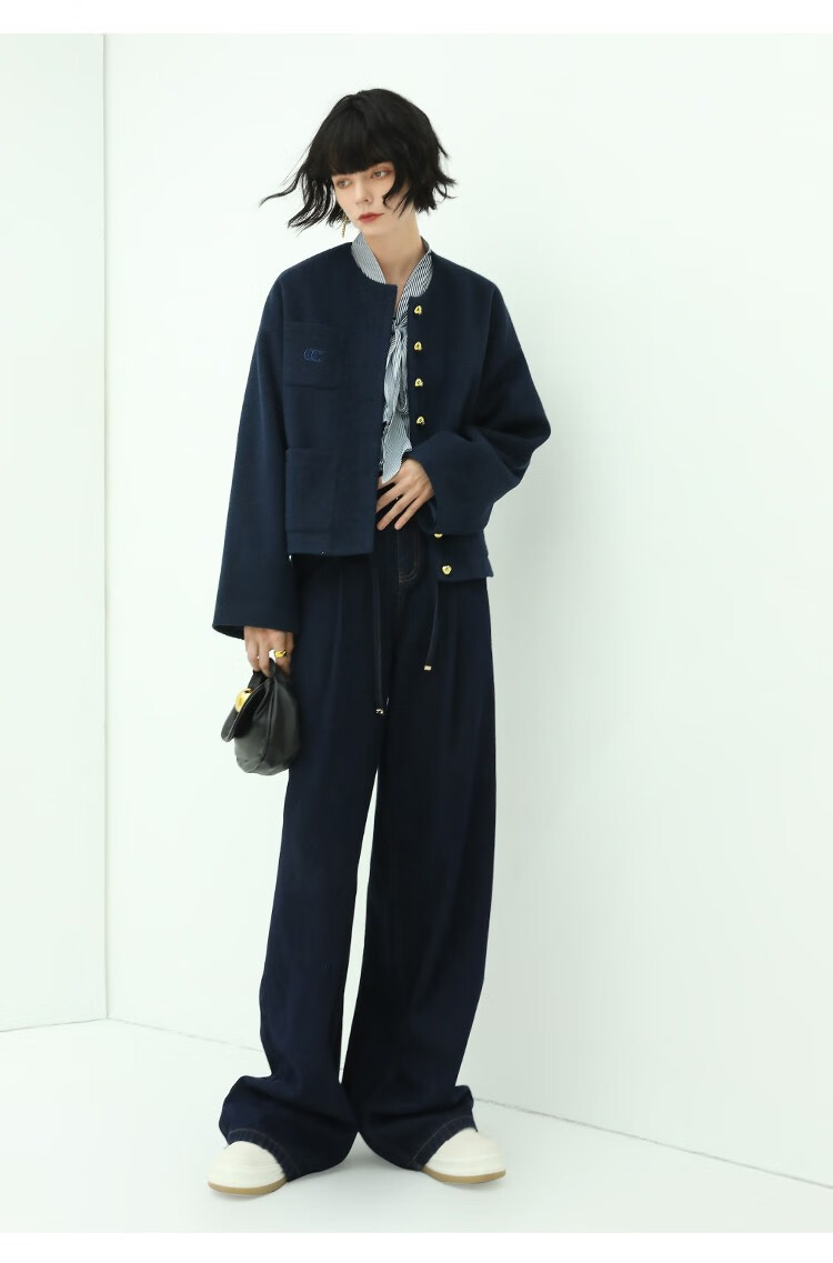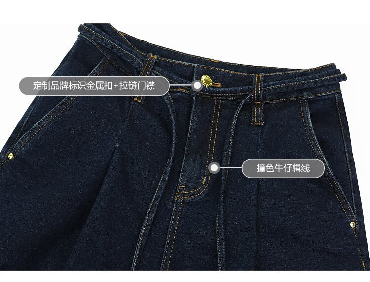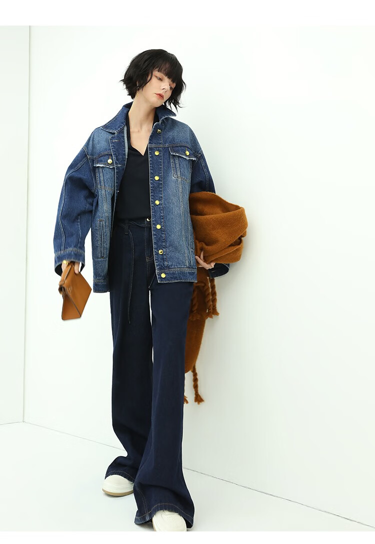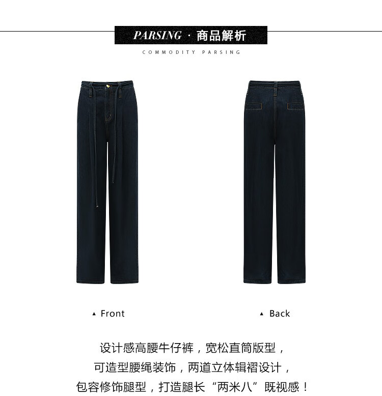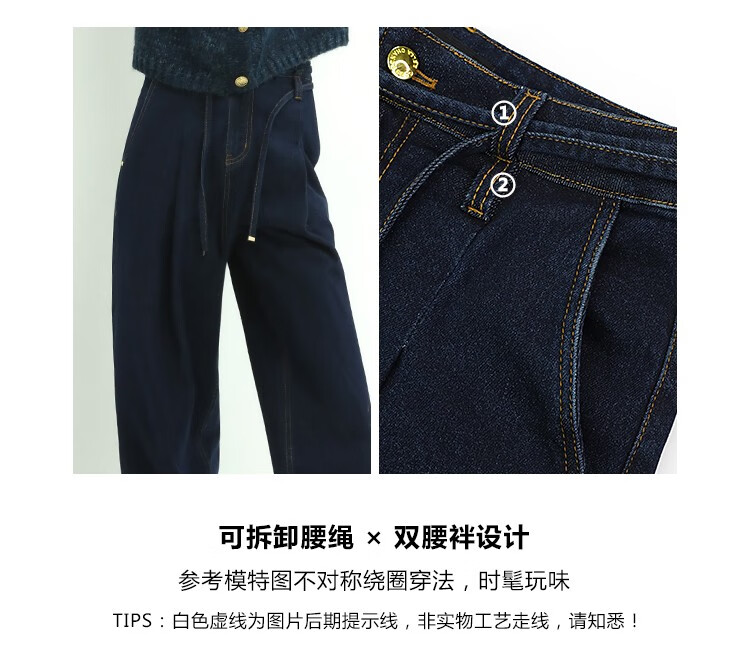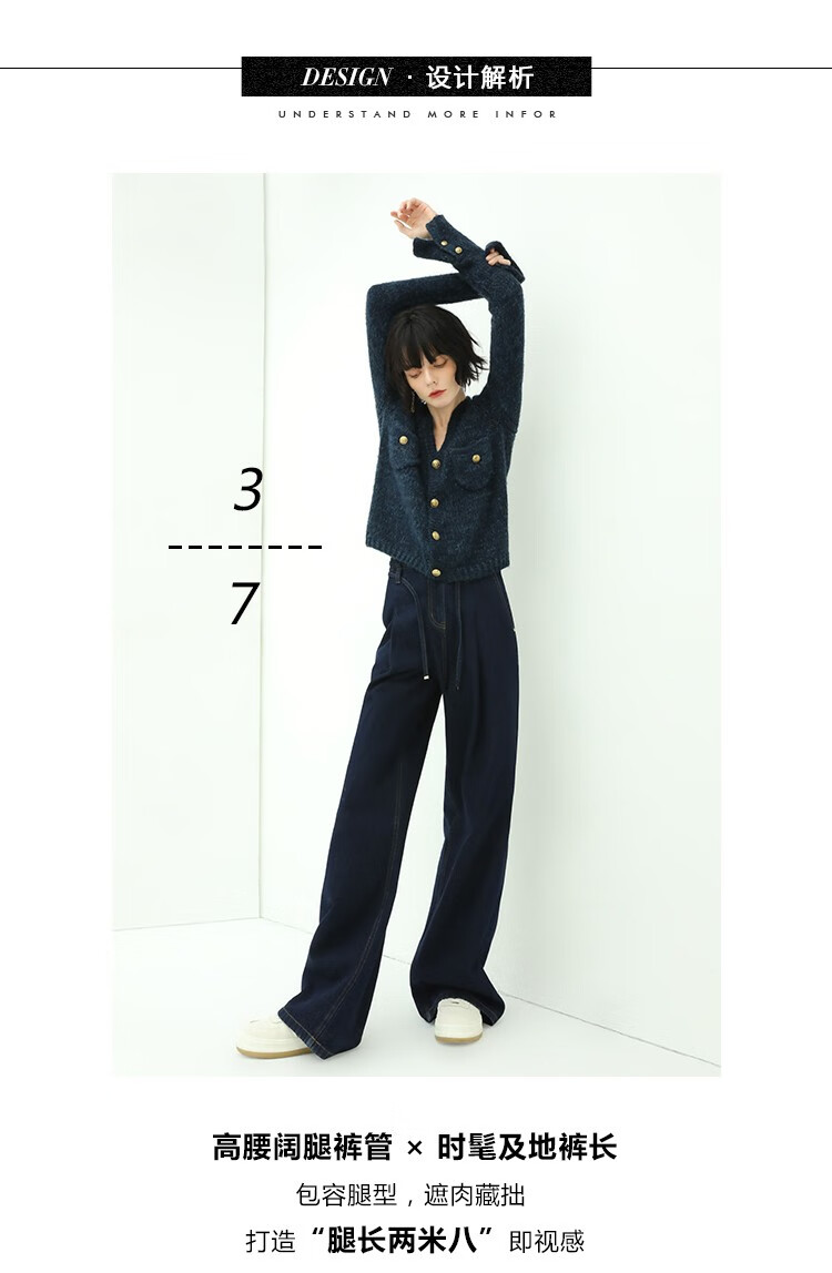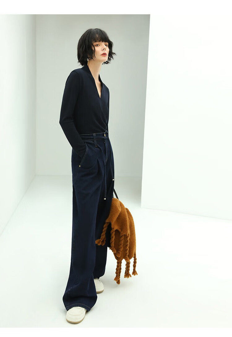COCOBELLA设计感腰带直筒牛仔裤宽松休闲高腰打褶阔腿裤DN626