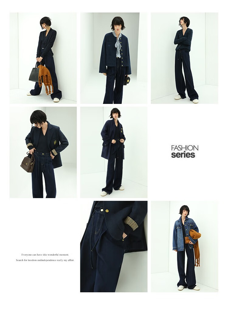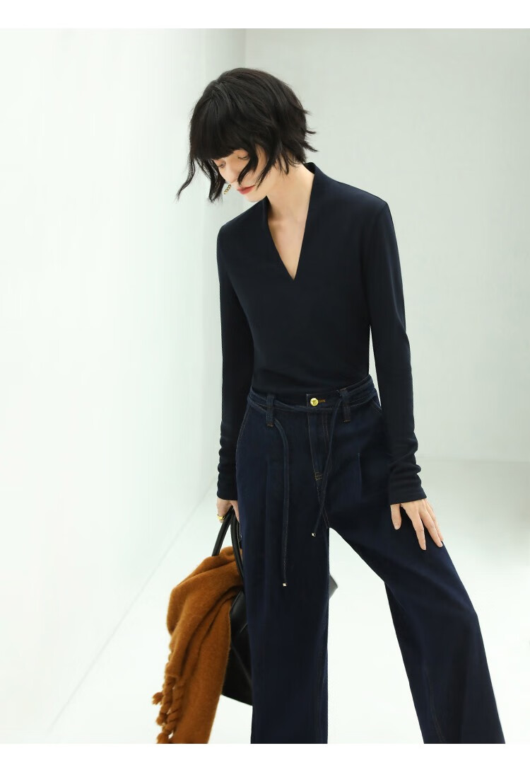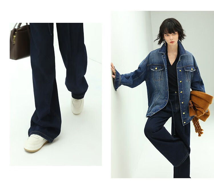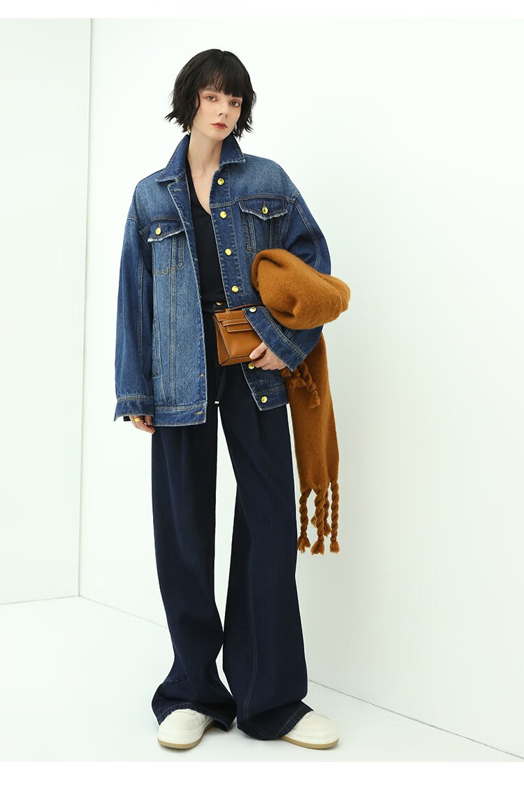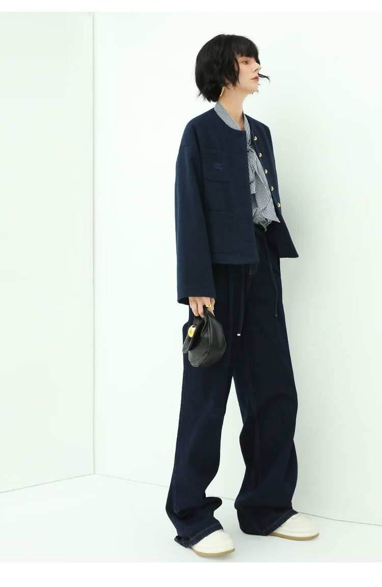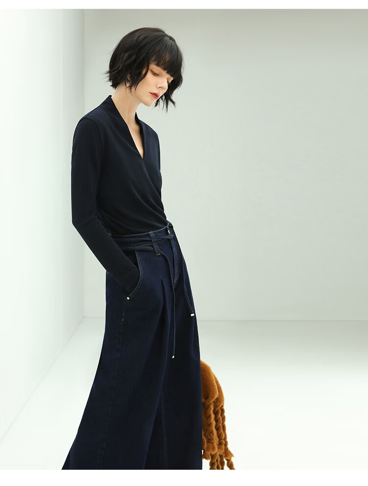 COCOBELLA设计感腰带直筒牛仔裤宽松休闲高腰打褶阔腿裤DN626