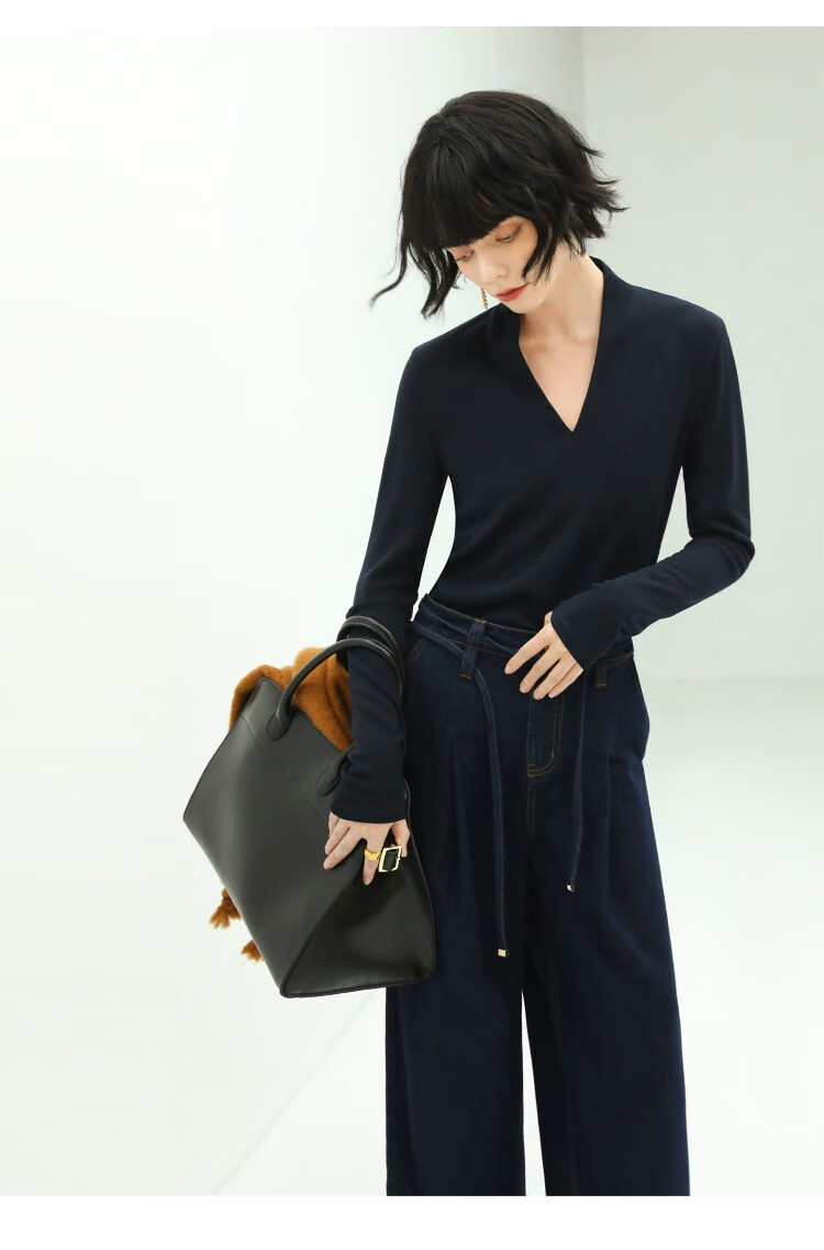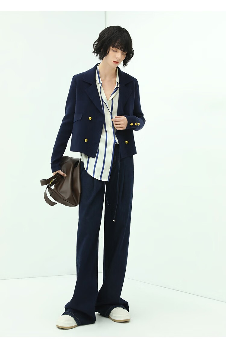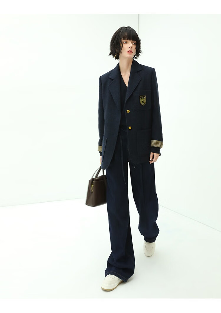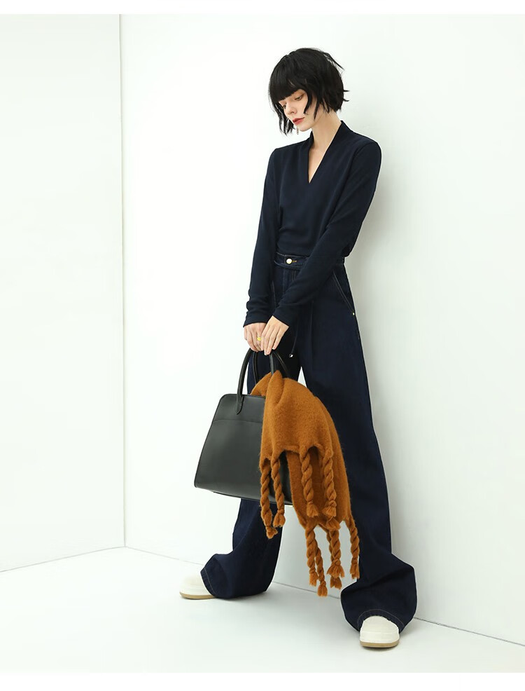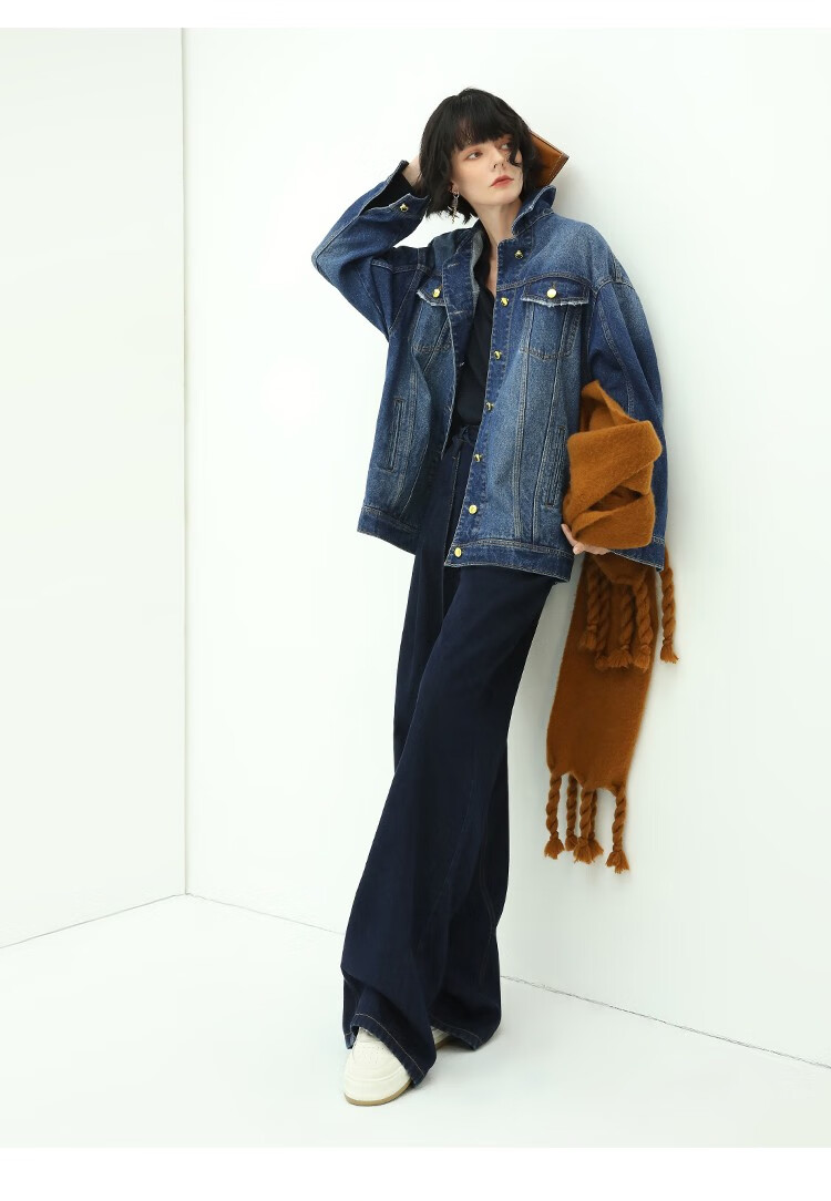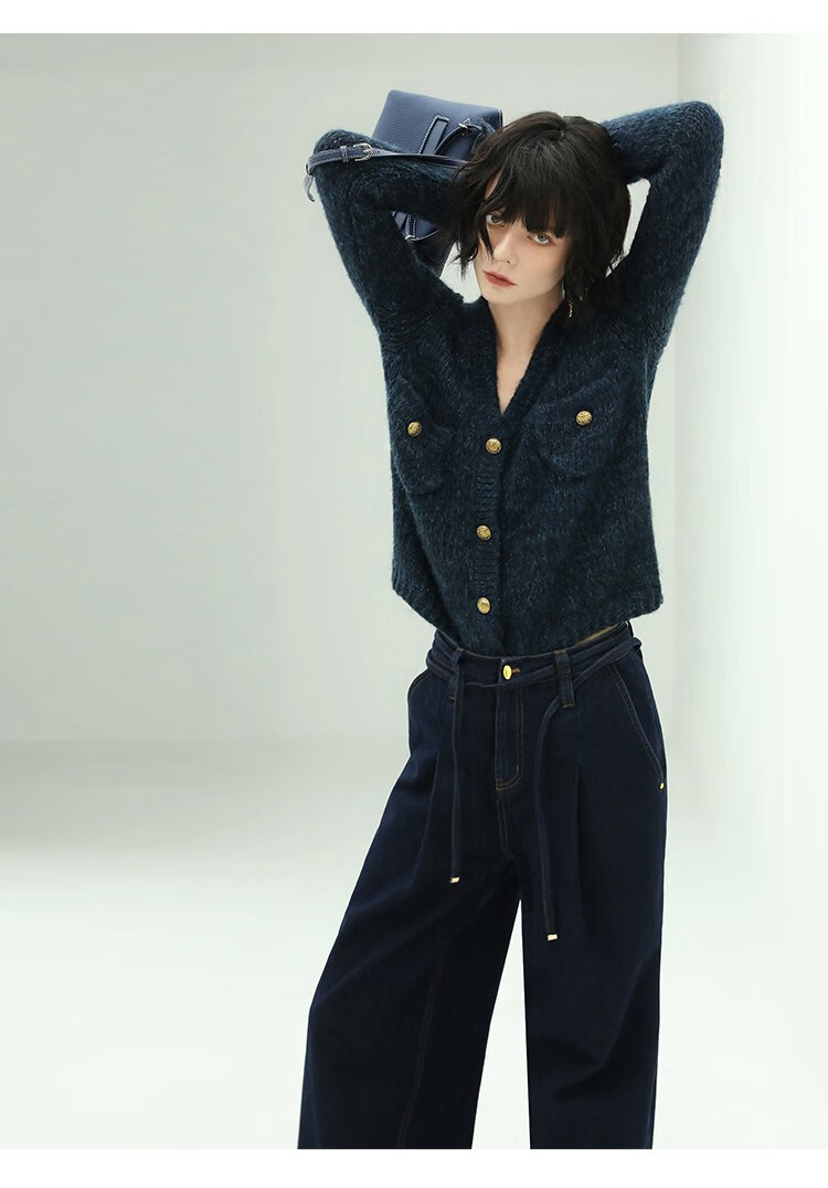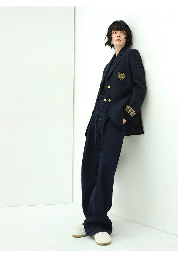 COCOBELLA设计感腰带直筒牛仔裤宽松休闲高腰打褶阔腿裤DN626