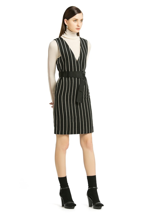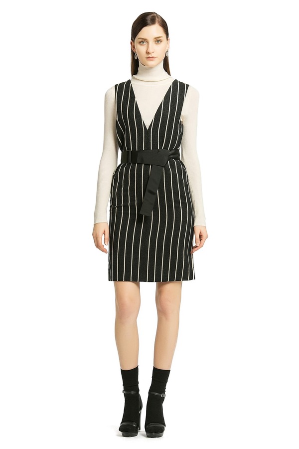 LILY 竖条纹V领连衣裙 424