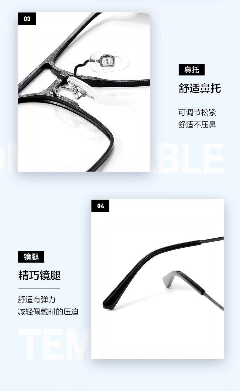 普莱斯光学镜框D3034 经典全框 半钛材质 舒适鼻托 稳固桩头 复古休闲 三色可选