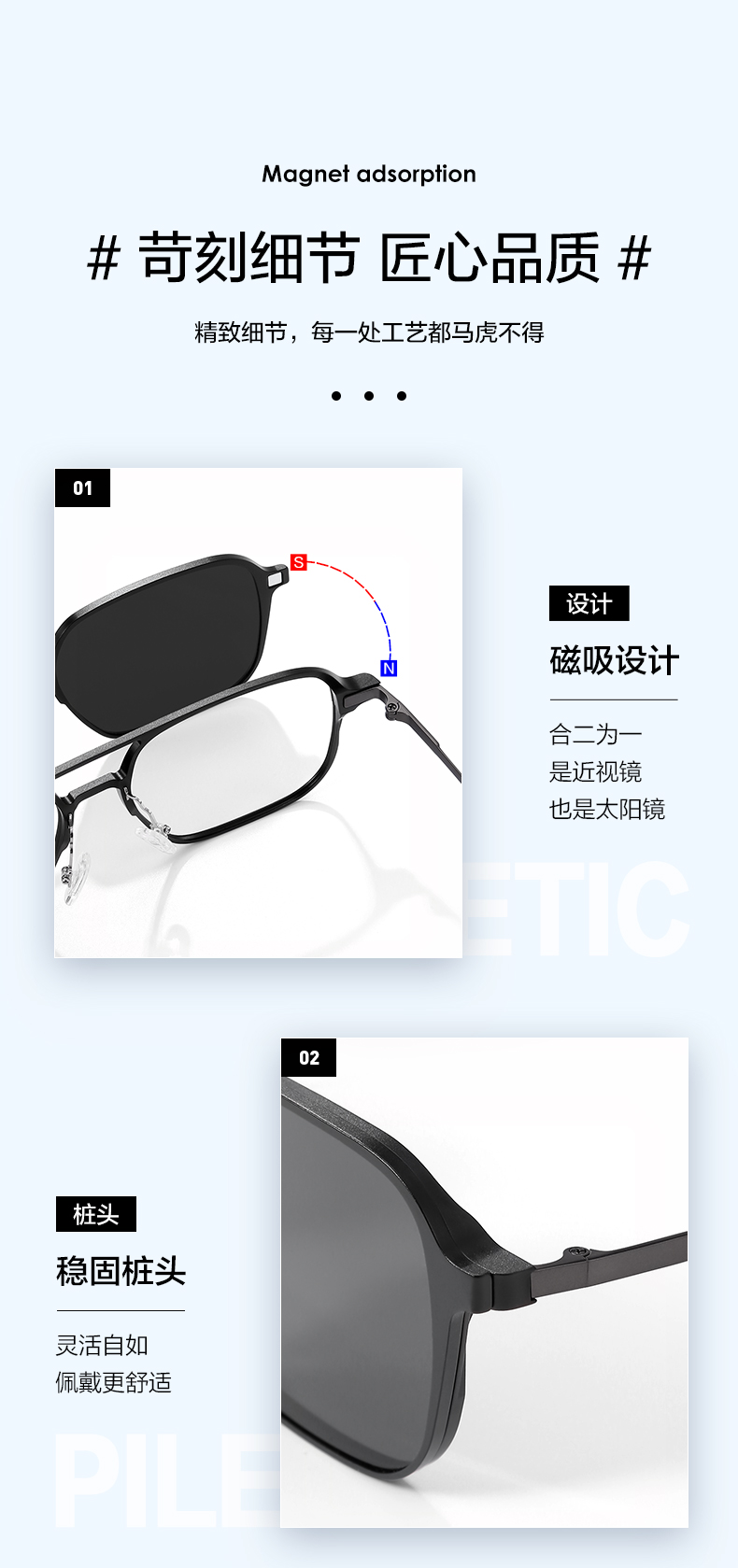 普莱斯PS20031 近视墨镜 一镜多用 铝镁合金 双色可选