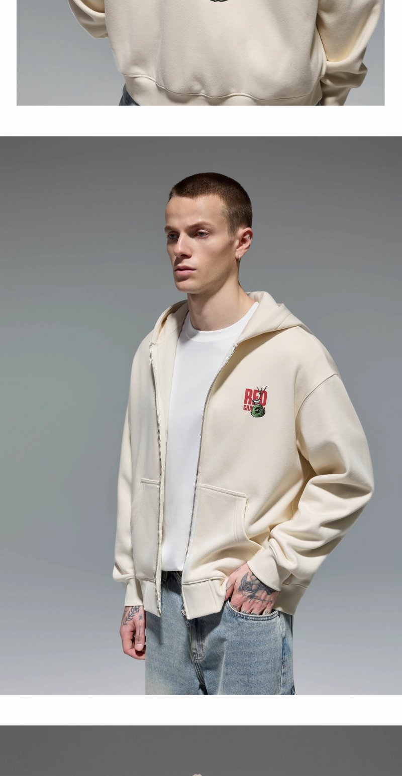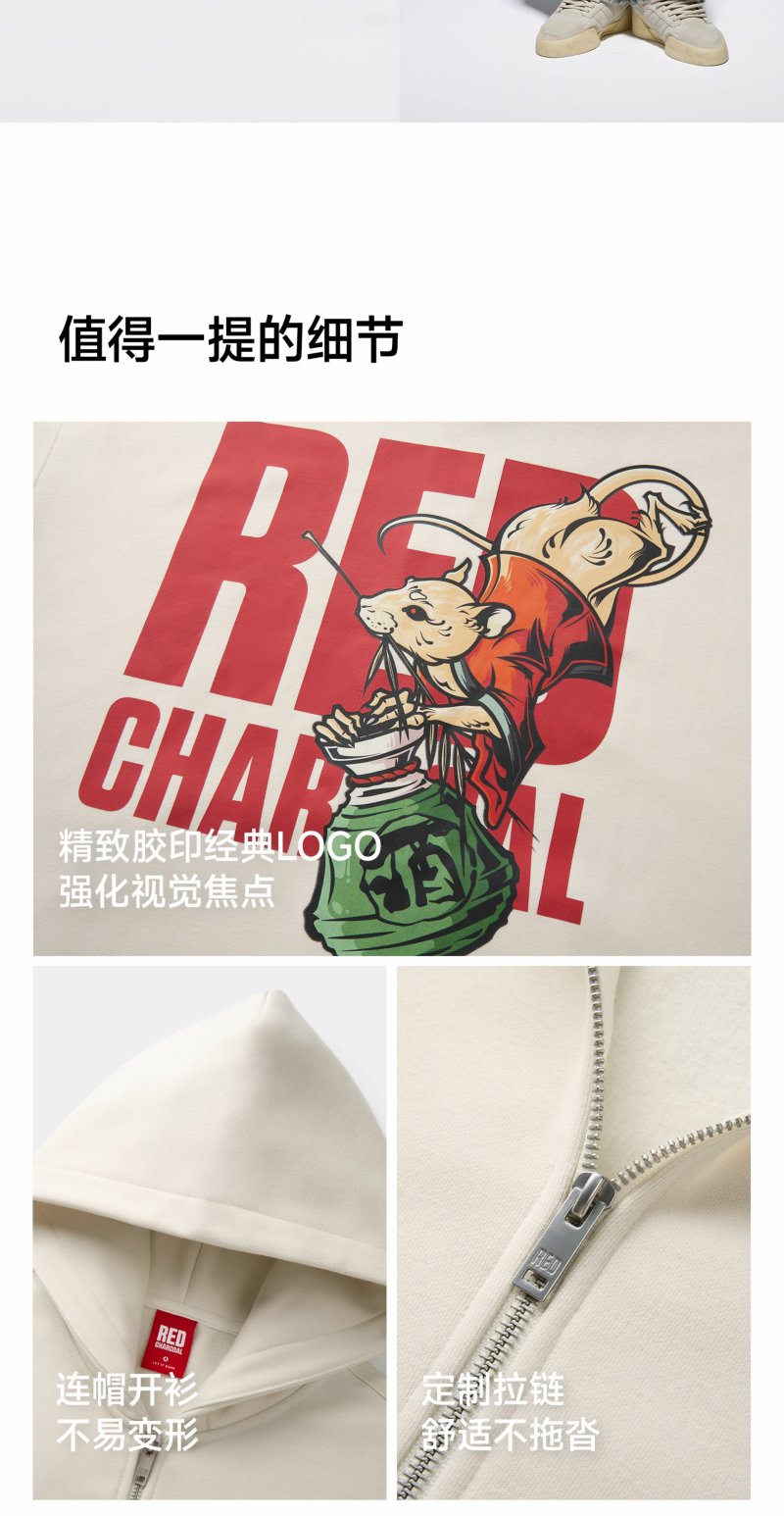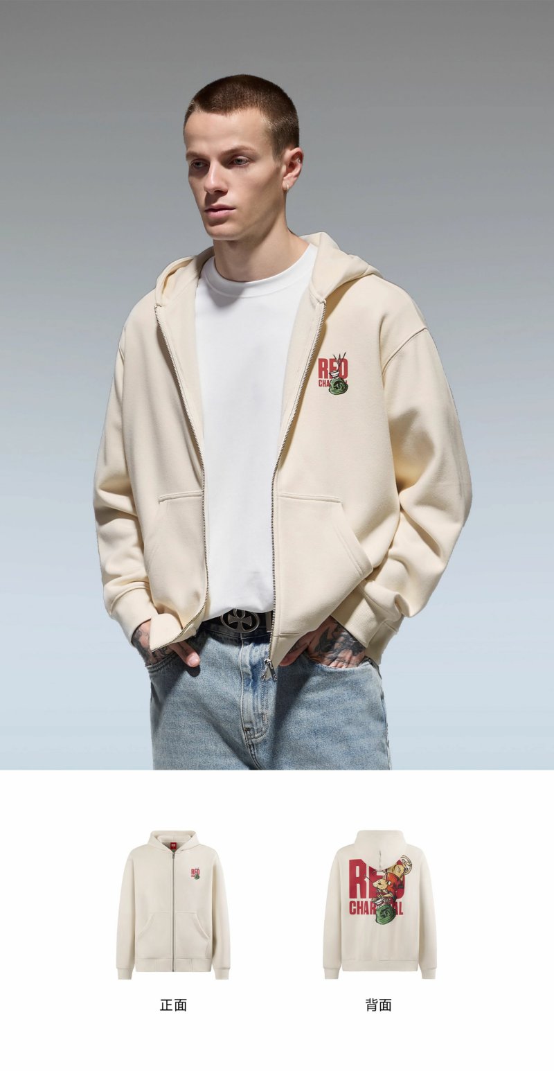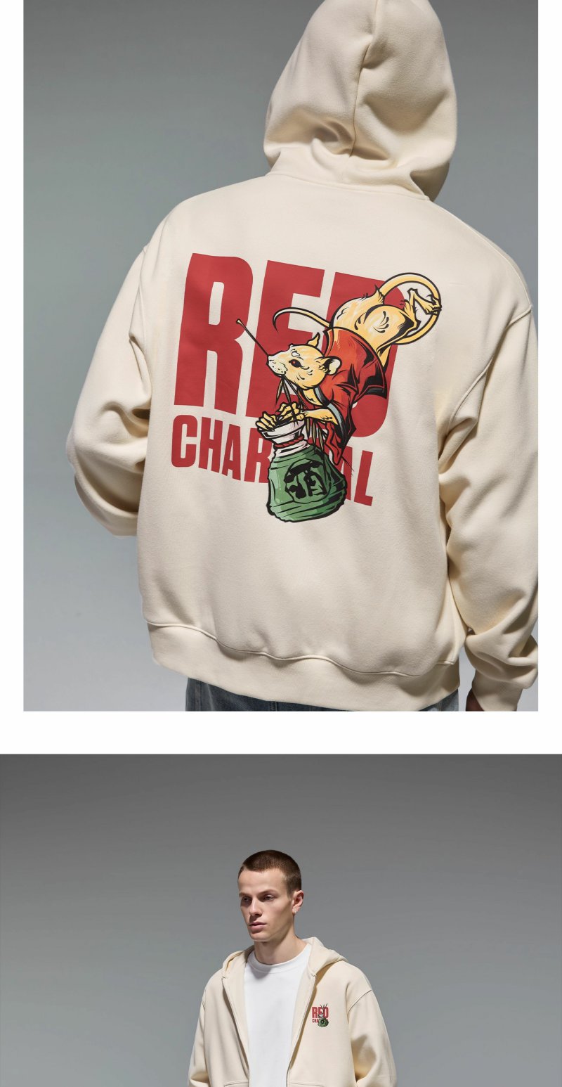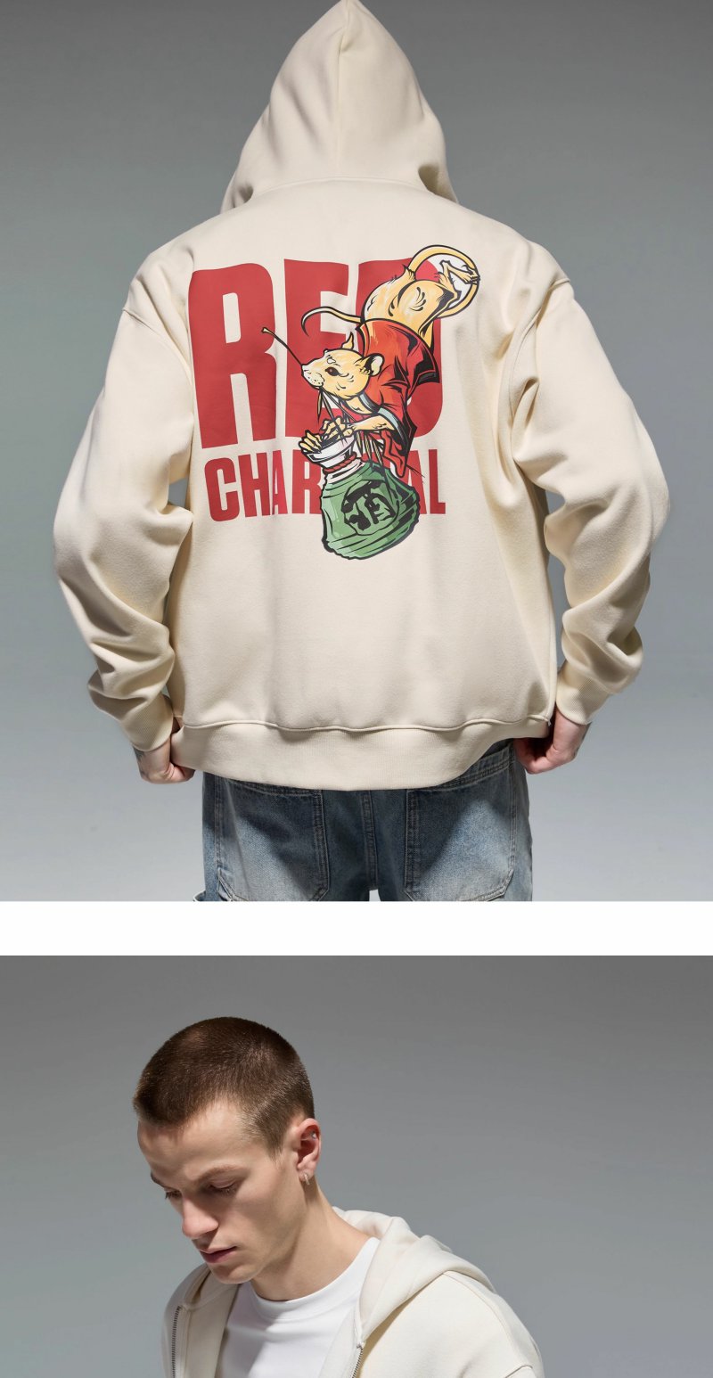 REDCHARCOAL 红炭白色老鼠印花开衫连帽卫衣男秋新款潮牌男士外套
