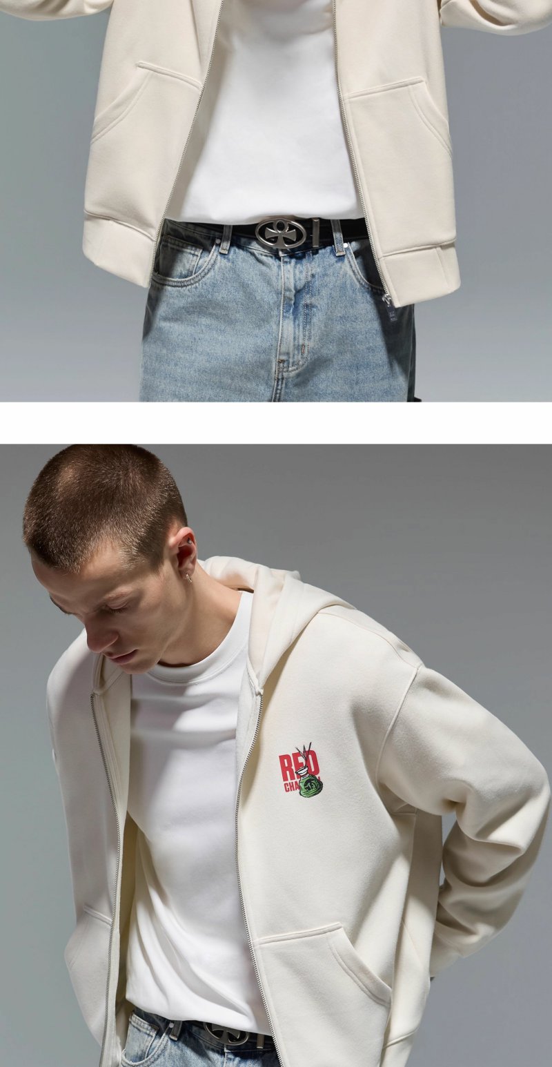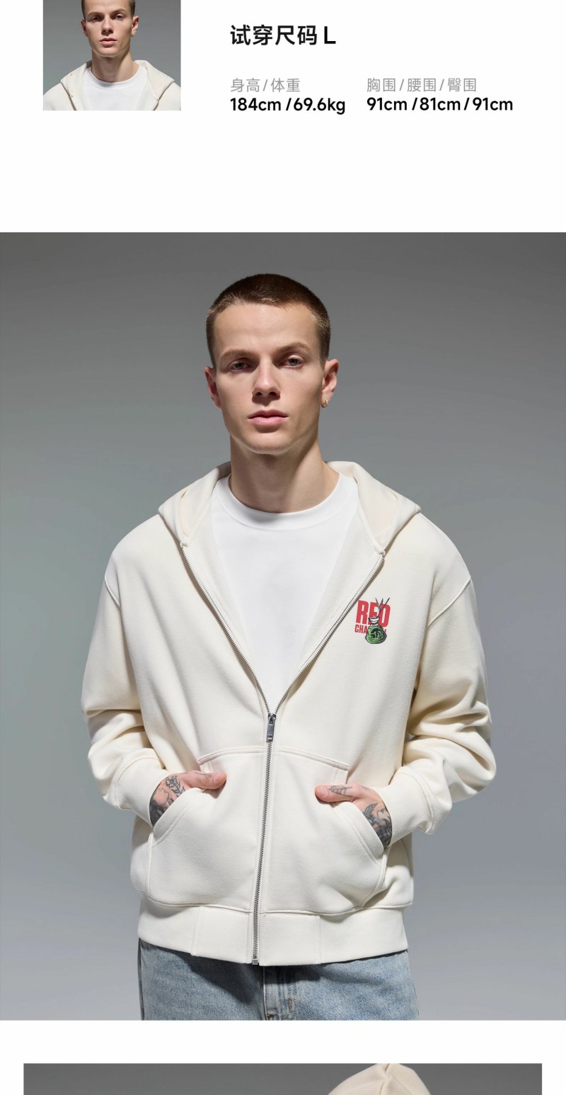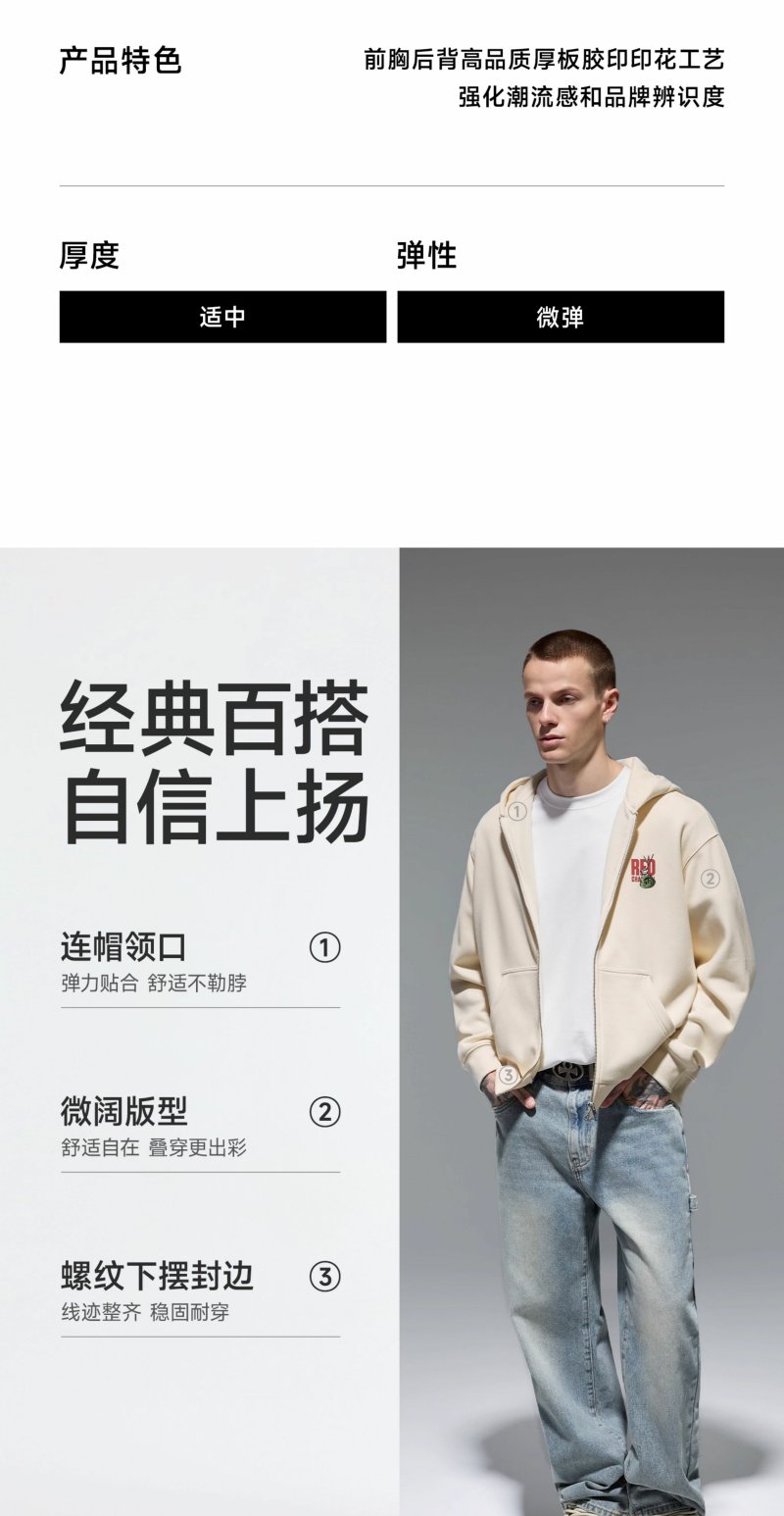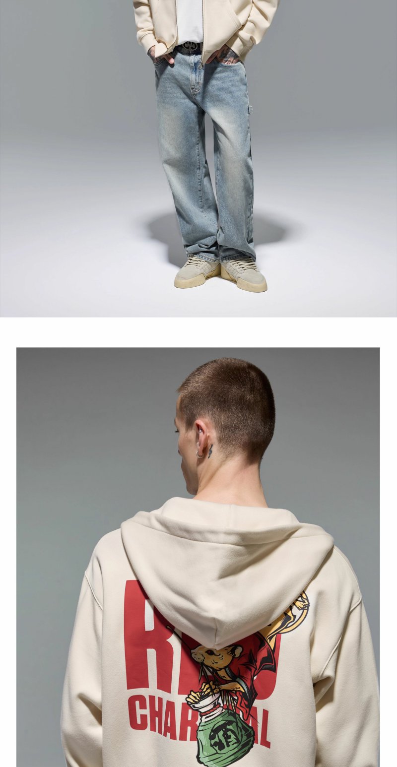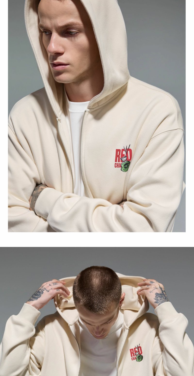REDCHARCOAL 红炭白色老鼠印花开衫连帽卫衣男秋新款潮牌男士外套