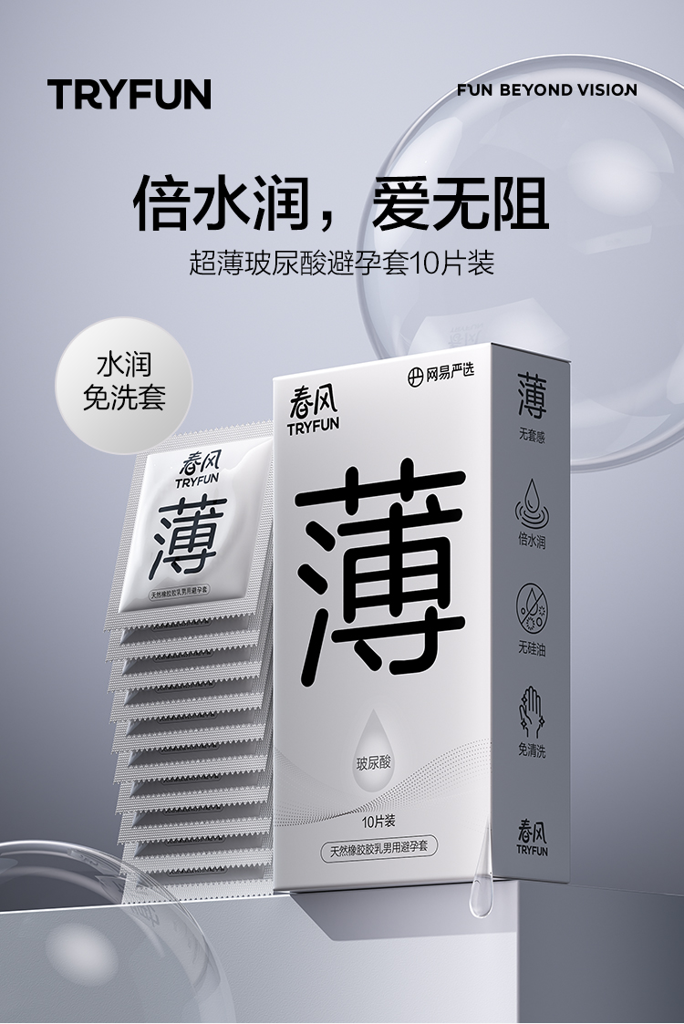 网易春风TryFun 超薄玻尿酸安全套10只装