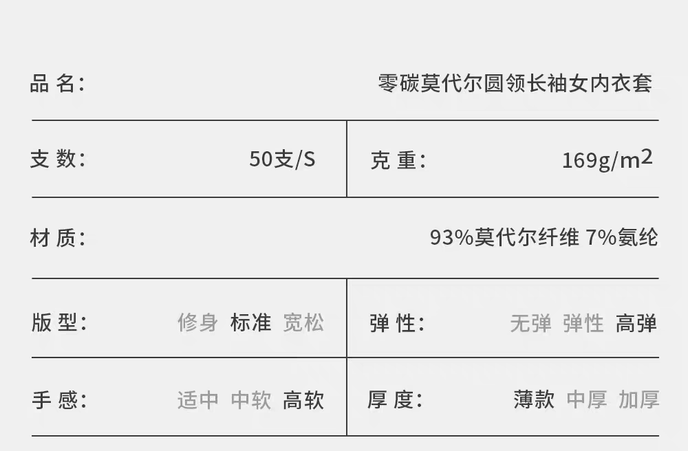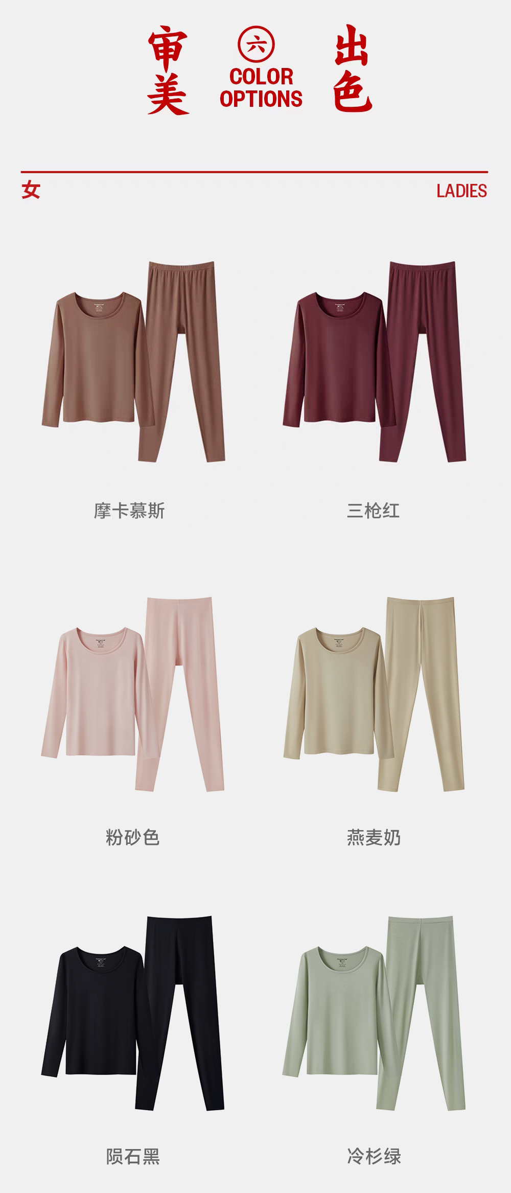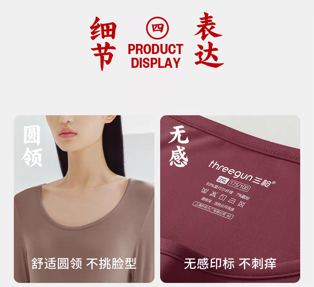 Threegun三枪 【零碳莫代尔】圆领长袖女内衣套-24394D021