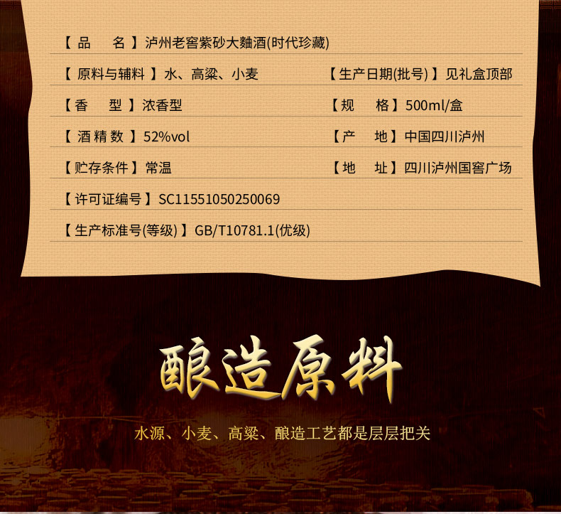 【自营】泸州老窖紫砂大麯酒(时代珍藏)52度500ml*1瓶浓香白酒收藏送礼宴请