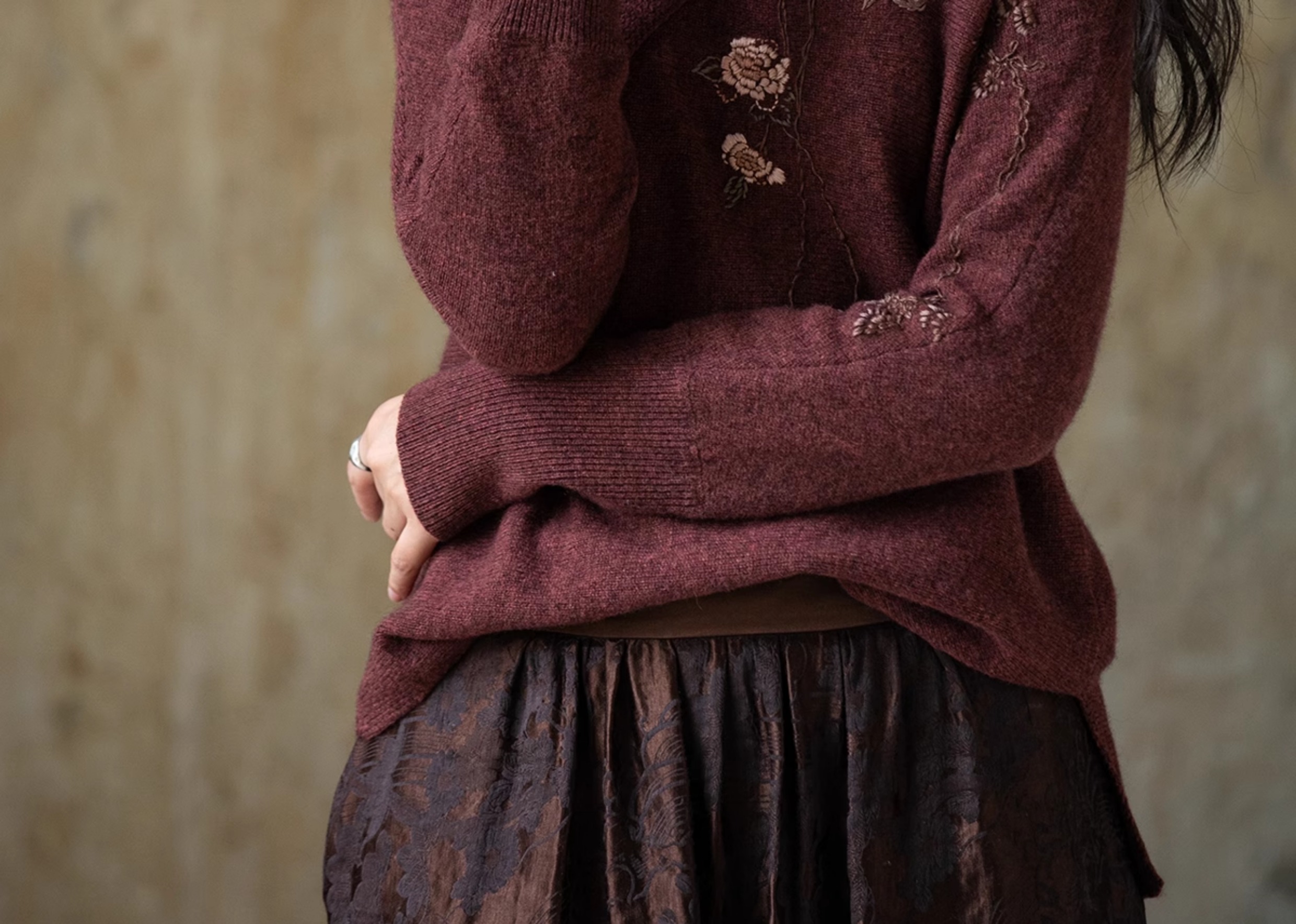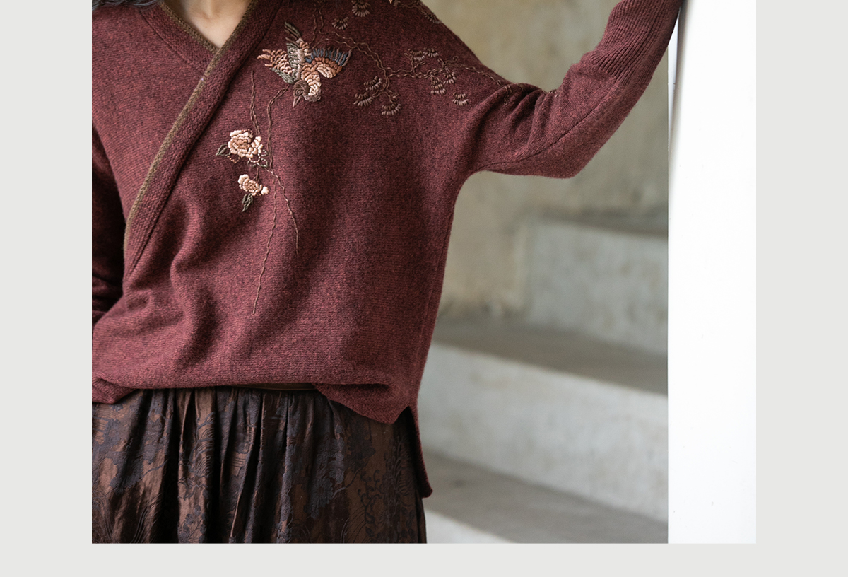 牧衣游原创 进口牦牛绒手绣毛织套头衫-----川行