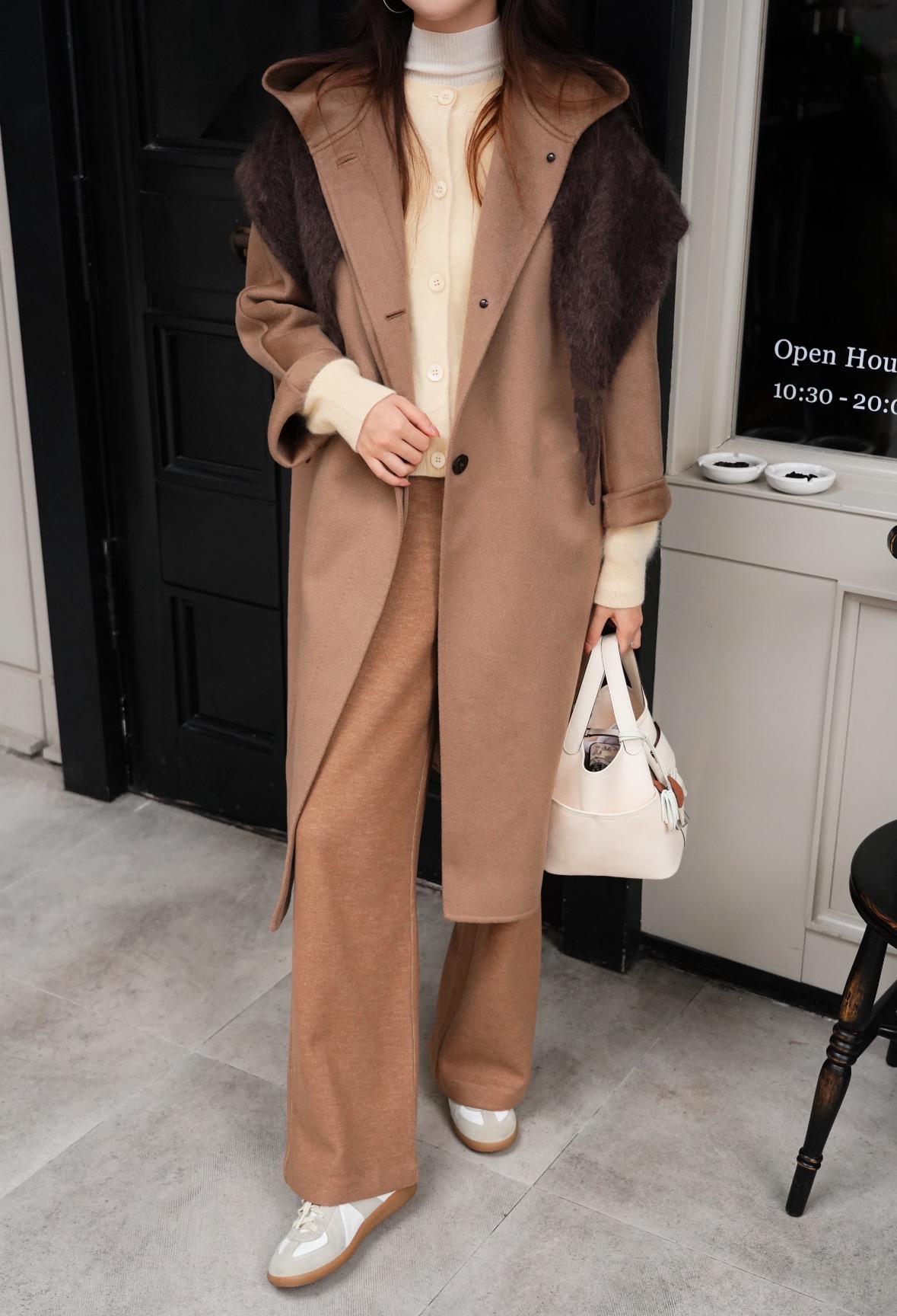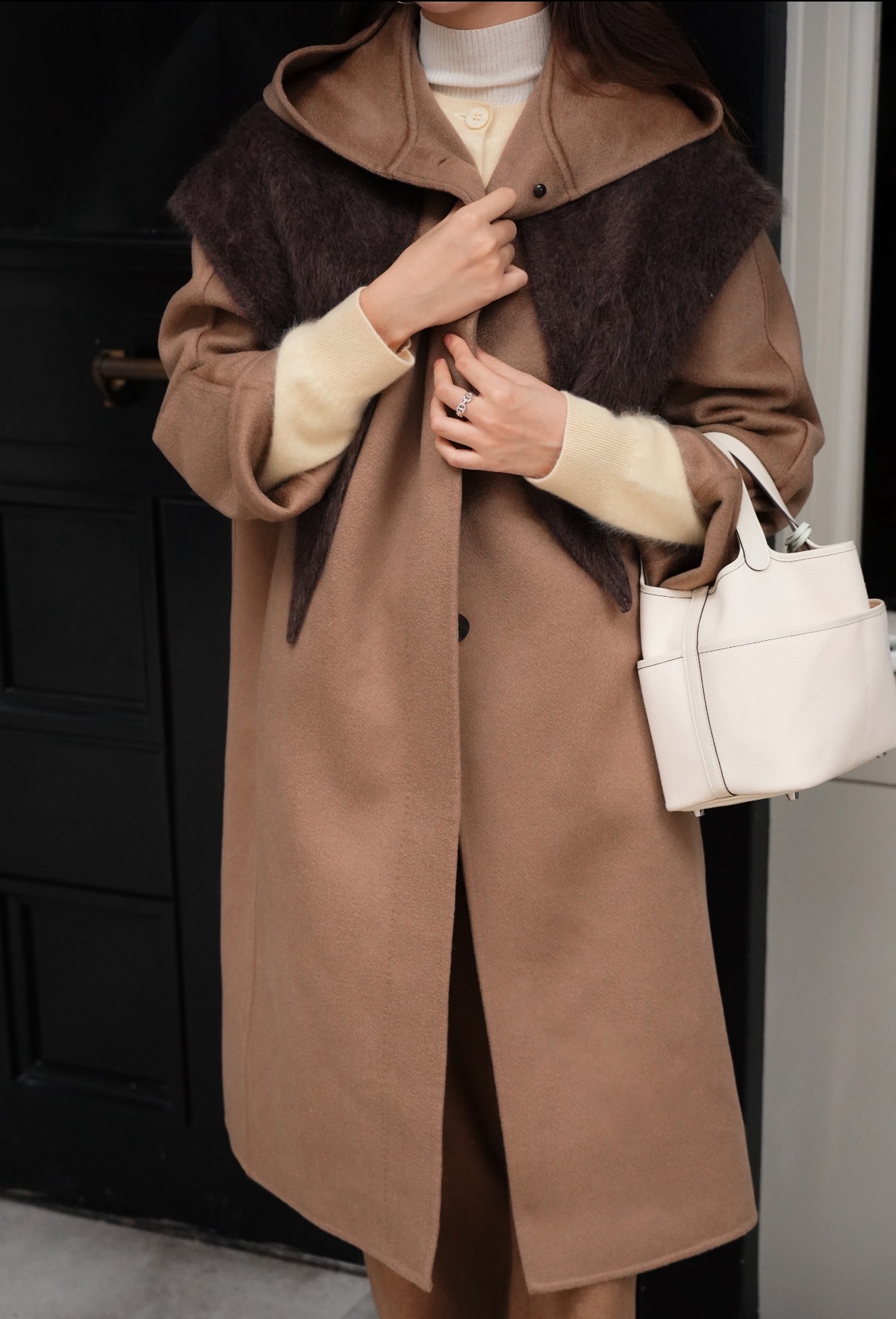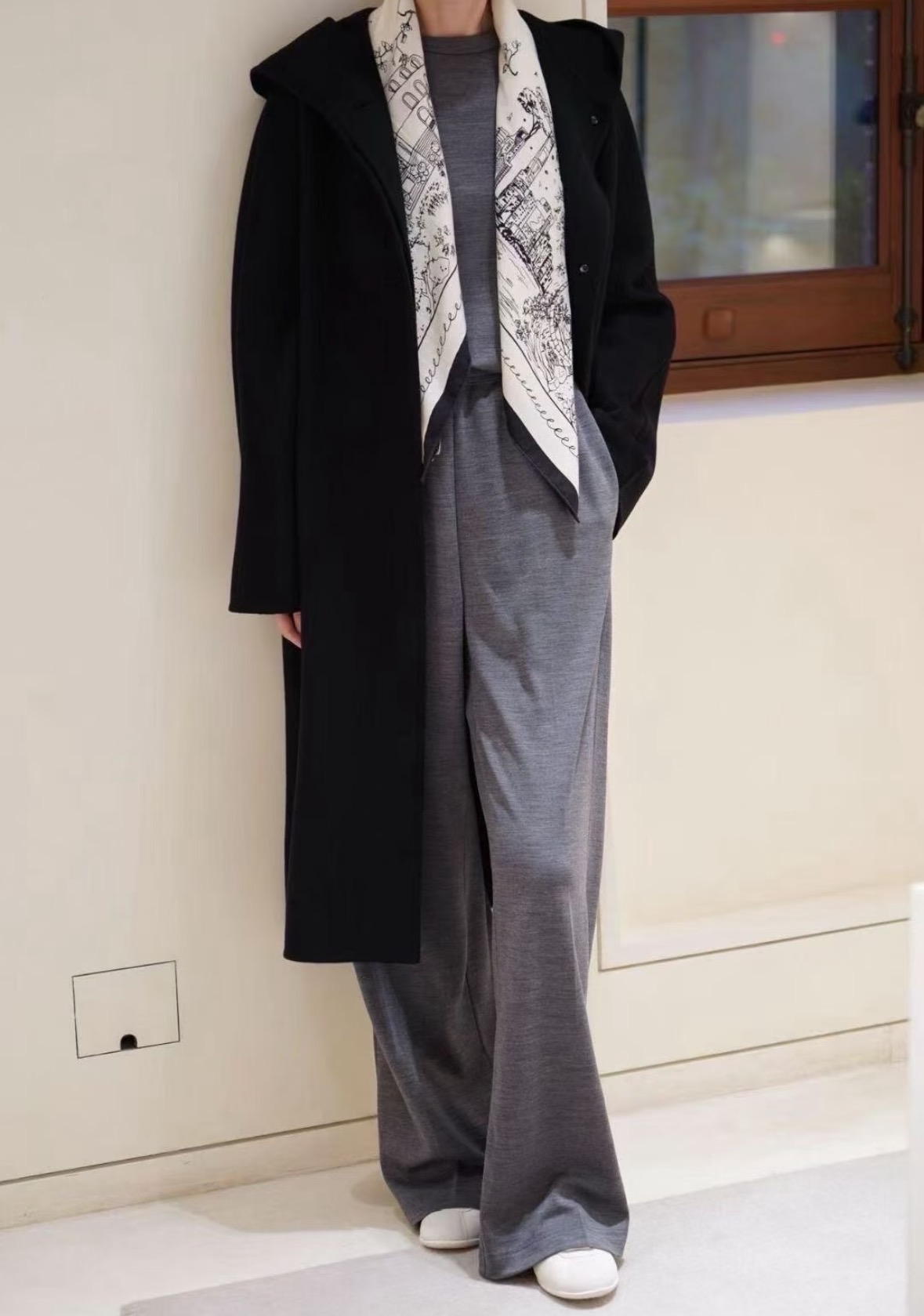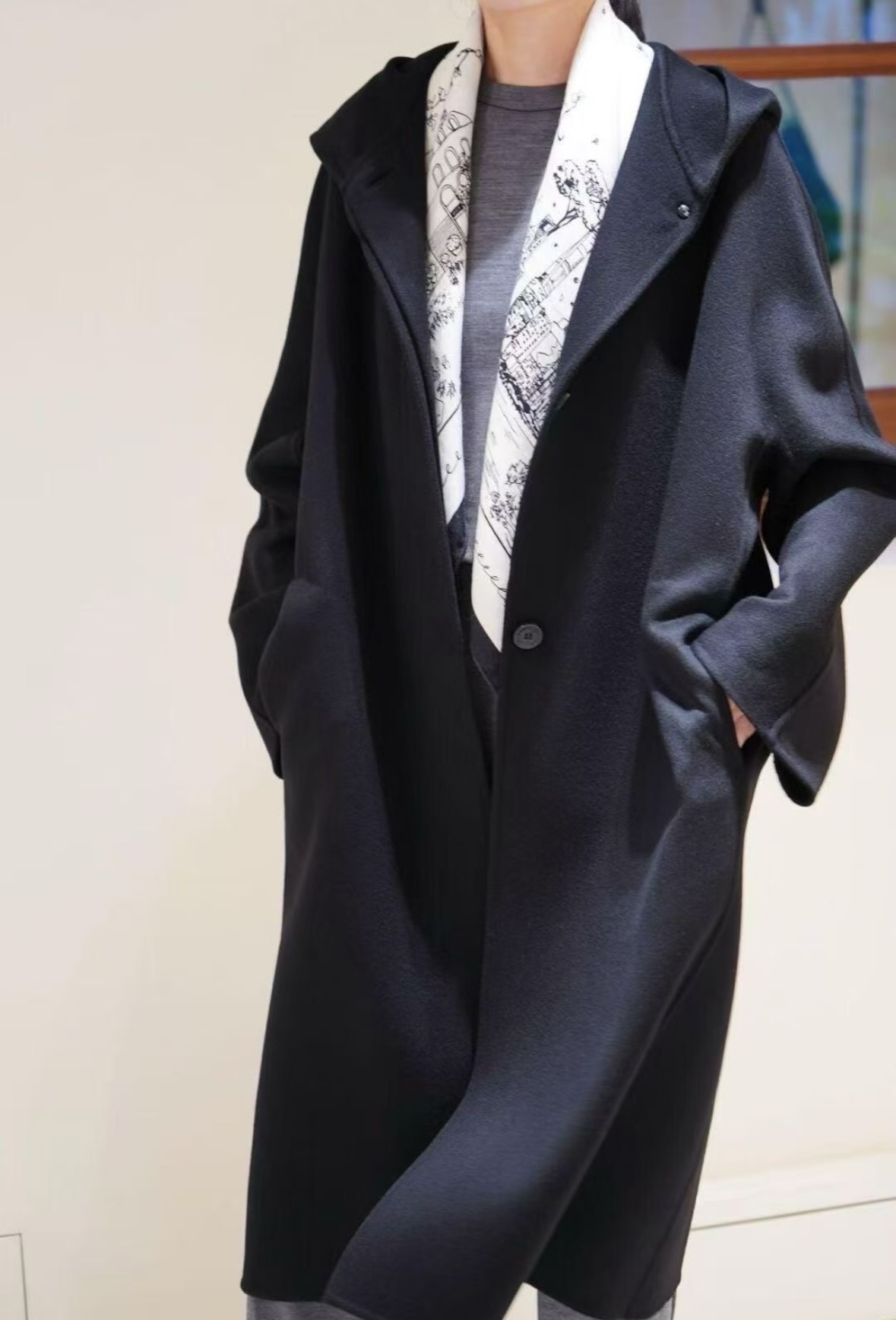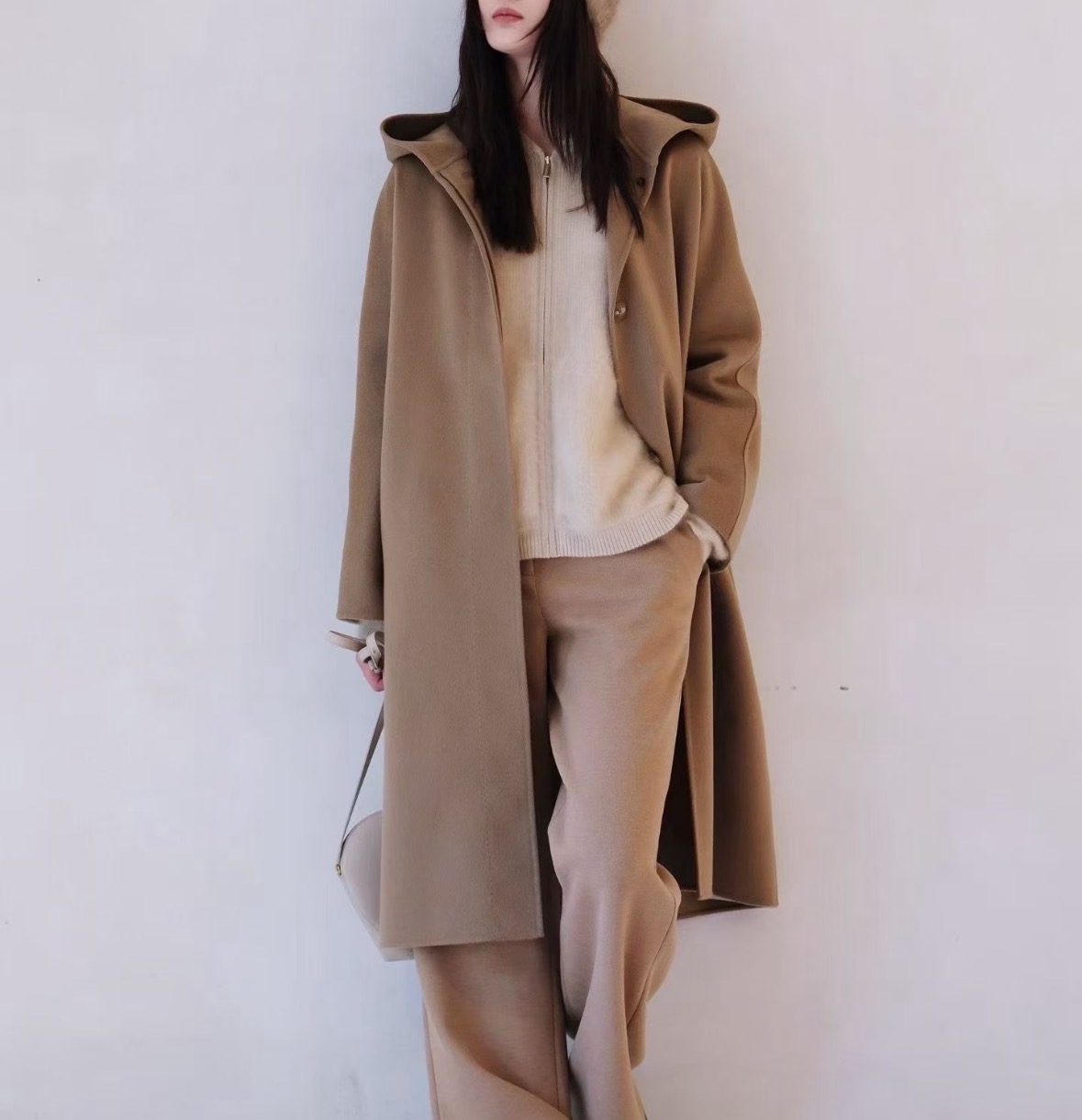 (稀缺货源)火桐hooton 厚全羊绒双面呢连帽及膝大衣外套ZB9090