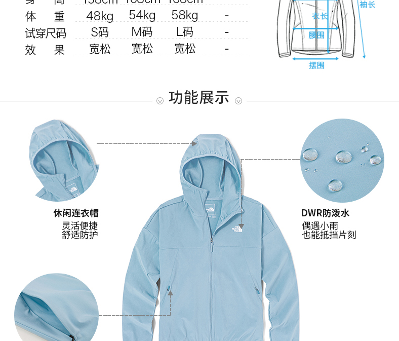 北面皮肤衣女户外防晒舒适防泼水NF0A4UB43R31