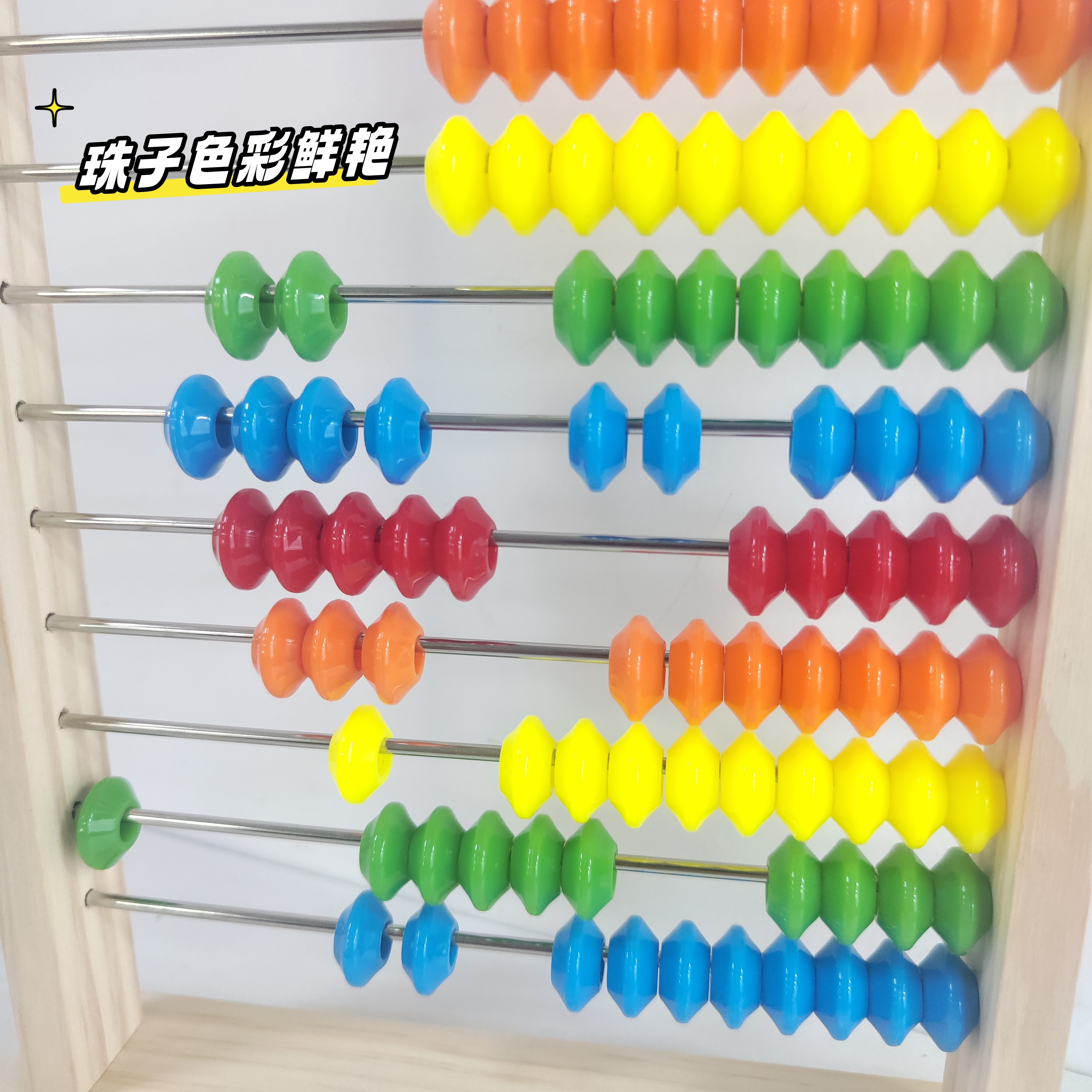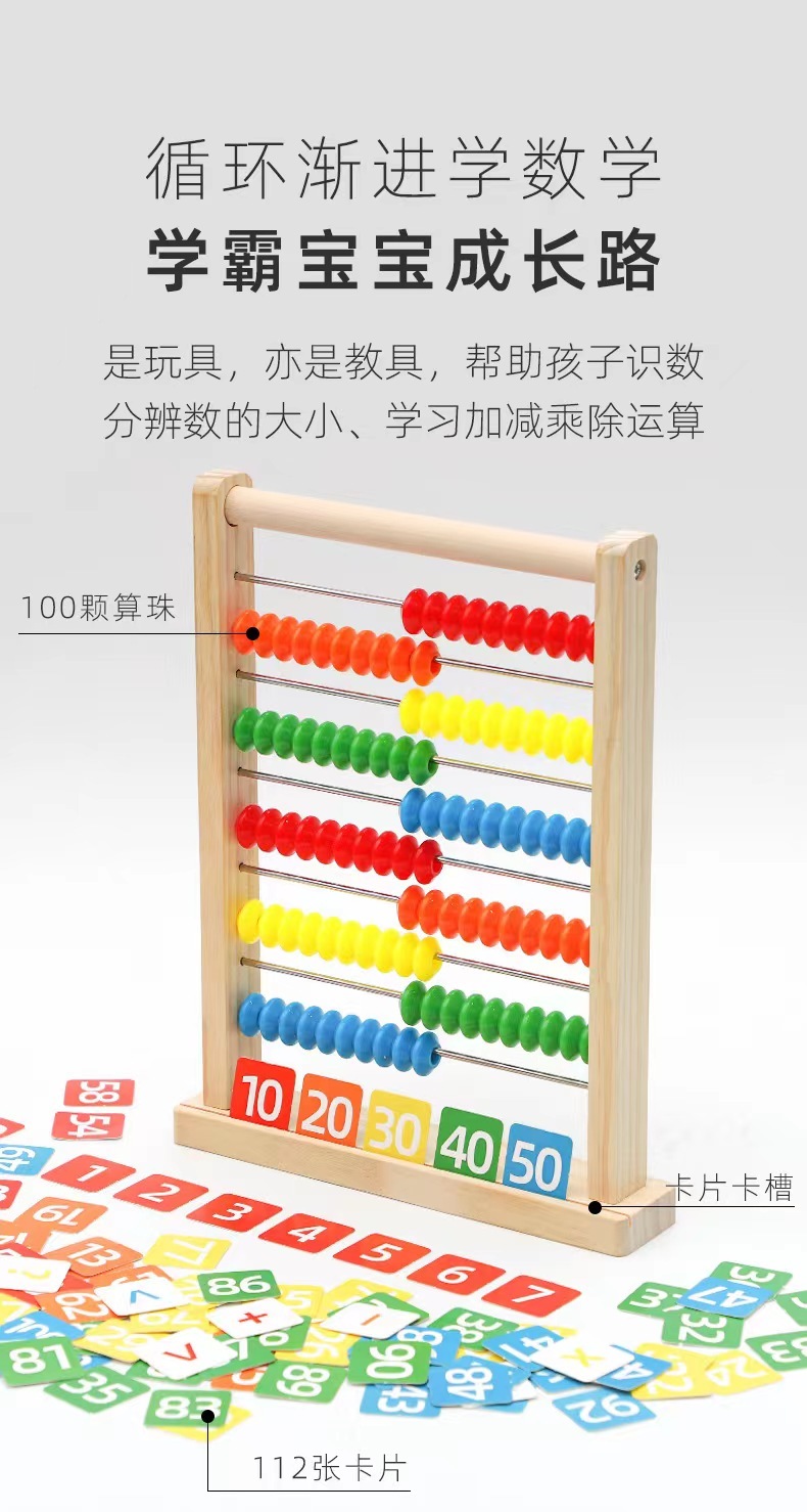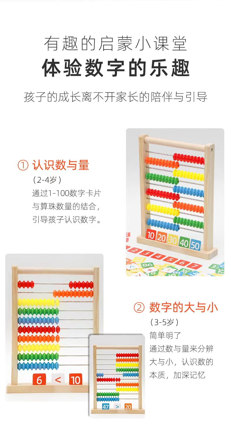 ✅杆子滑动流畅,珠子色彩鲜艳容易辨认,水性油漆无毒无异味,带有卡片凹槽方便学习