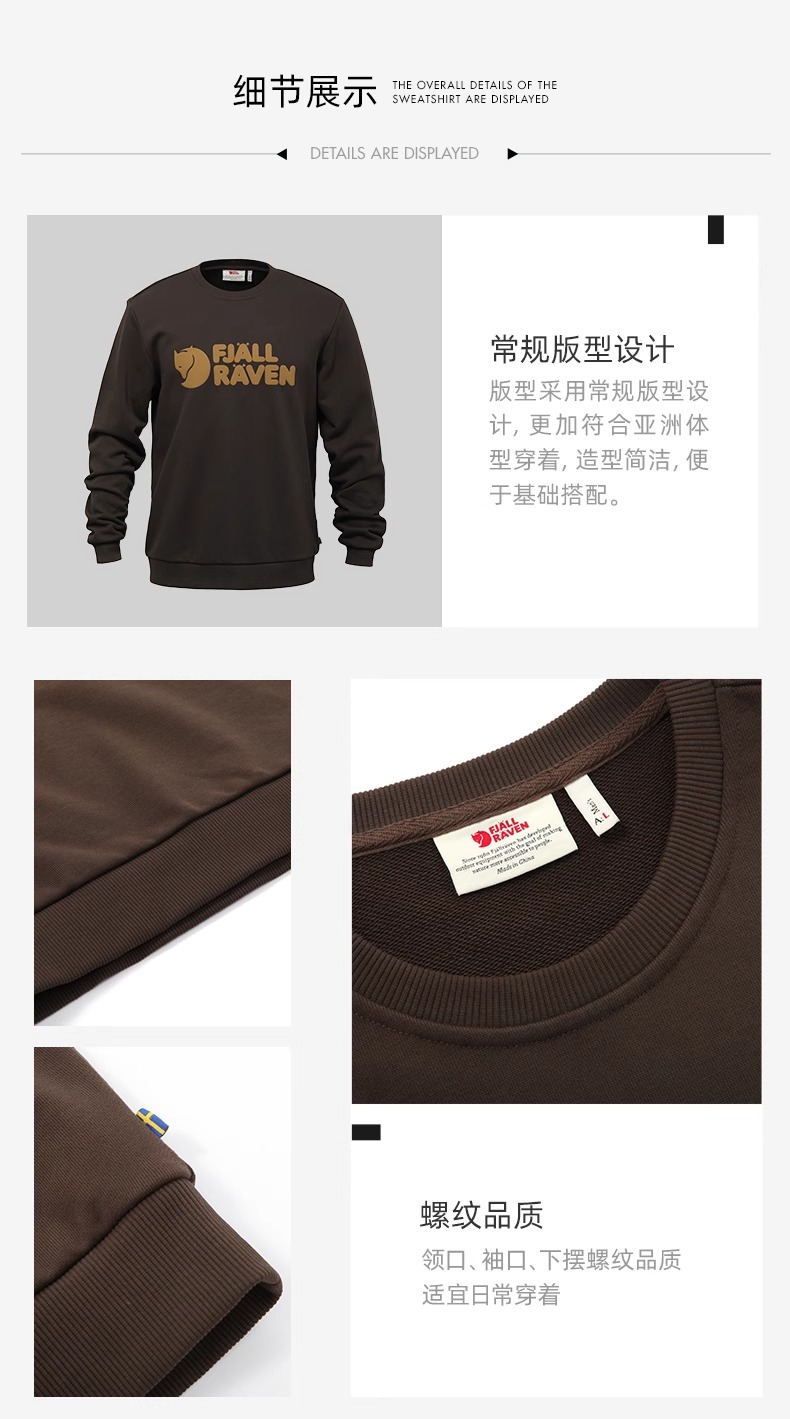 Fjallraven/北极狐休闲秋冬男士户外百搭经典日常圆领长袖印花卫衣04232173