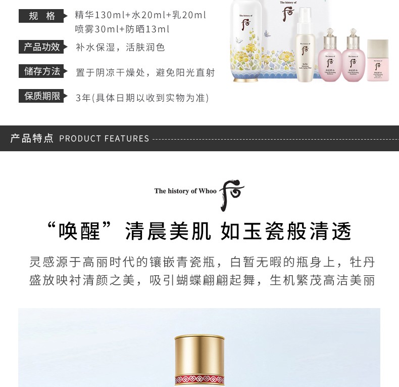 WHOO/后 秘贴精华套装导入循环精华 增量版(精华130ML+水20ML+乳20ML+喷雾30ML+防晒13ML)
