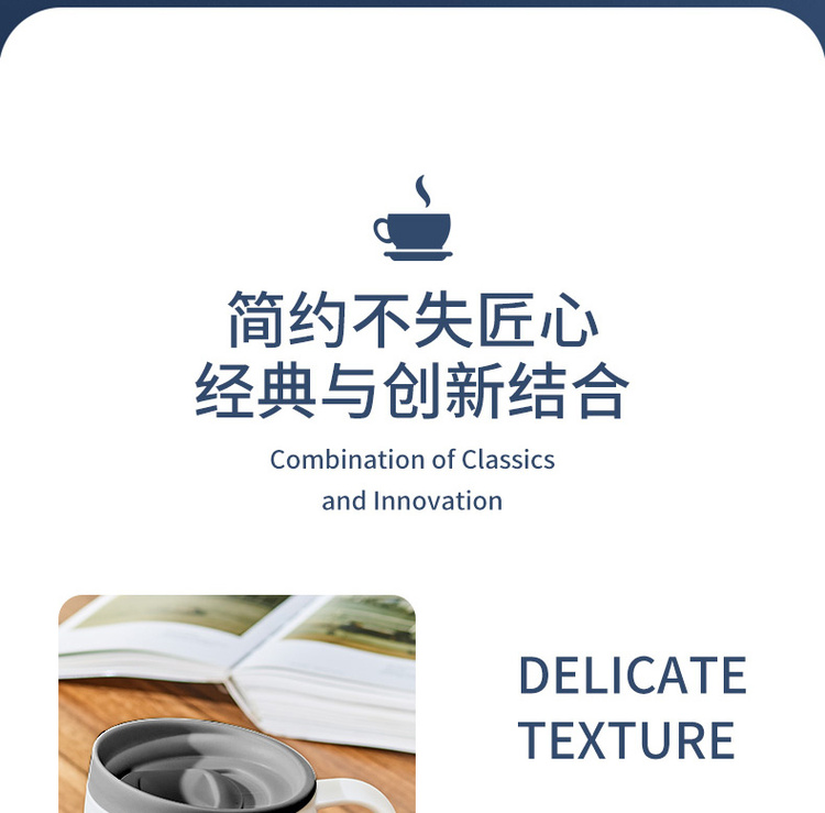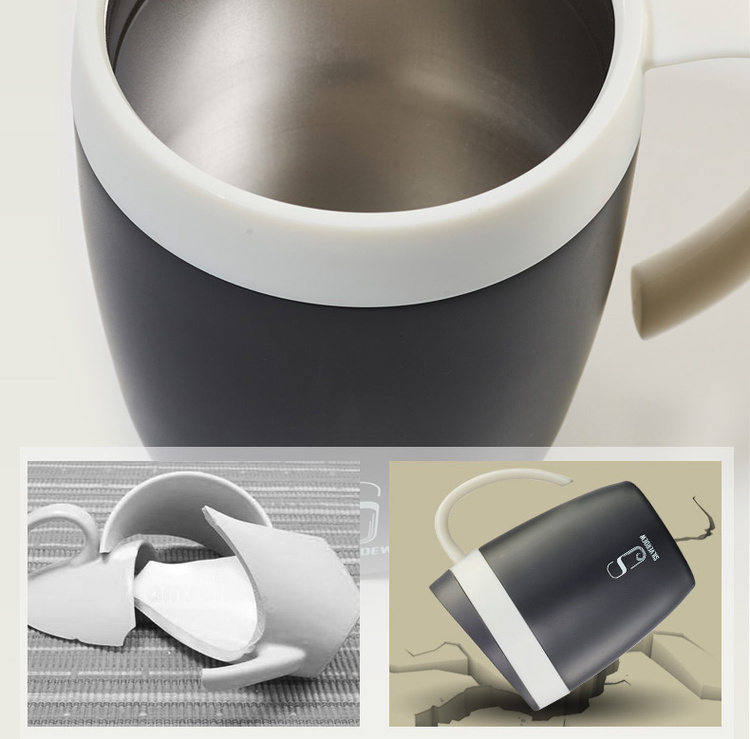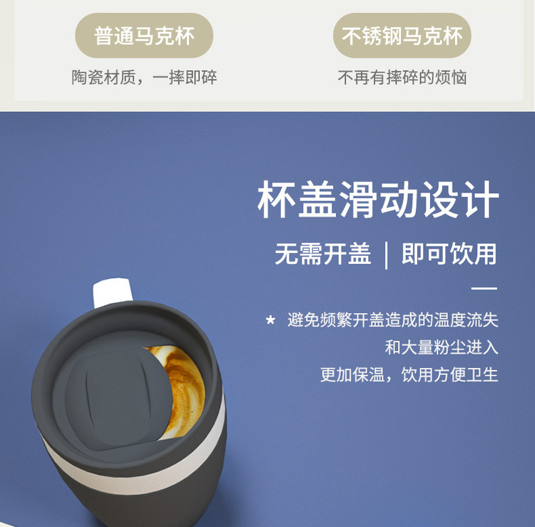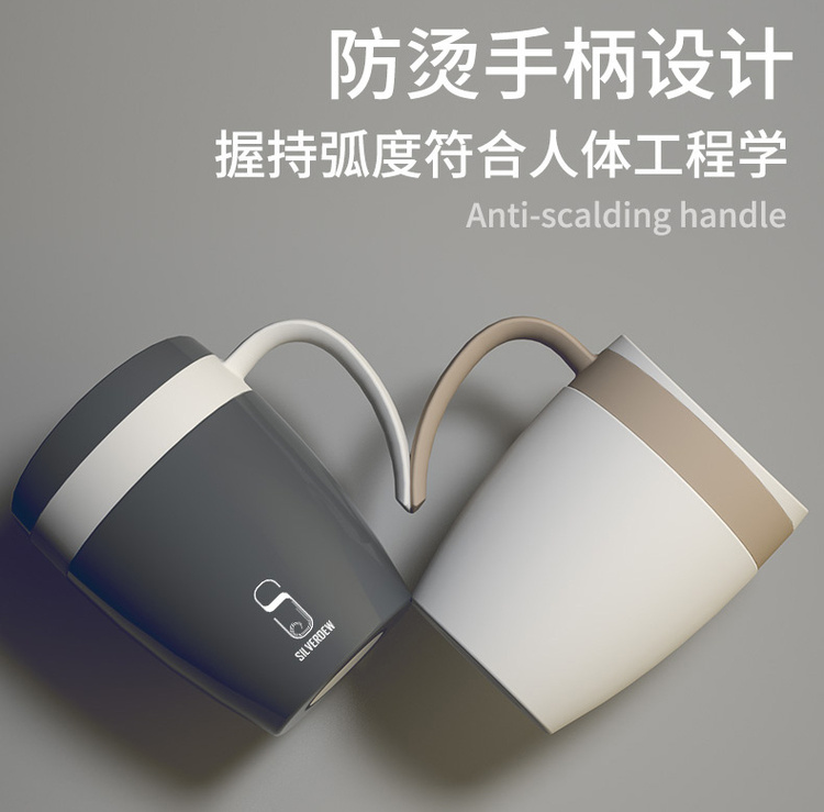 诗芙迪(SILVERDEW)不锈钢保温咖啡杯办公室水杯子男女黑色带手柄带盖330ml