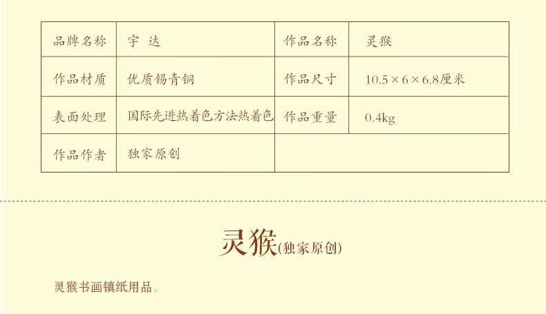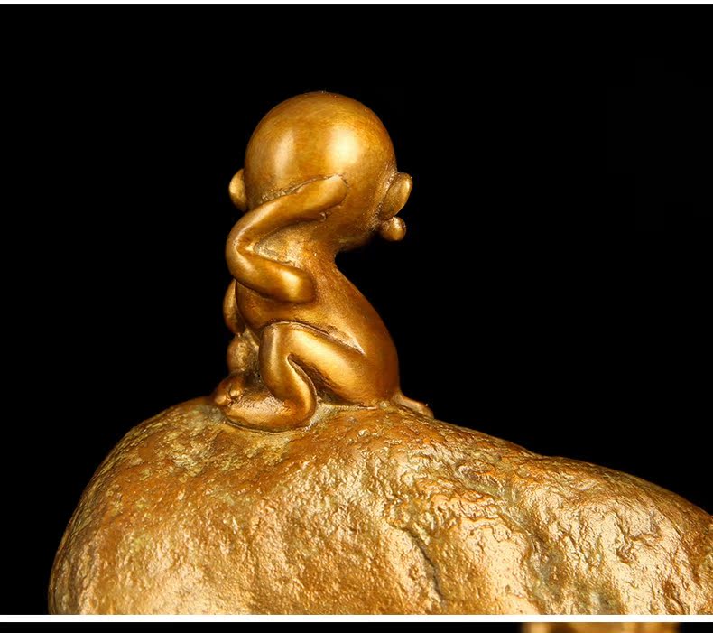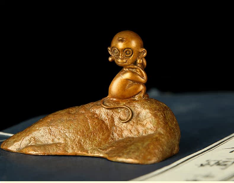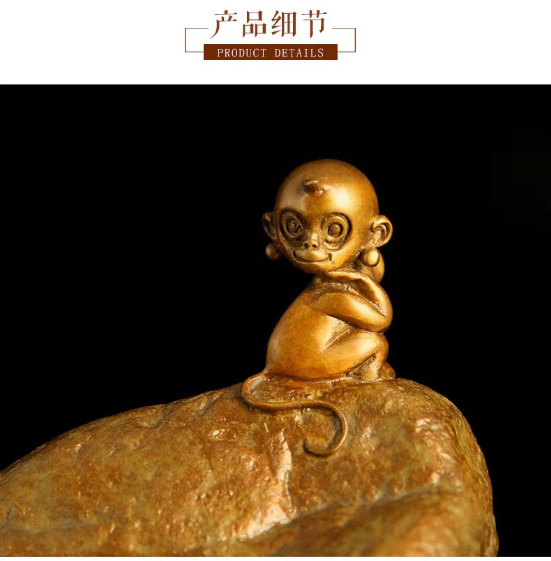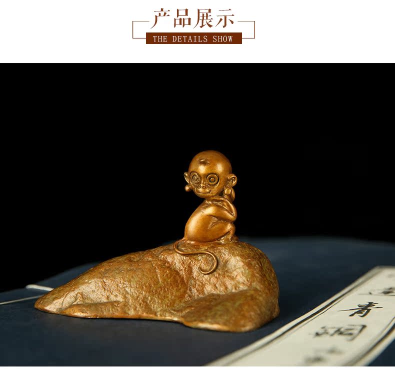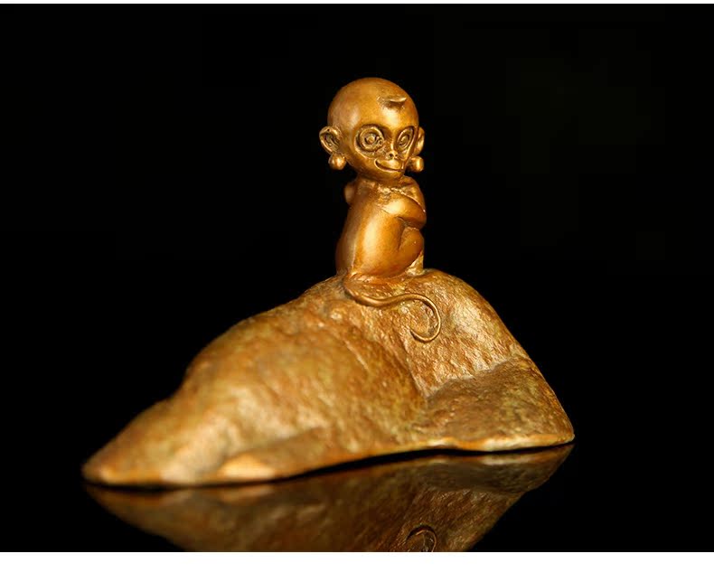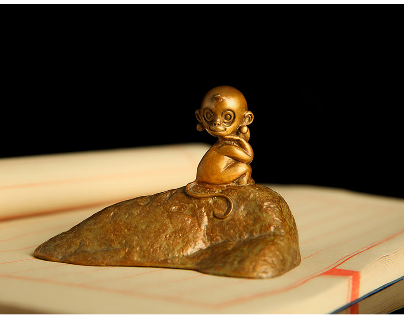 宇达青铜摆件 十二生肖猴《灵猴镇纸》创意装饰 家居工艺摆件 高6.8cm