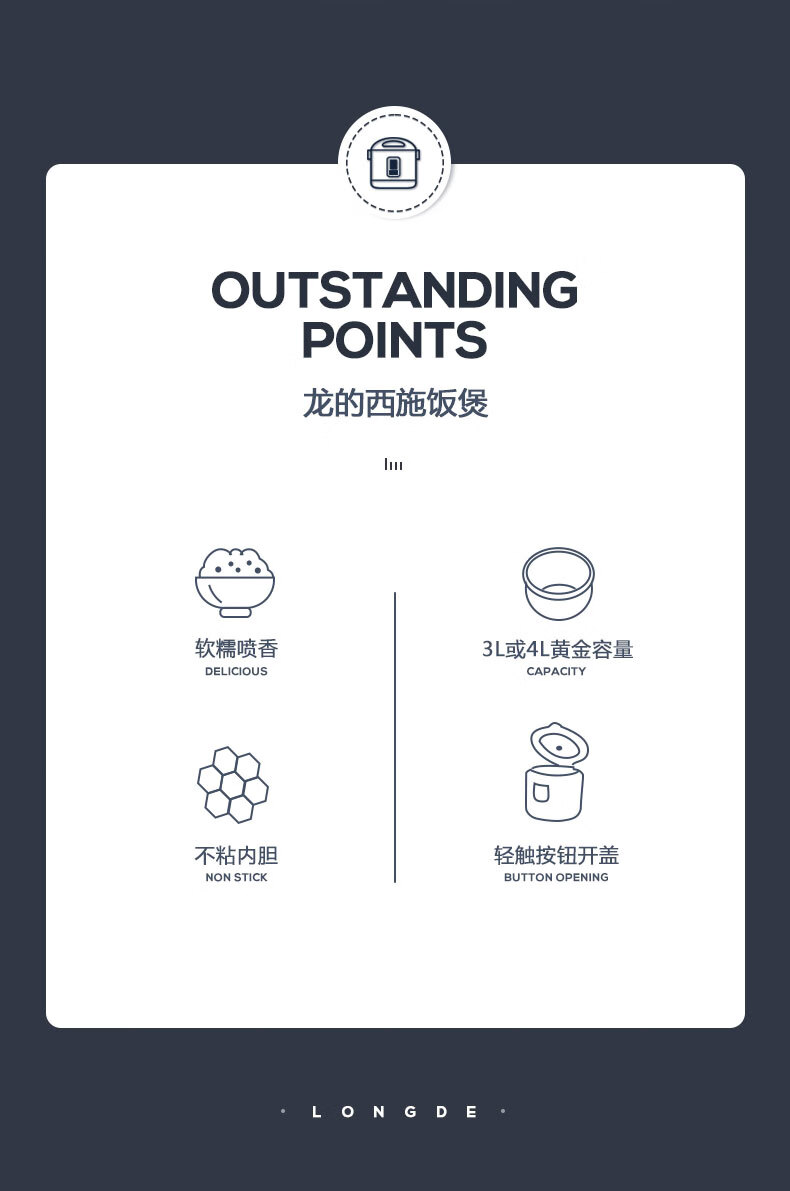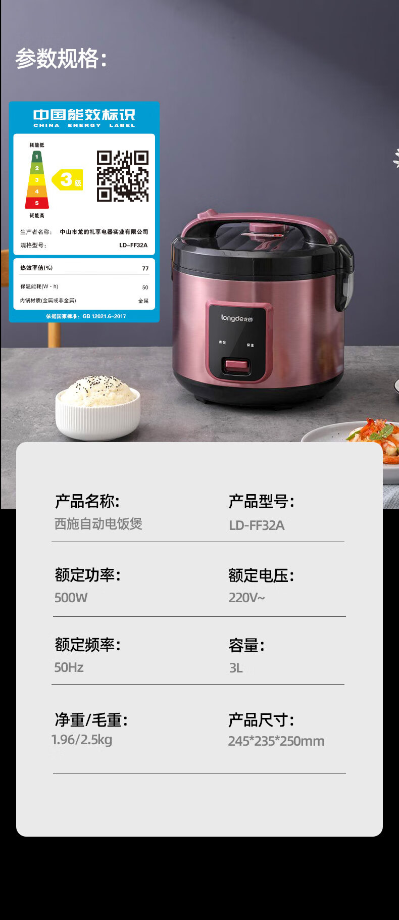 【小家电】龙的(longde)电饭煲 3L/4L大容量电饭锅 家用西施煲 操作简单快速饭煮饭软糯喷香 家用不易粘锅小电饭锅 LD-FF32A(3L) HF