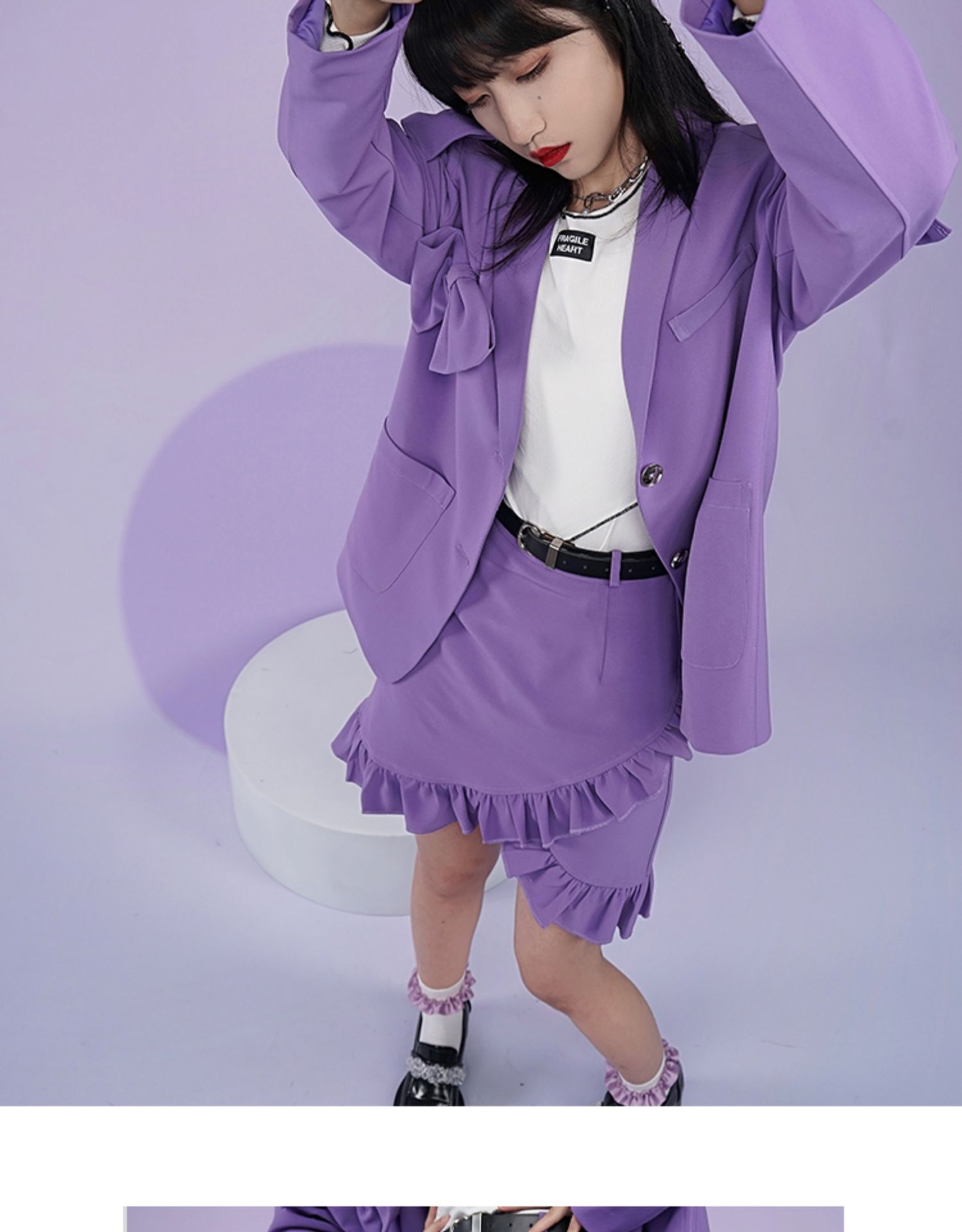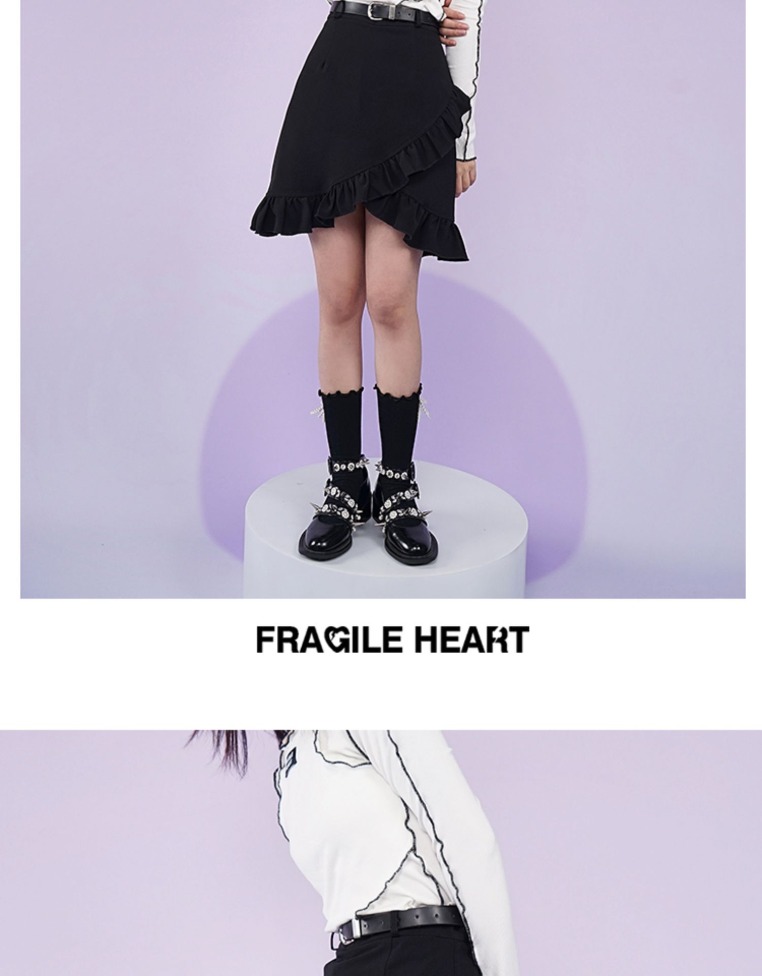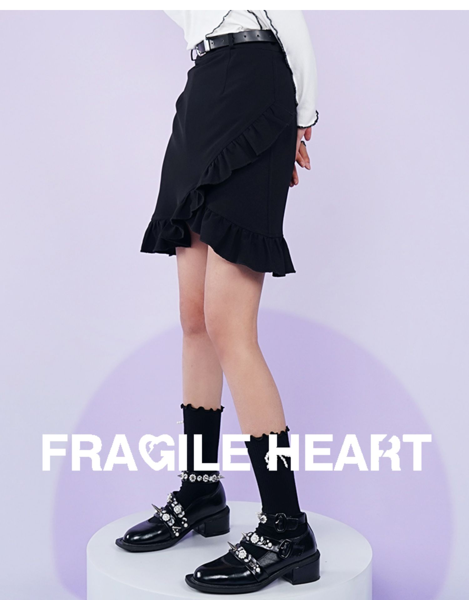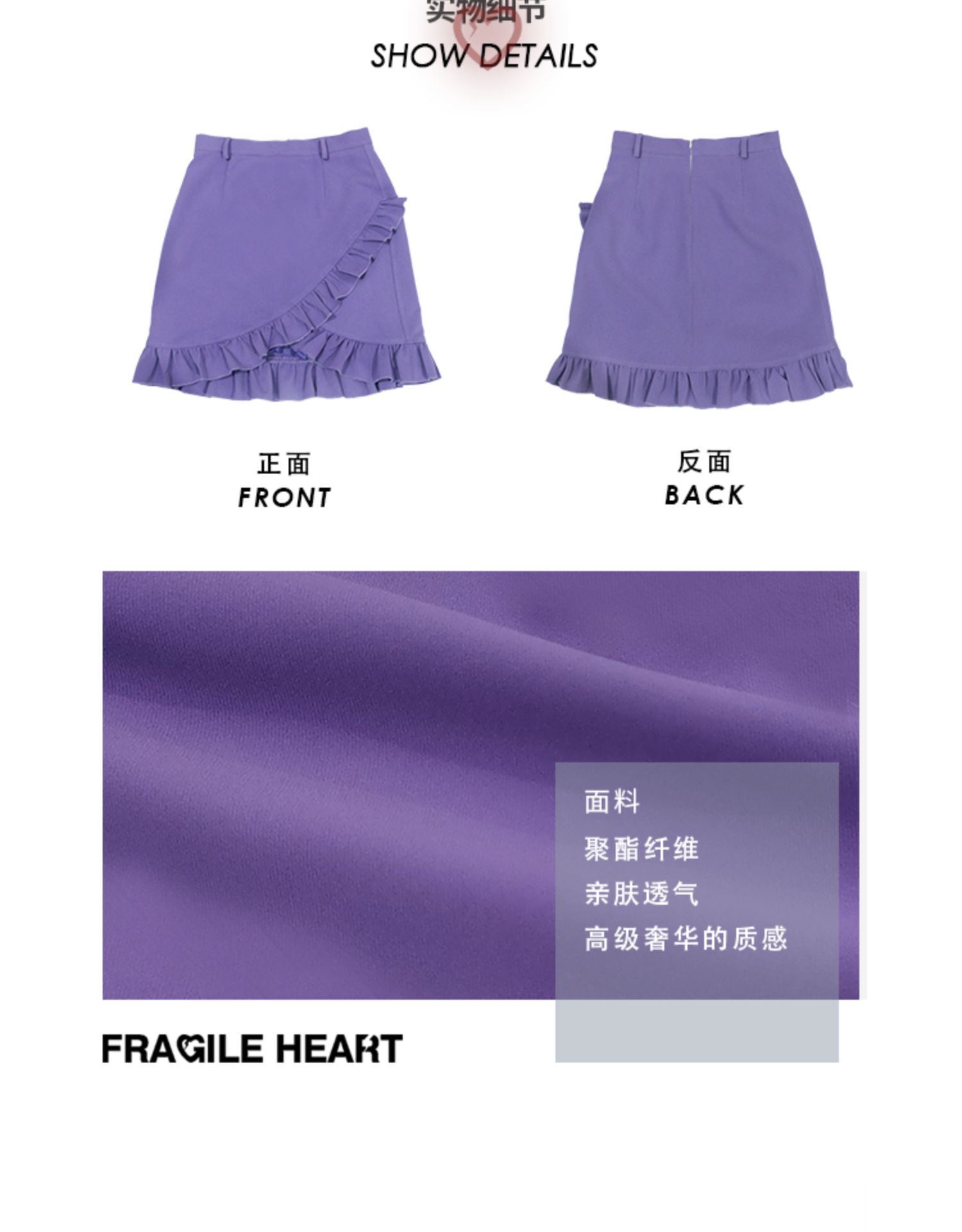 【fragileheart易碎商店春季纯色黑色花边不规则包臀裙紫色短裙女