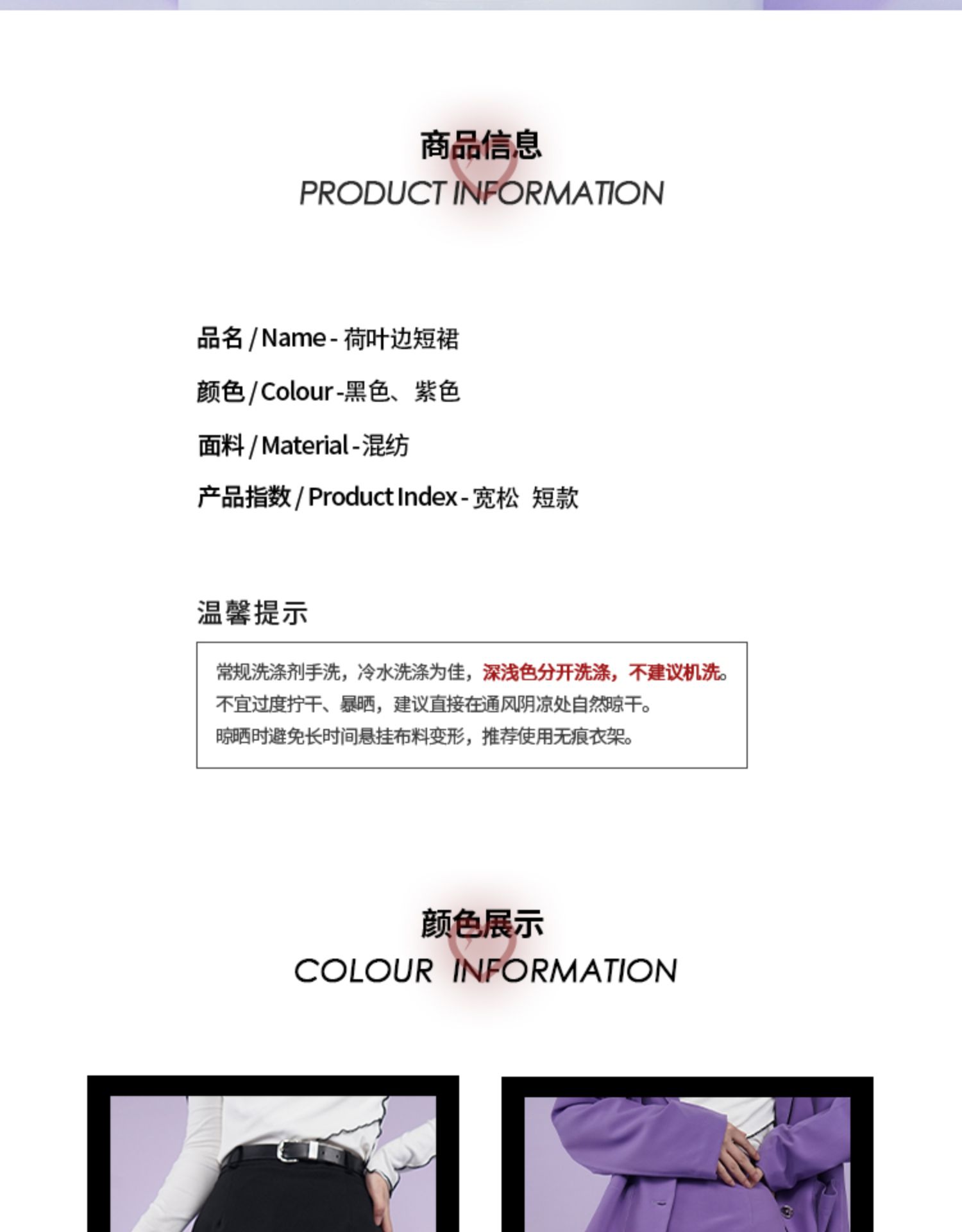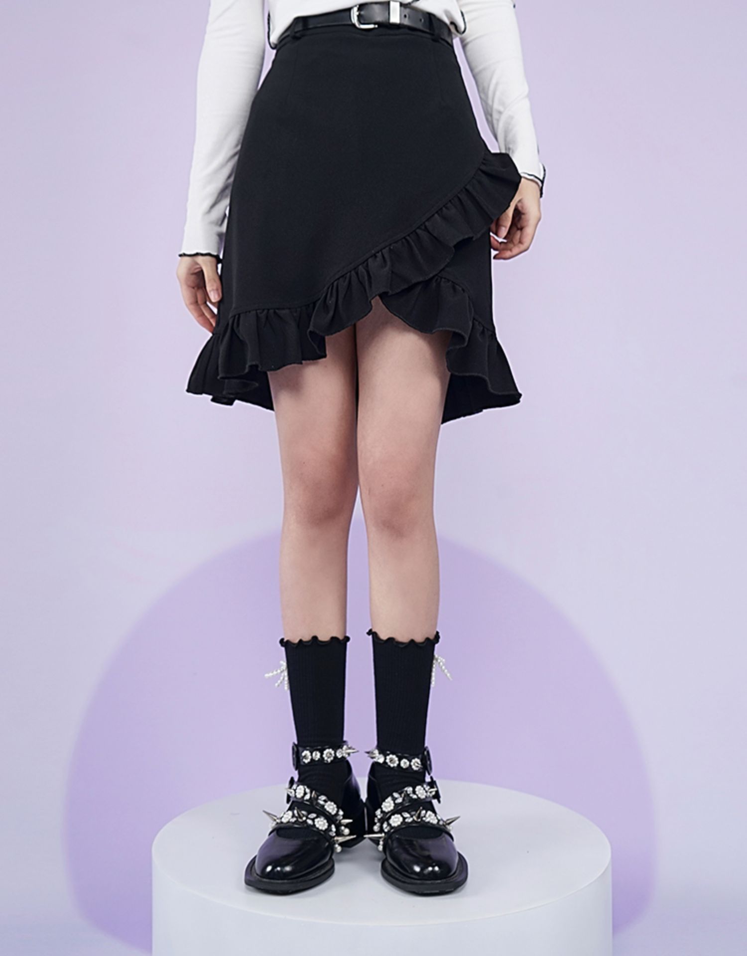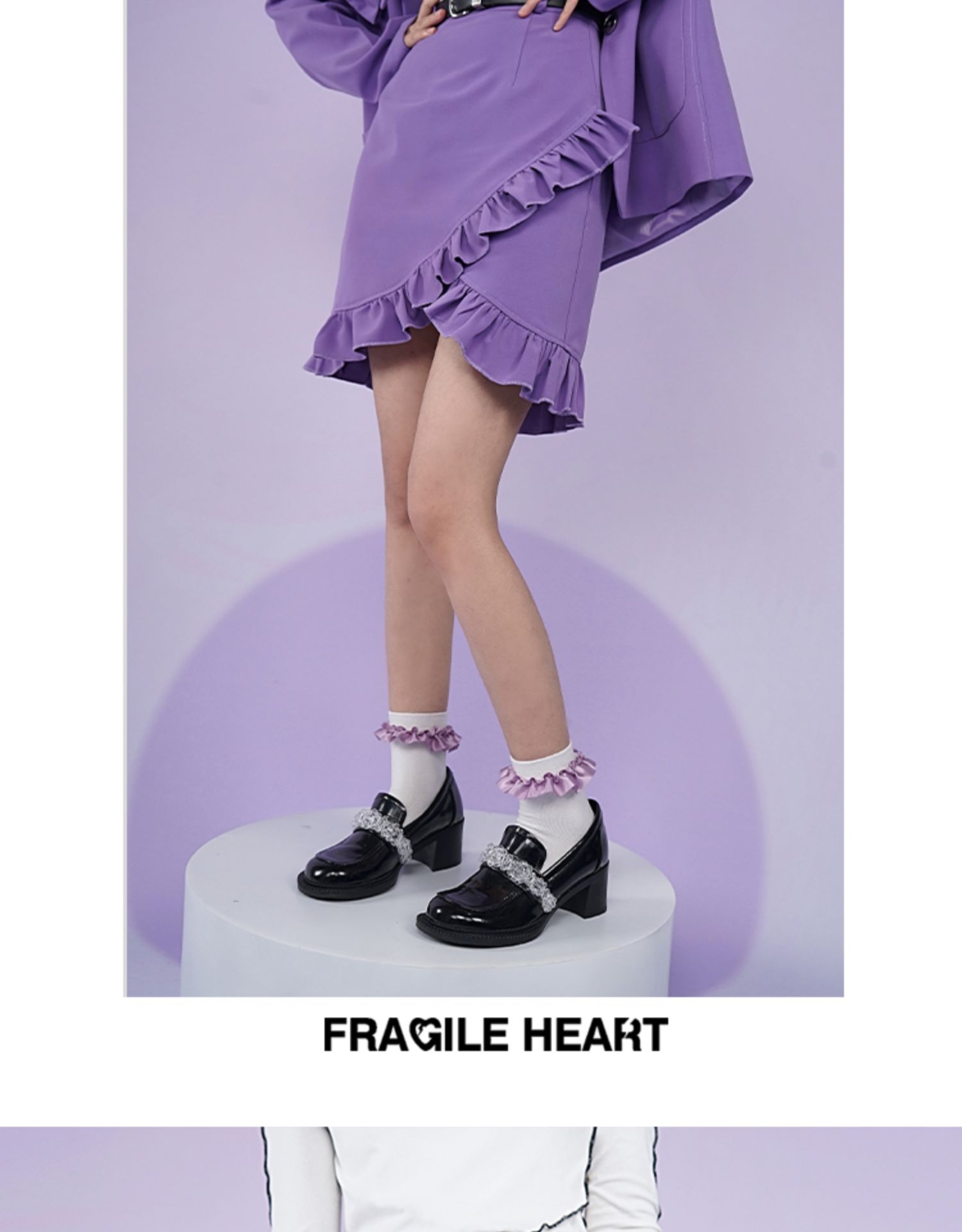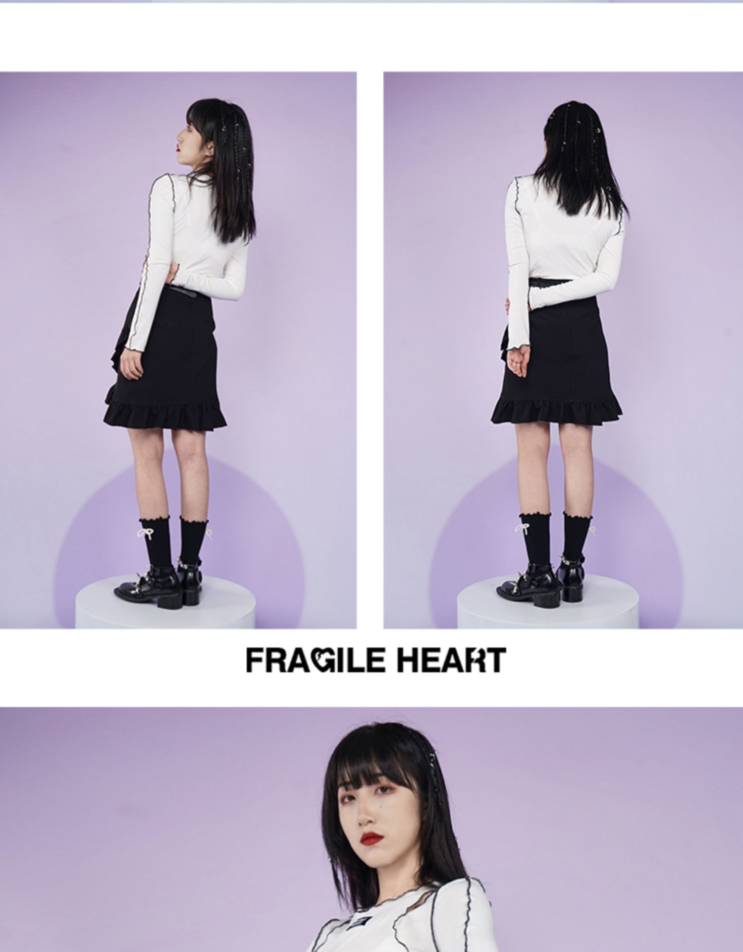 【fragileheart易碎商店春季纯色黑色花边不规则包臀裙紫色短裙女