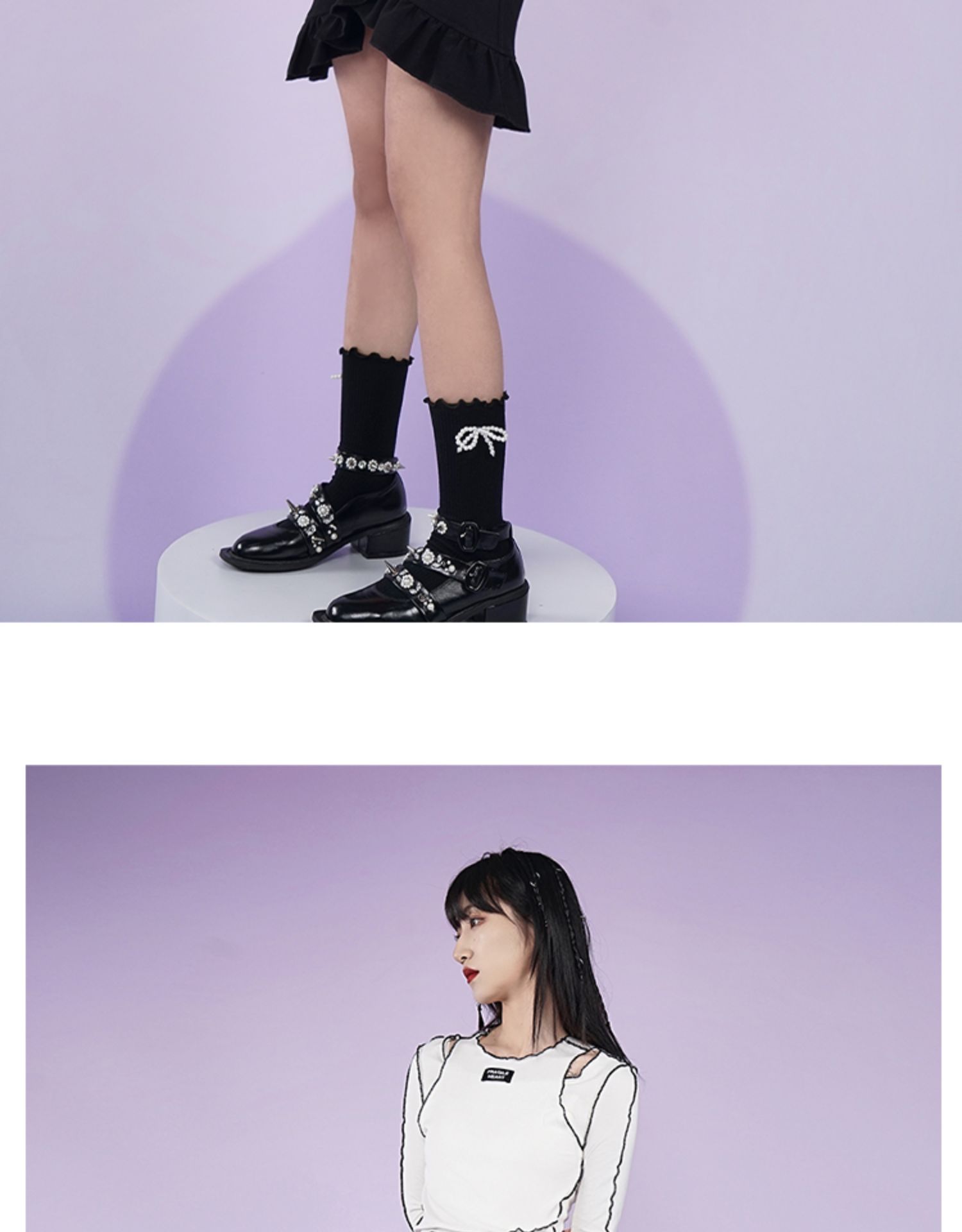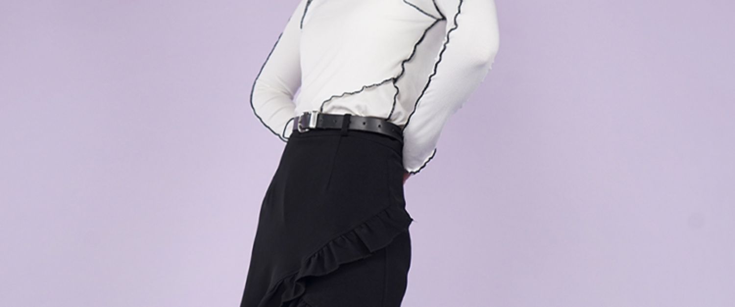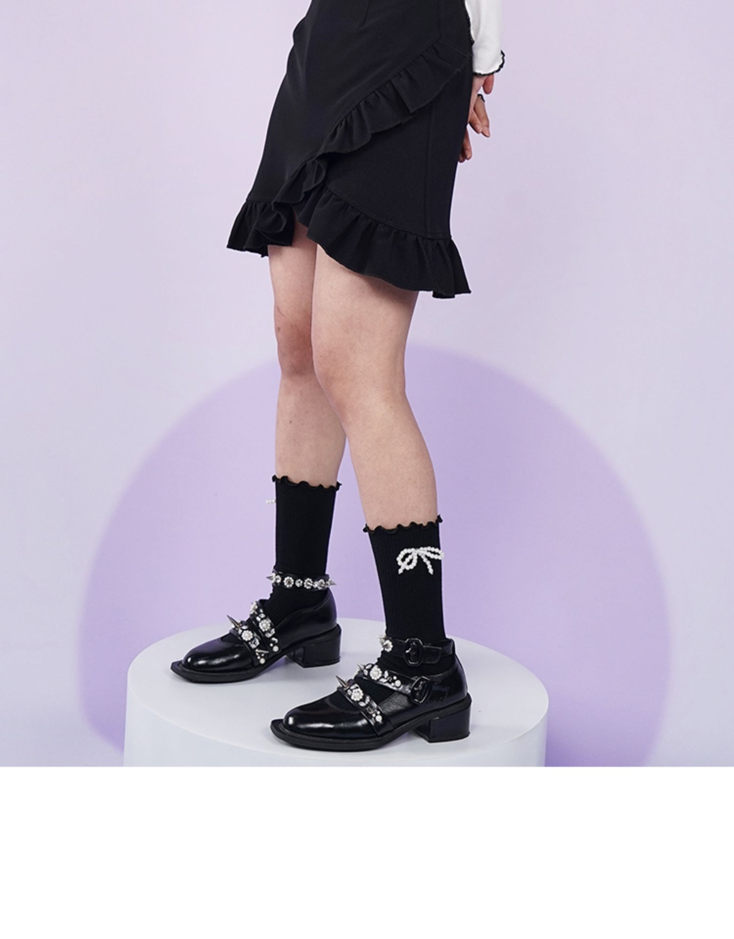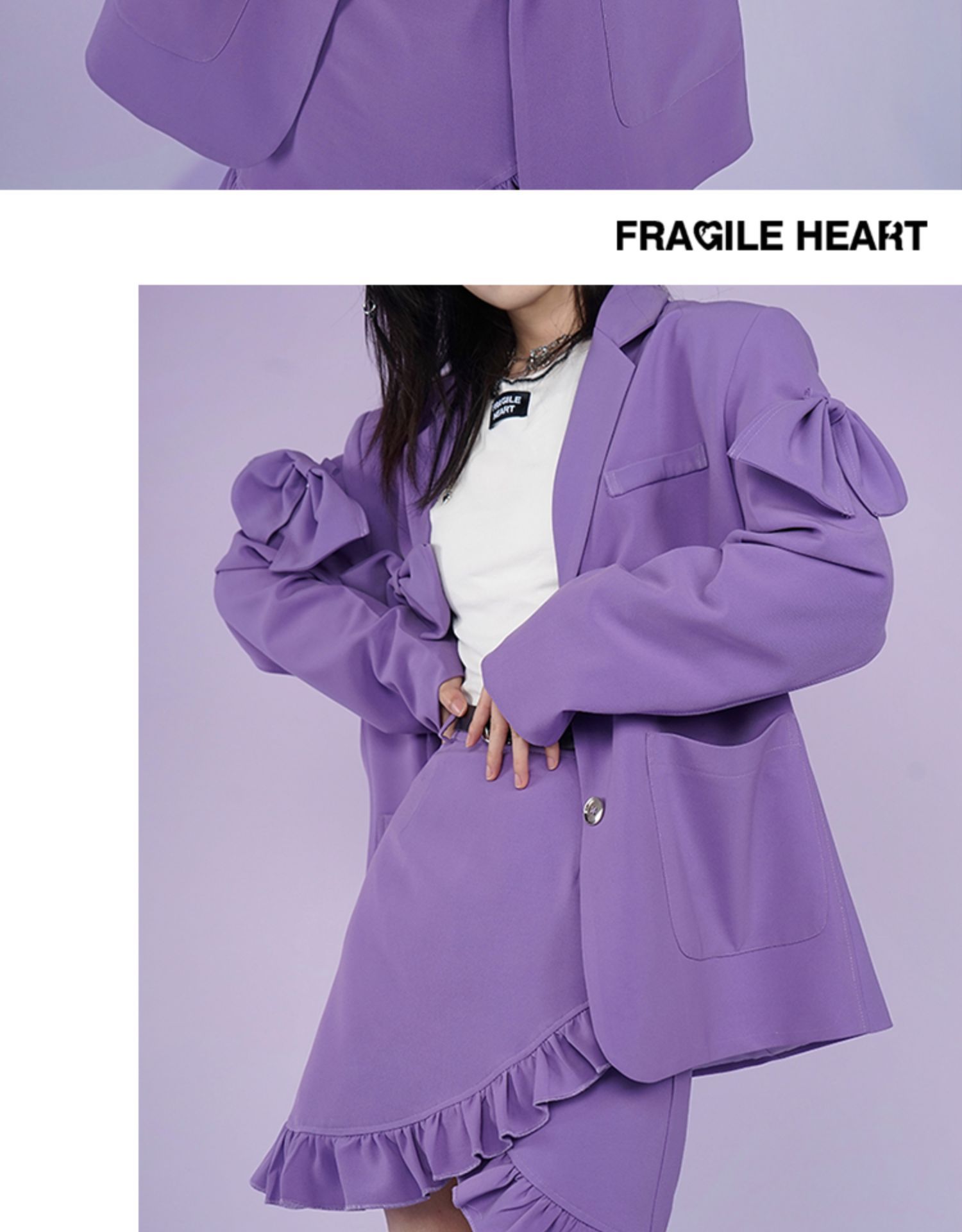 【fragileheart易碎商店春季纯色黑色花边不规则包臀裙紫色短裙女