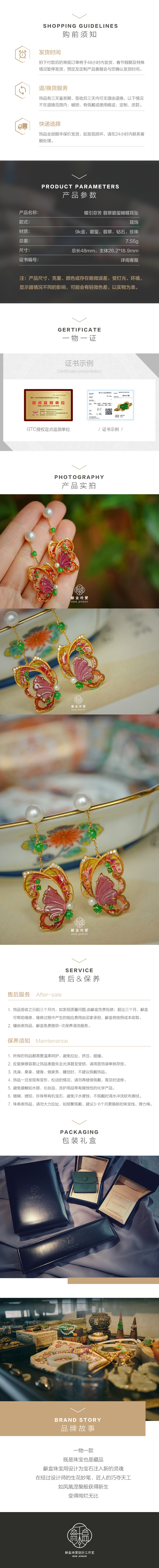 龢盒原创 蝶引芬芳 9k金镶翡翠碧玺蝴蝶耳坠