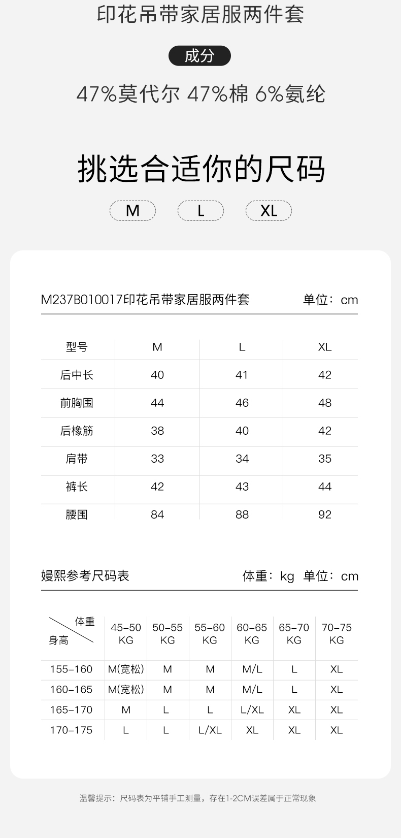 【限时会员价】EMXEE嫚熙印花吊带家居服两件套