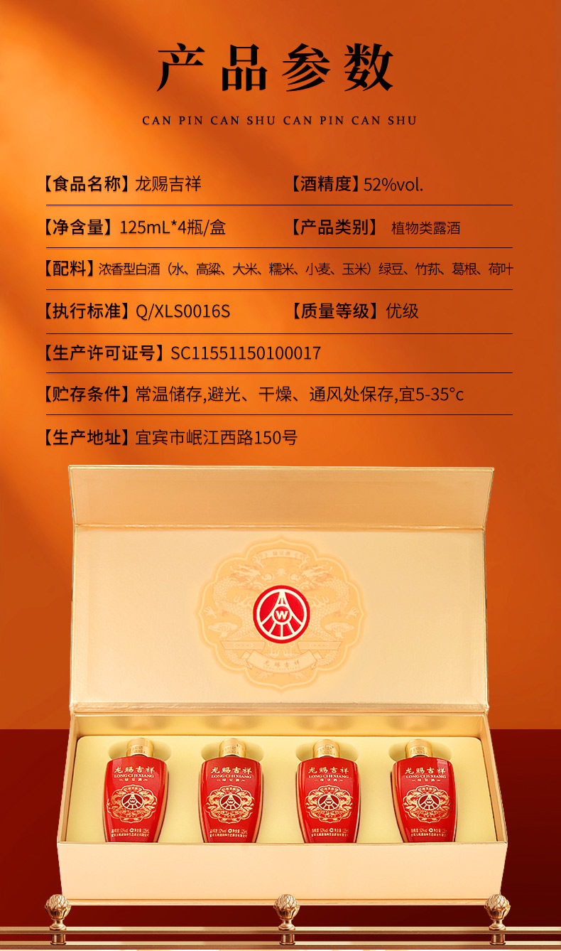 【五粮液·龙赐吉祥】 热卖中!! 四瓶装礼盒 52°浓香型白酒 125ml*4瓶/盒 一瓶一码,可扫码查真伪