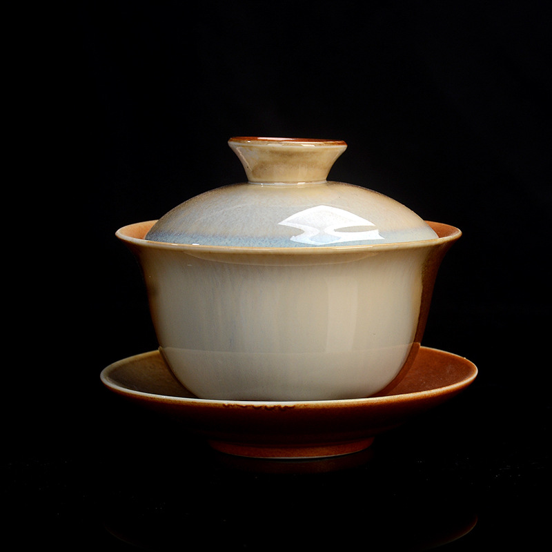 「轻奢复古风!三才碗」陶瓷功夫茶具 盖碗窑变三才碗单个柴烧家用盖碗柴窑茶杯餐饮用具