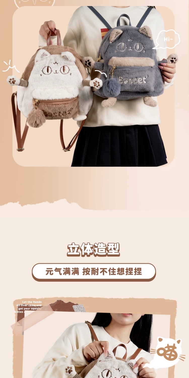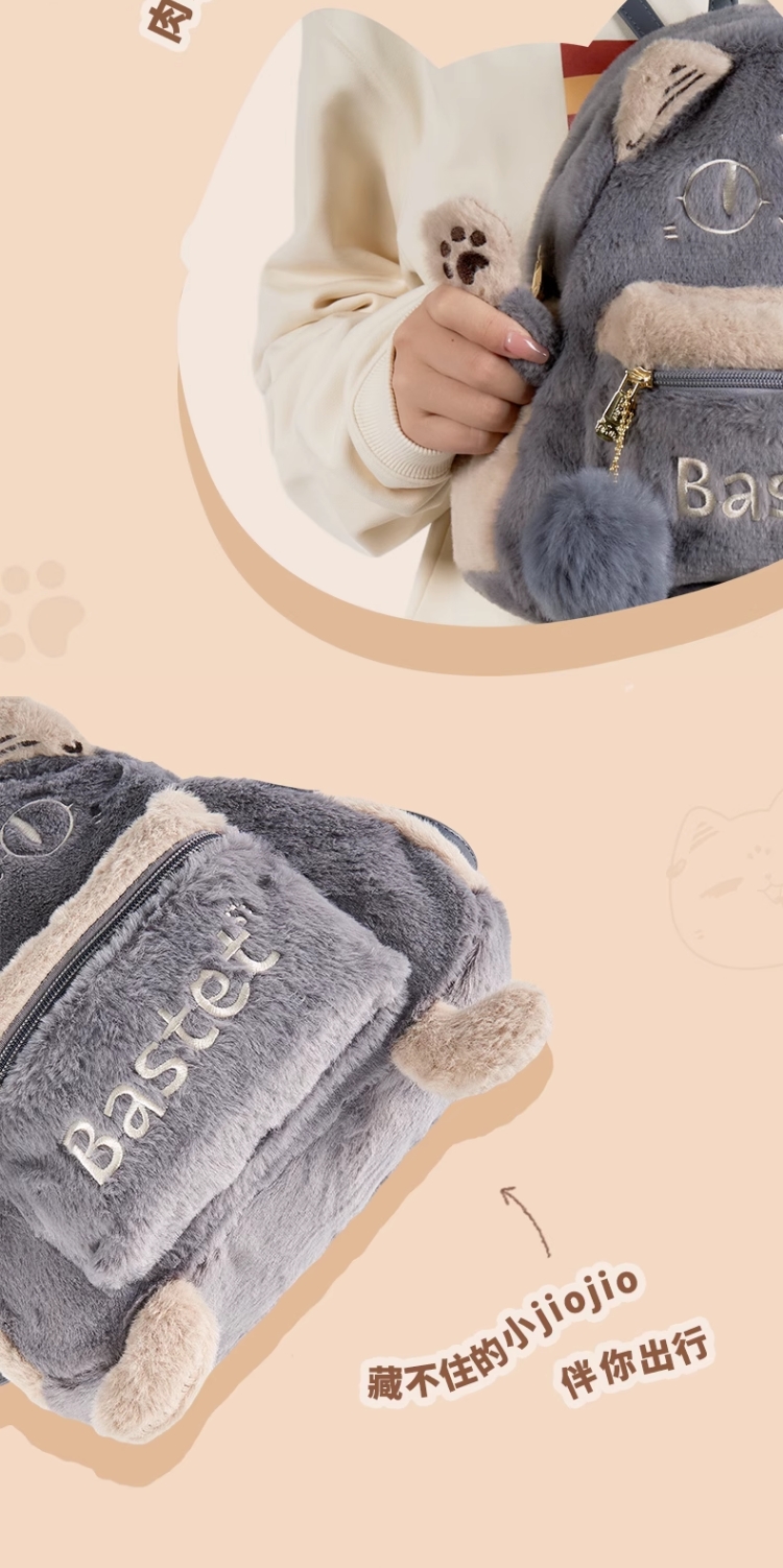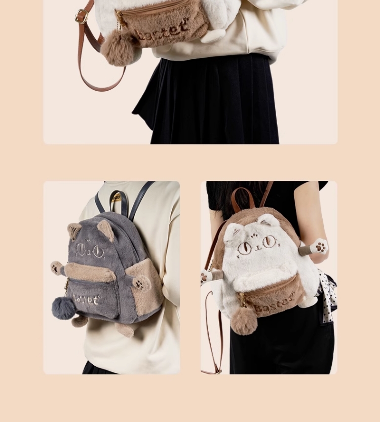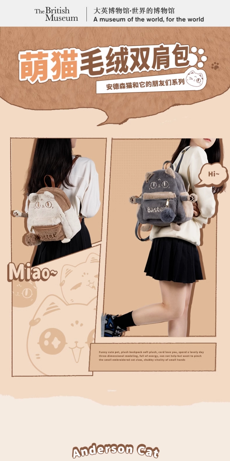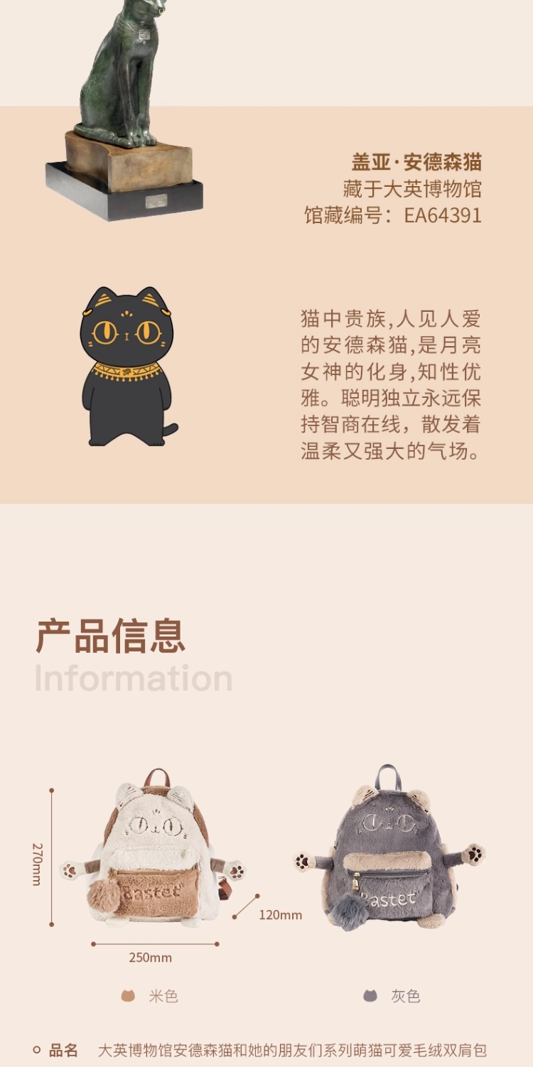 大英博物馆 盖亚·安德森猫和她的朋友们系列 萌猫可爱毛绒双肩包 灰色//驼色