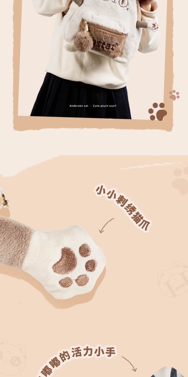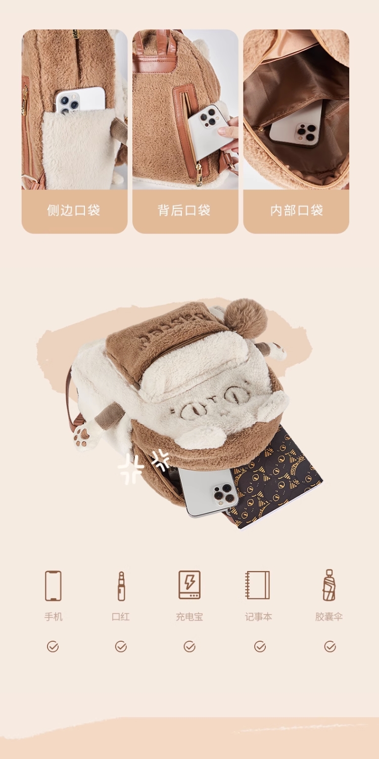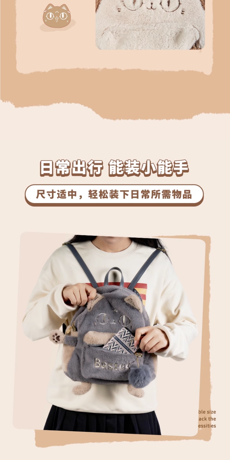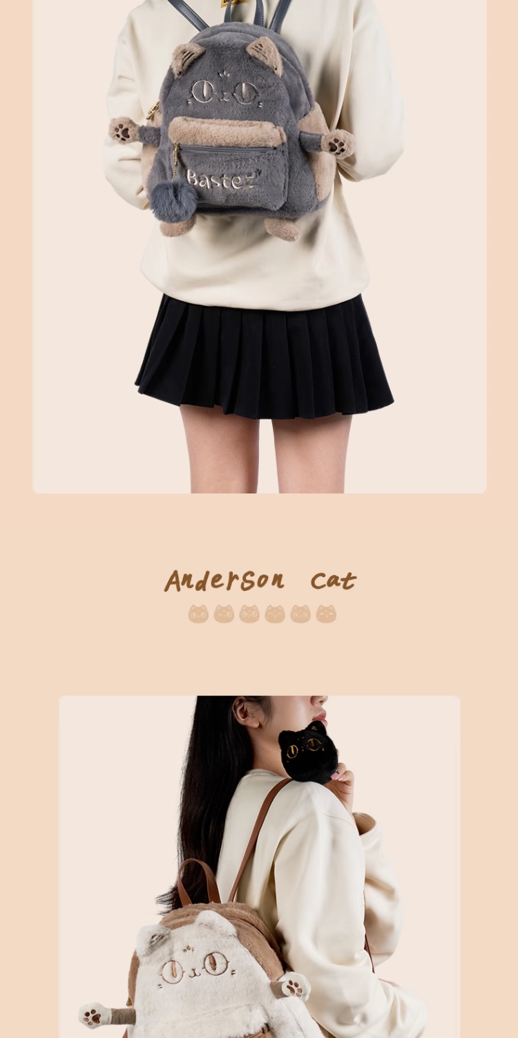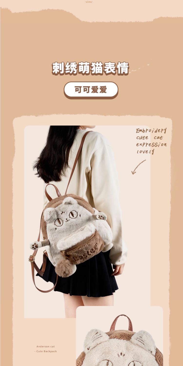 大英博物馆 盖亚·安德森猫和她的朋友们系列 萌猫可爱毛绒双肩包 灰色//驼色
