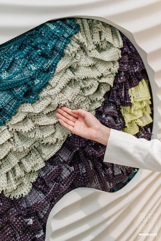 店内的设计灵感来自模拟头发飘然的墙面,