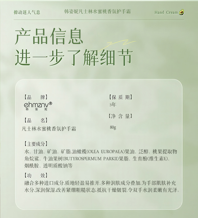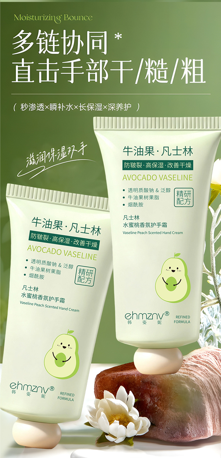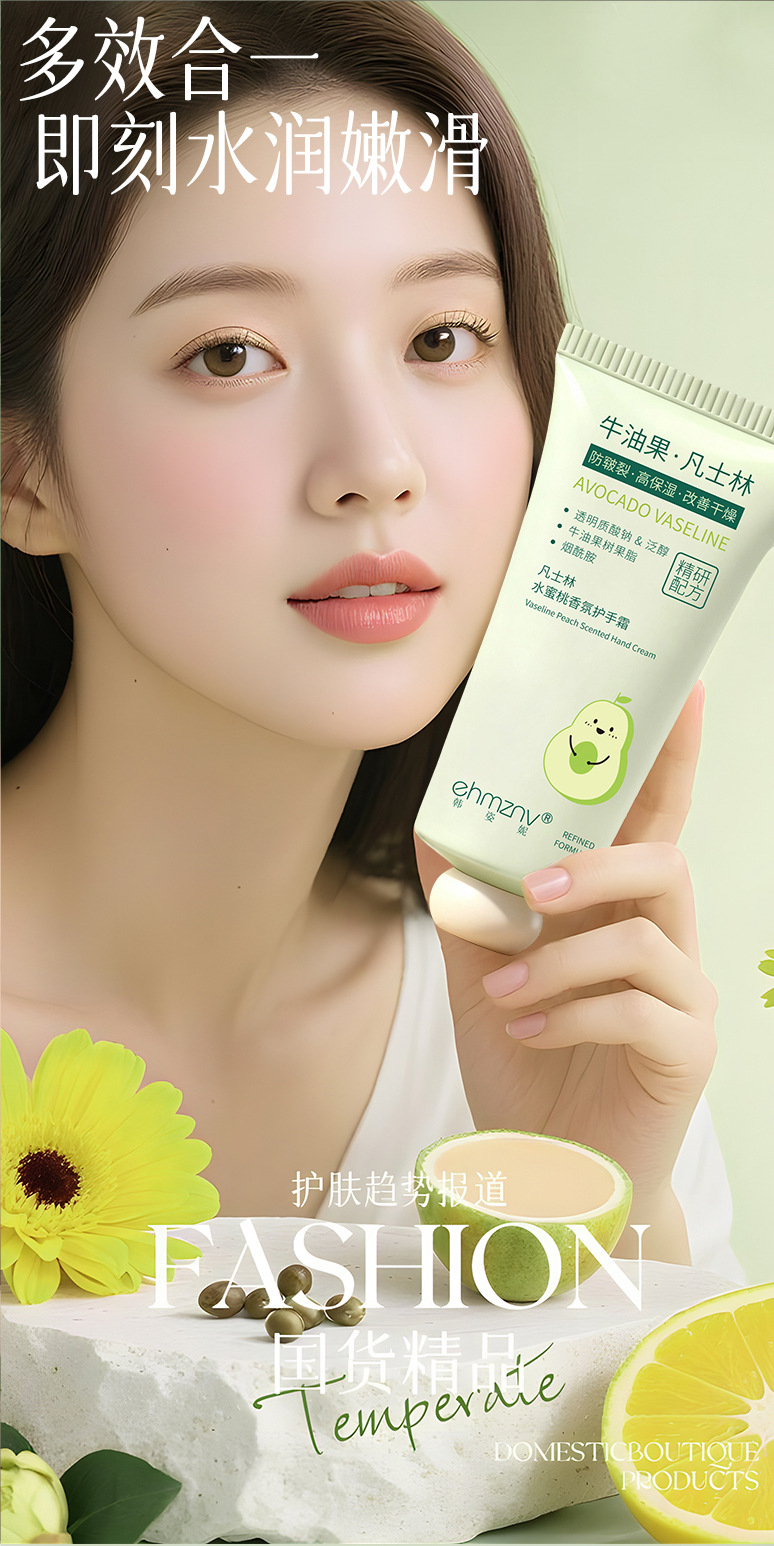 「9.9到手3支!温润一冬」牛油果凡士林护手霜80g秋冬补水保湿蜜桃滋润手霜手部护理男女用