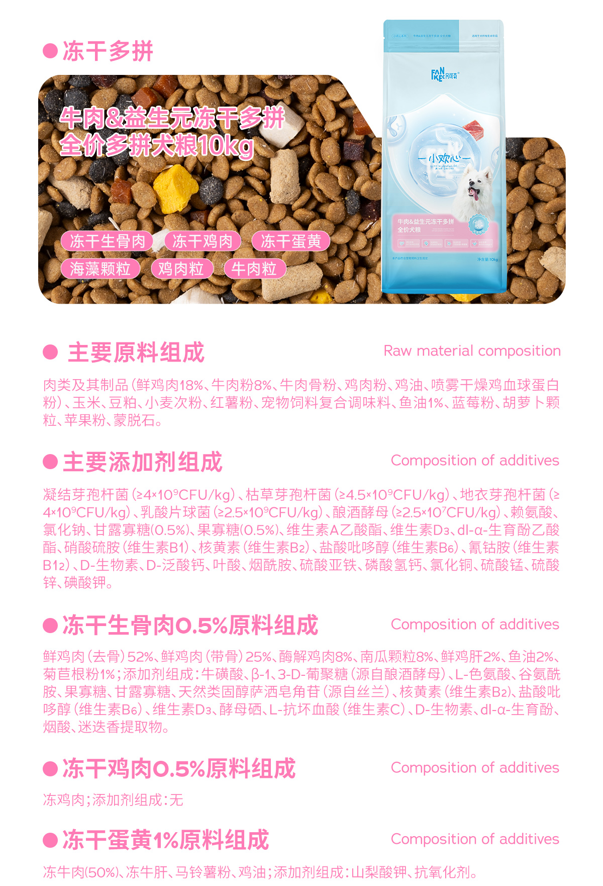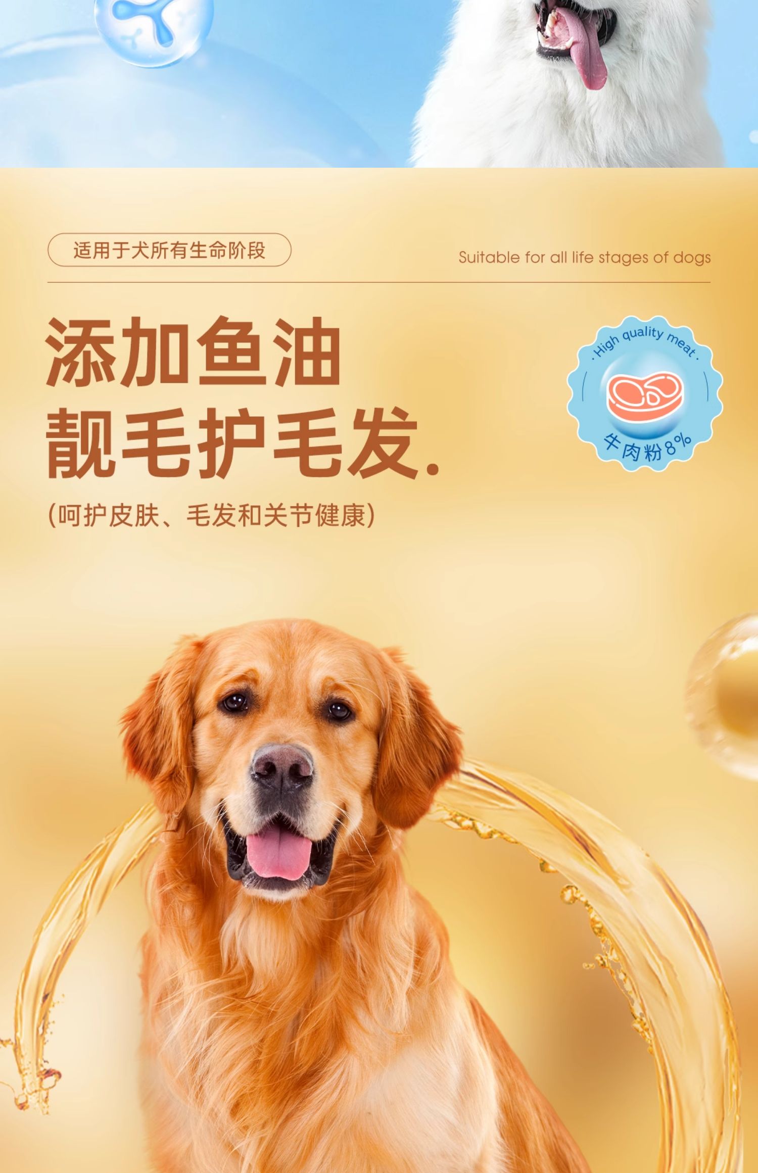 凡可奇 牛肉益生元狗粮10kg 成犬幼犬小型犬通用型中大型犬泰迪金毛萨摩耶正品