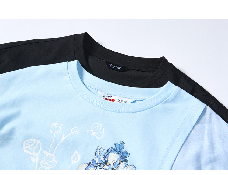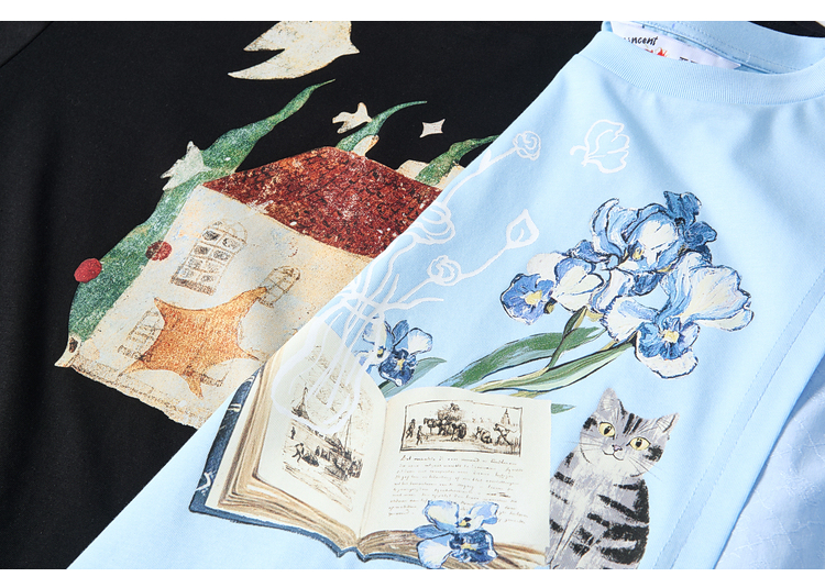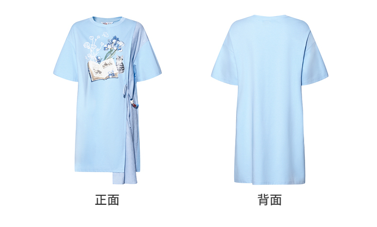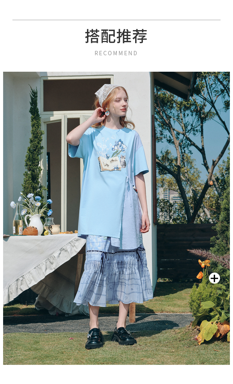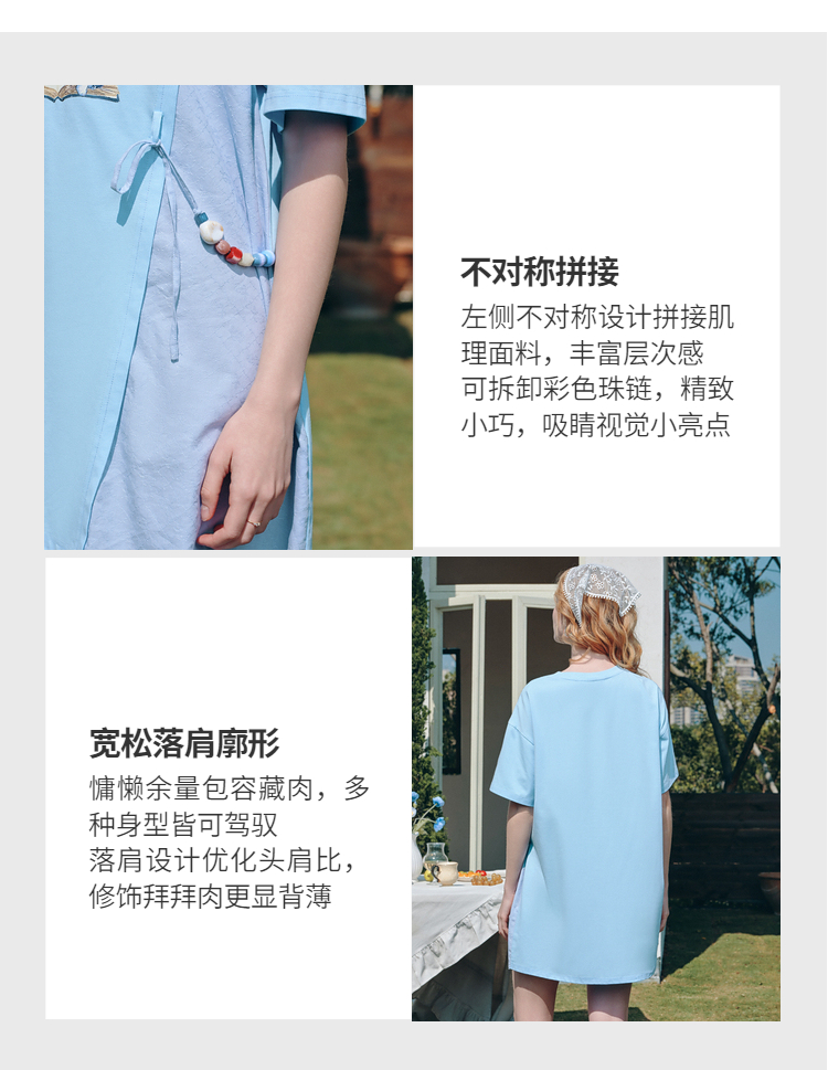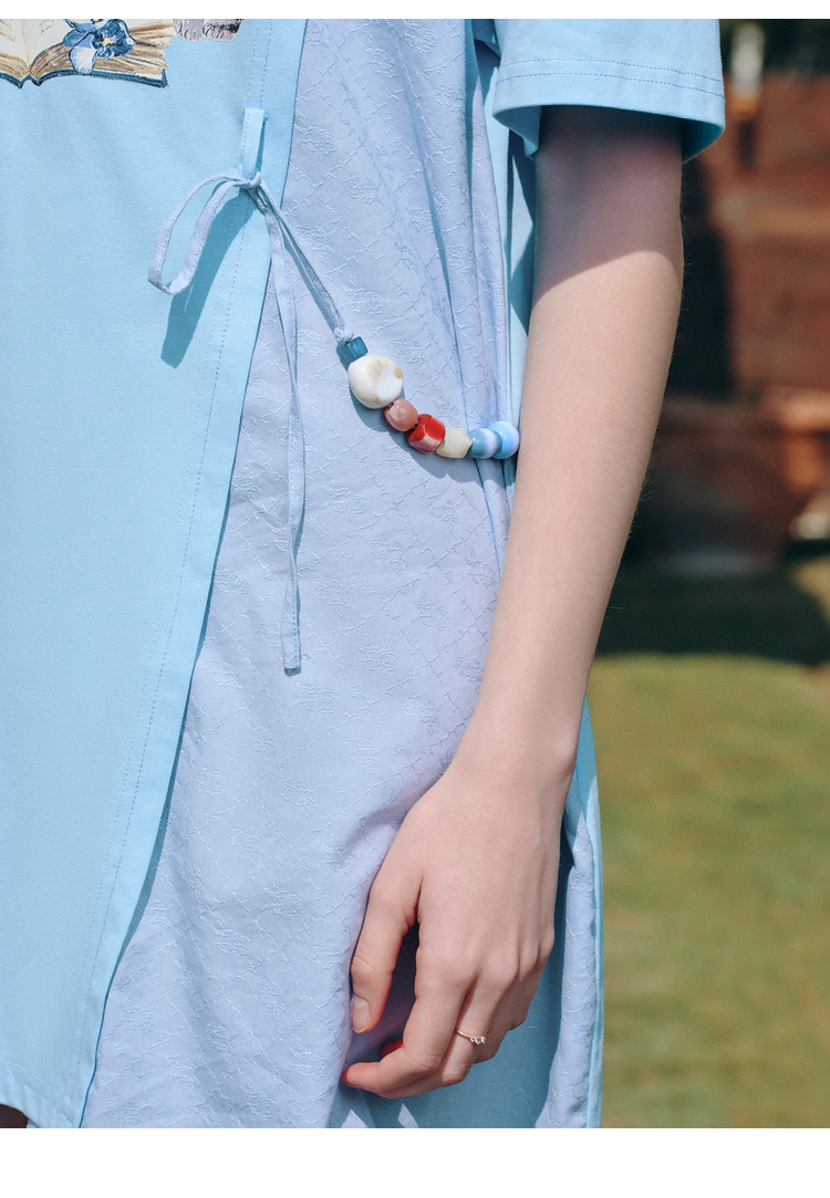 两三事梵高文艺星垂素野2026夏季新款印花拼布不对称t恤裙连衣裙