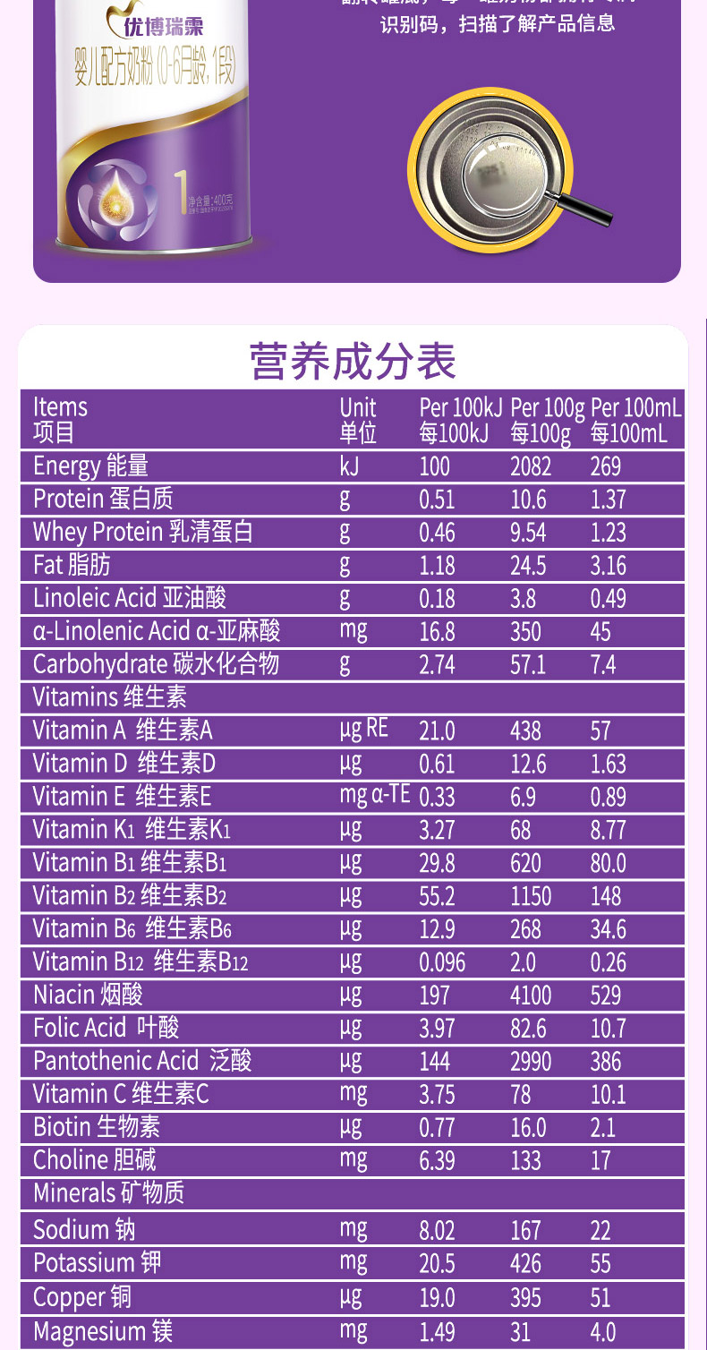 【顺丰包邮】优博瑞霂1段400g罐【厂家直发 新鲜直达】