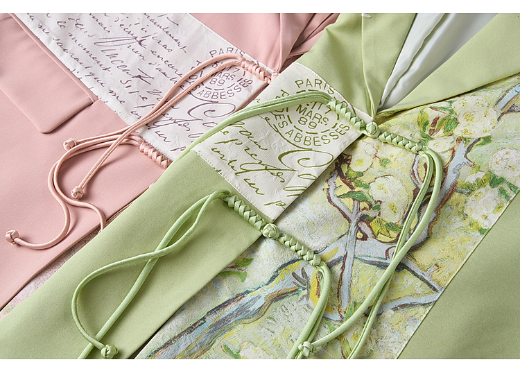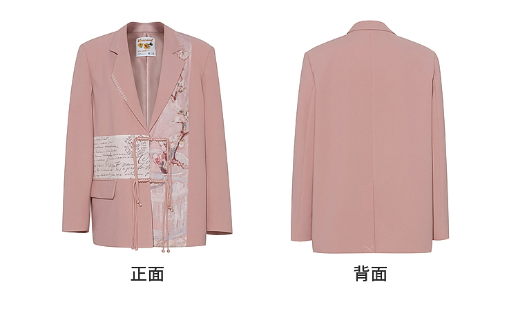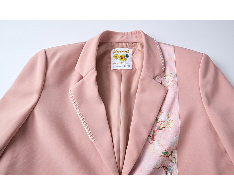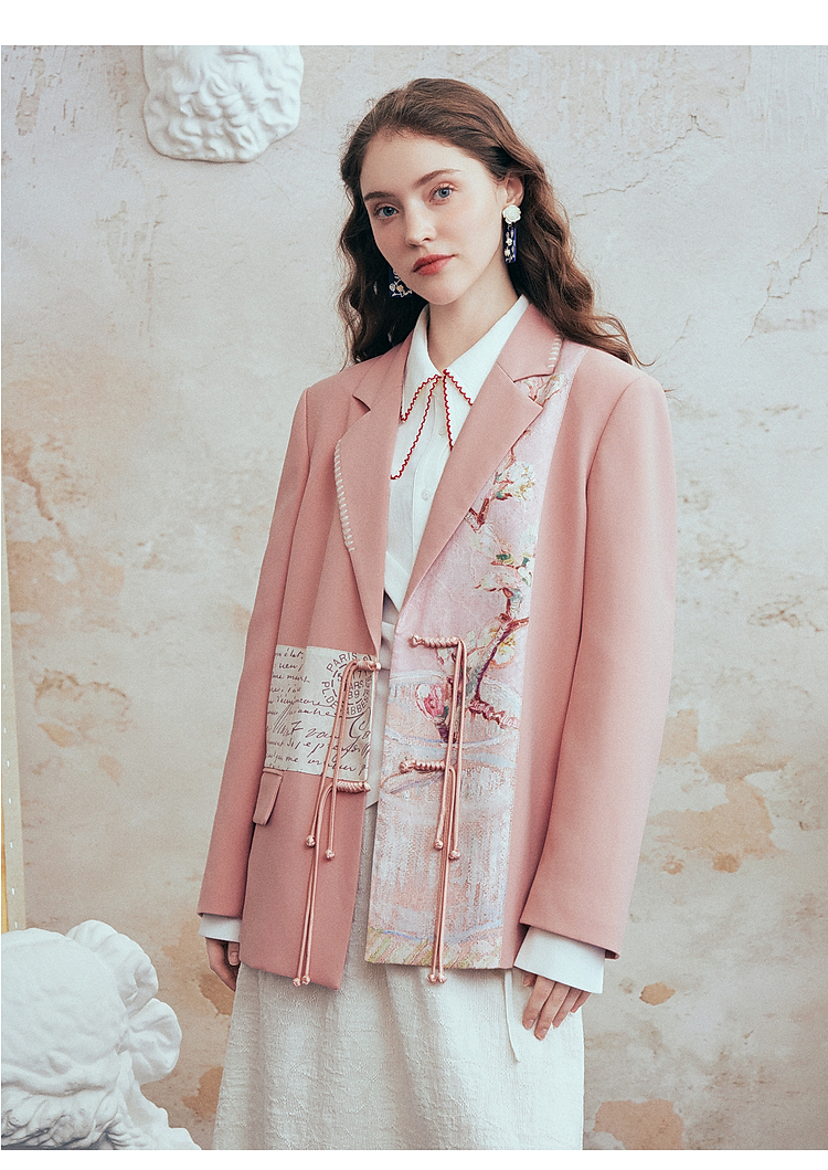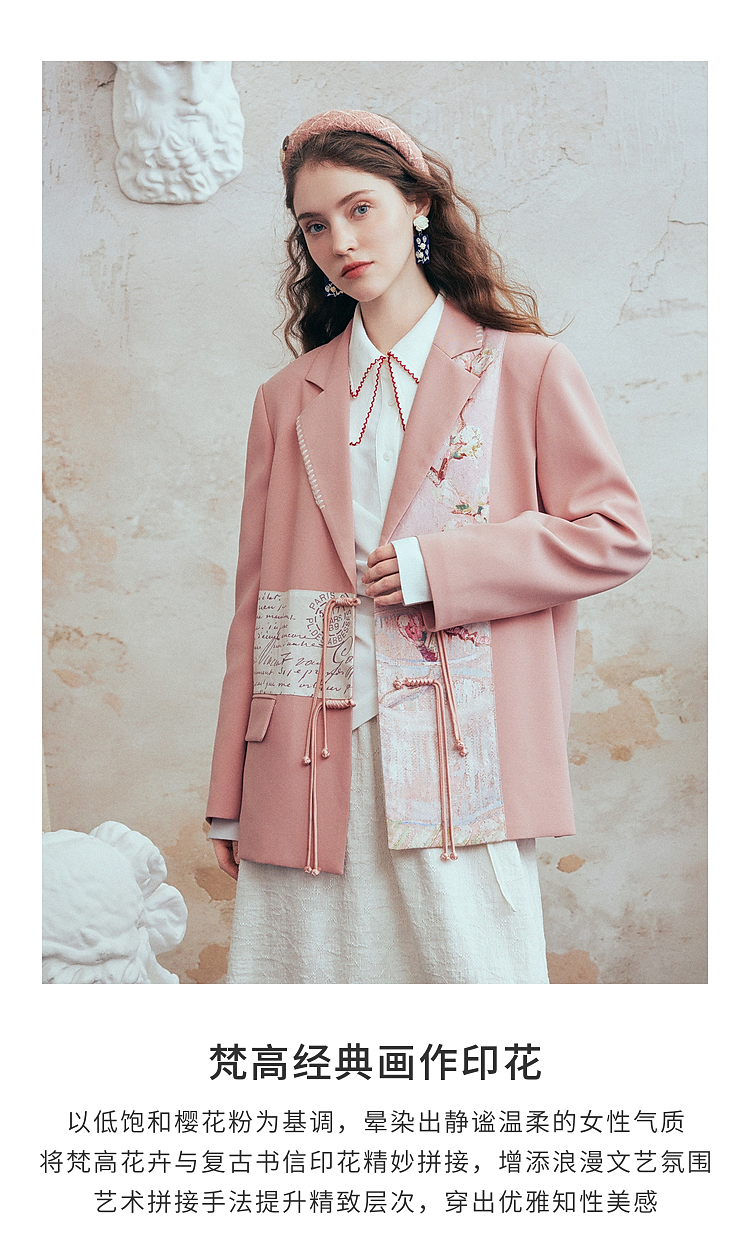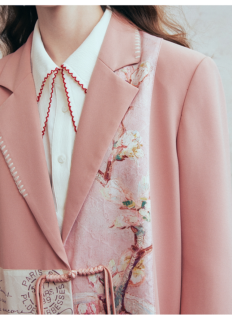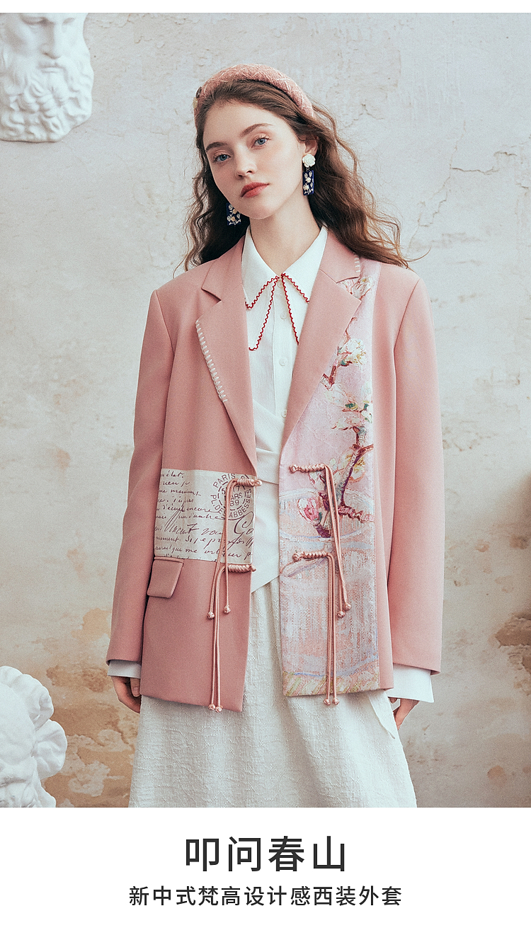 两三事梵高文艺 叩问春山 2026春季新款印花布拼接盘扣西装外套女