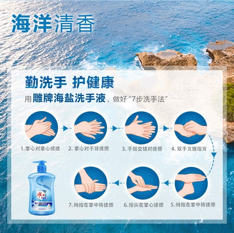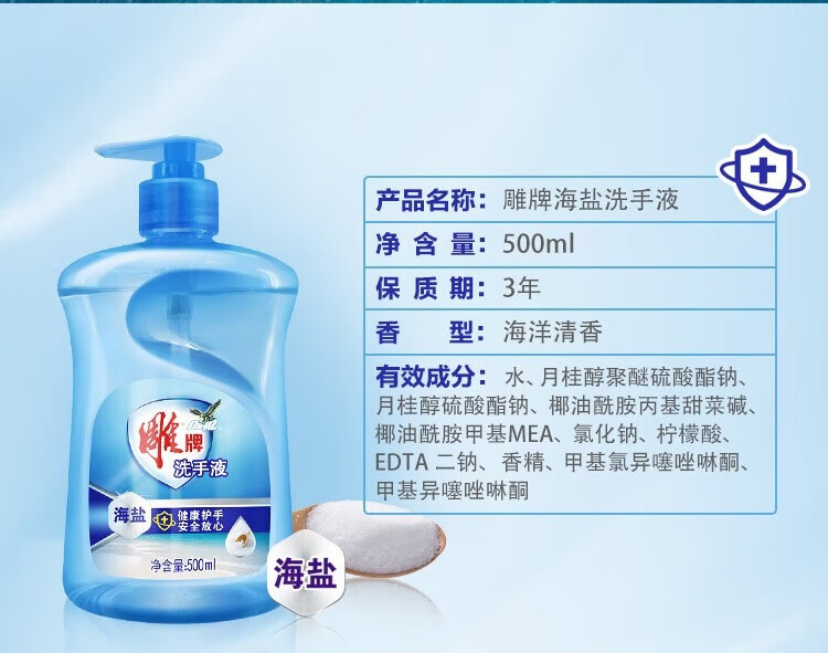雕牌 海盐洗手液500ml清香家用便携健康护手 500ml*2瓶