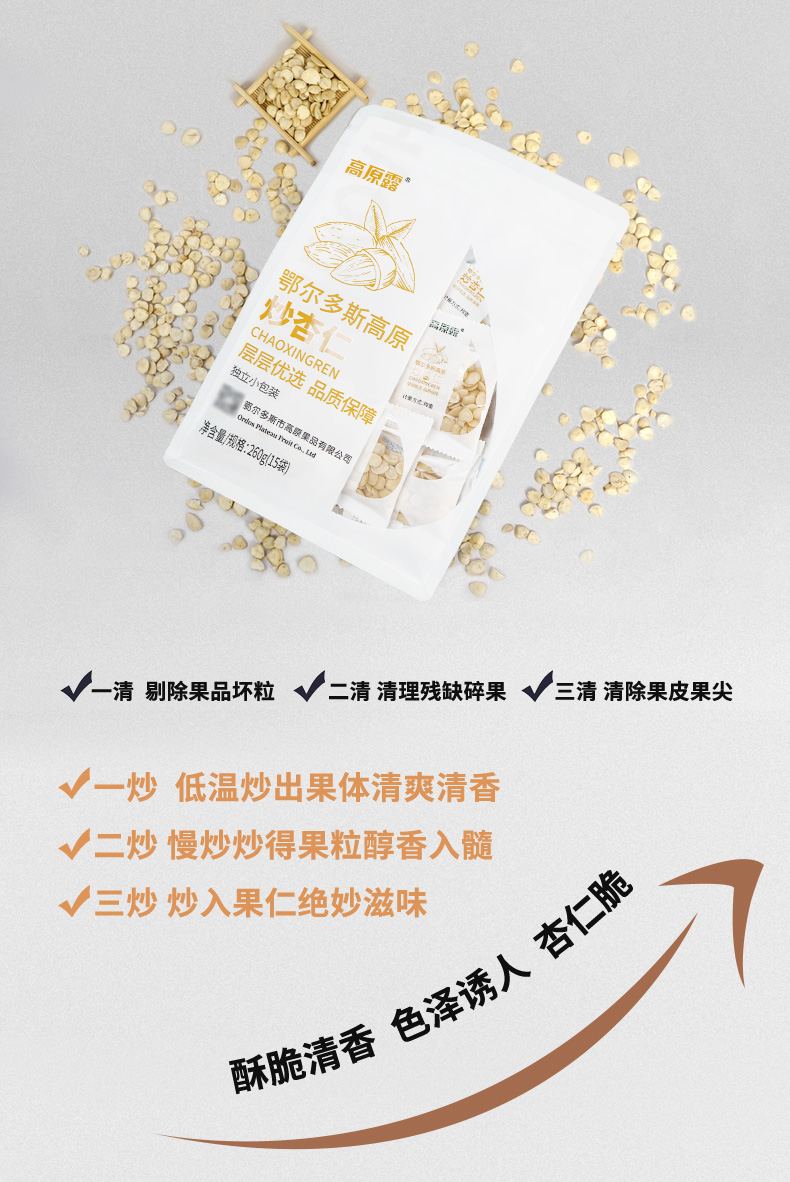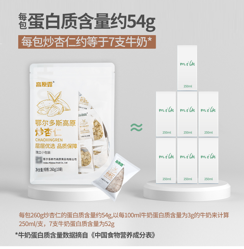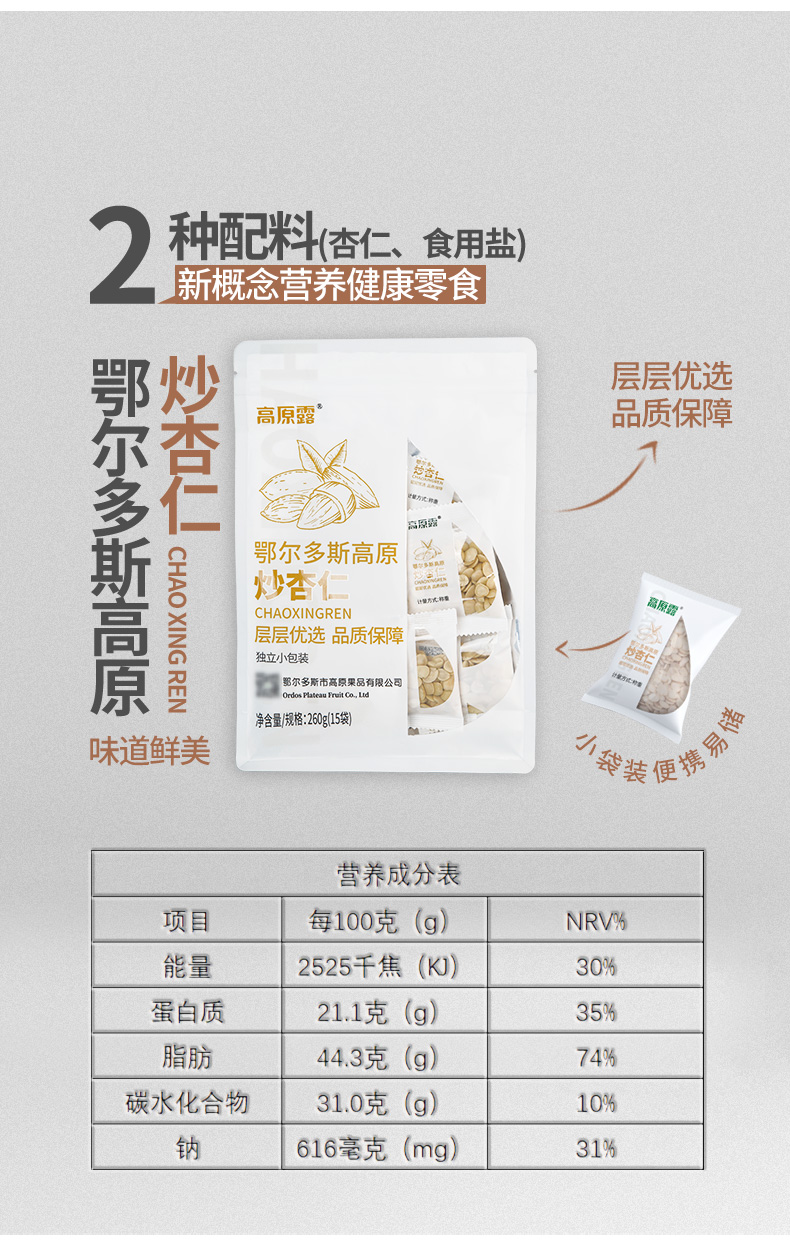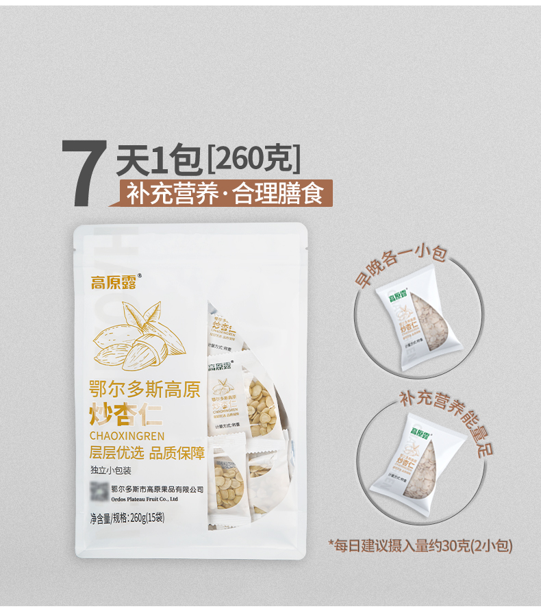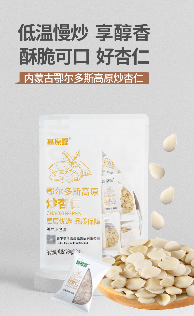 【自营】内蒙古高原炒杏仁 260g/袋 NM
