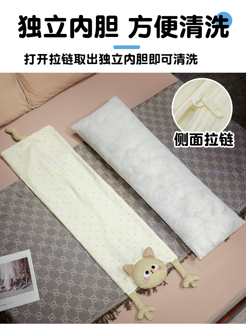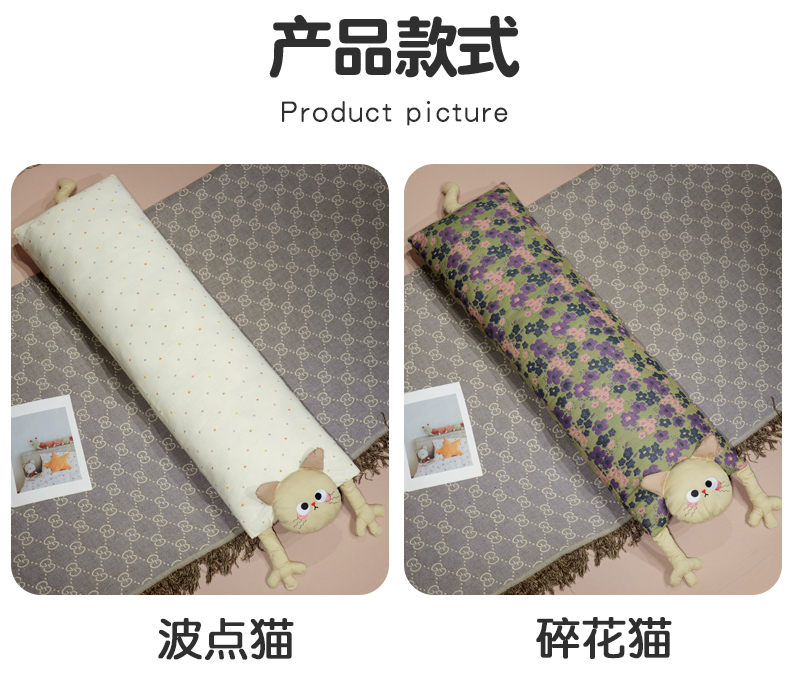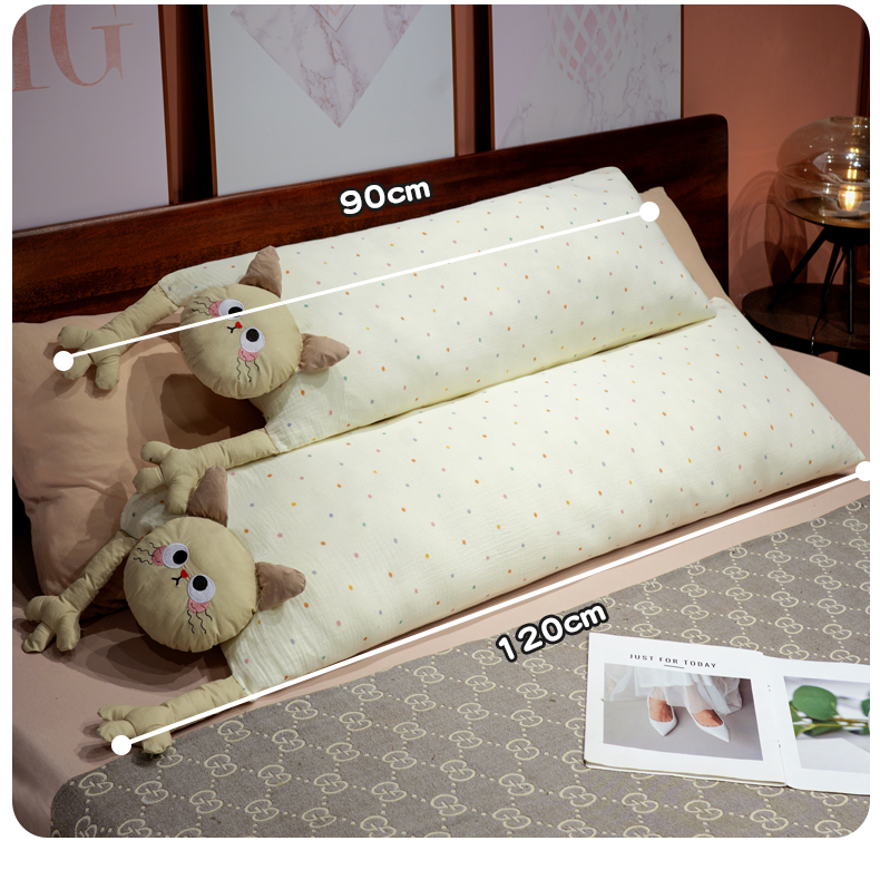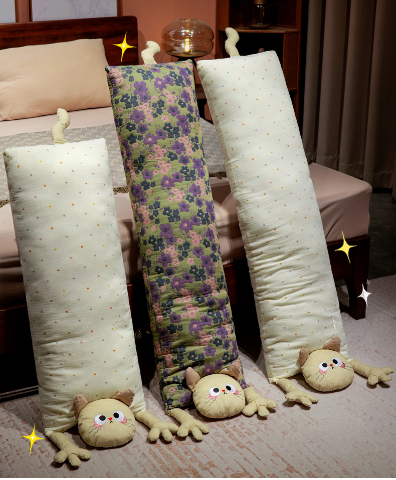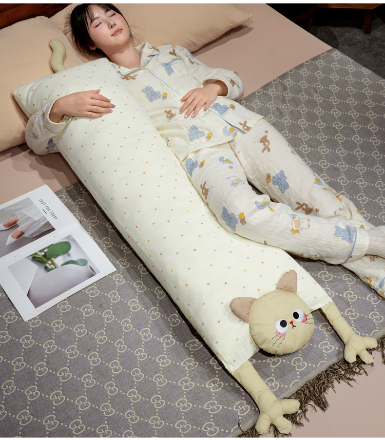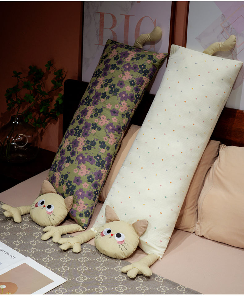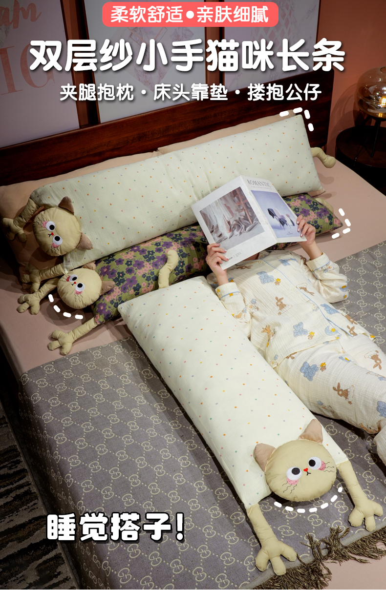 自然醒双层纱举手猫咪长条抱枕QYL