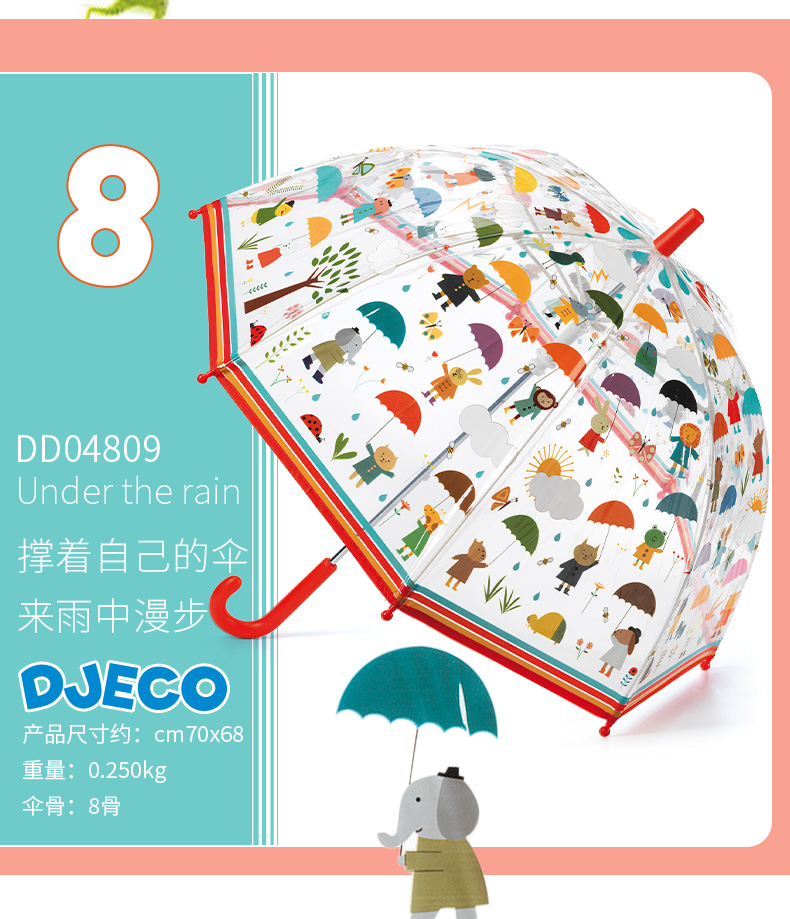 法国DJECO 小童 幼童专属透明花伞/变色伞,亲子成人伞(中大童伞)(TG-CXS)