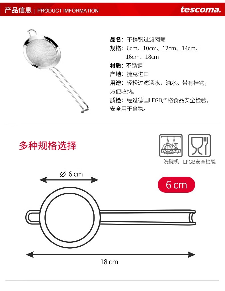 Tescoma GrandCHEF系列过滤进口不锈钢网筛10cm