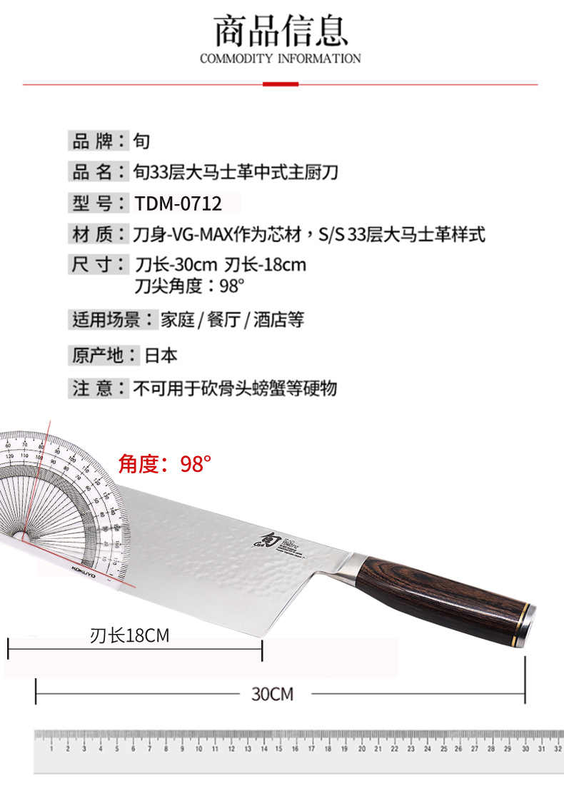 日本贝印旬刀菜刀中华刀大马士革钢刀具锋利厨师刀厨房刀